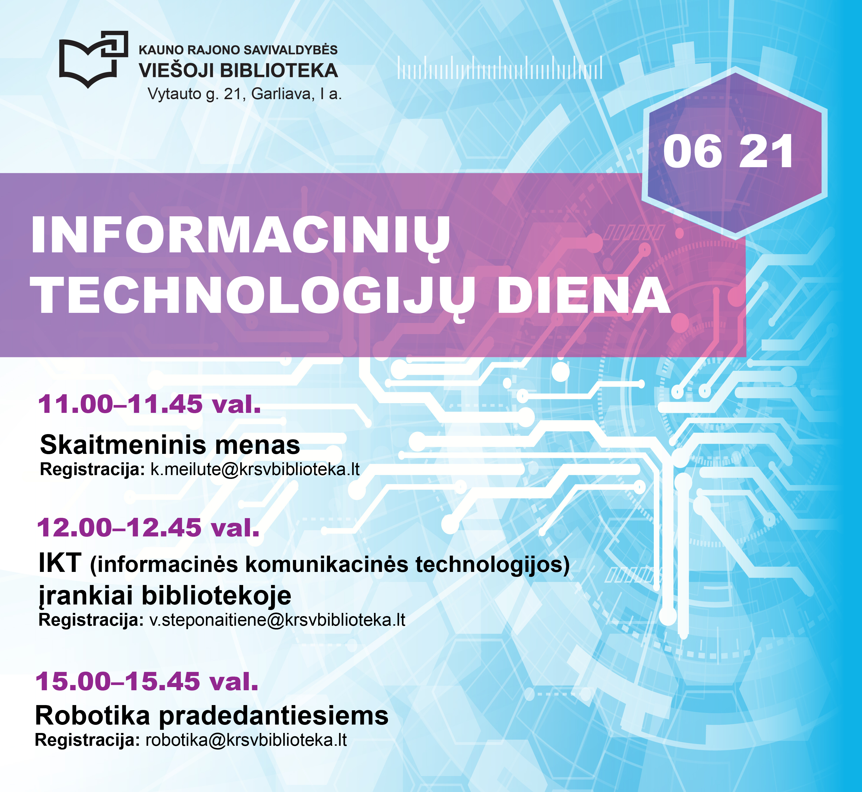Birželio 21 d., penktadienį, kviečiame moksleivius į IT dieną bibliotekoje.