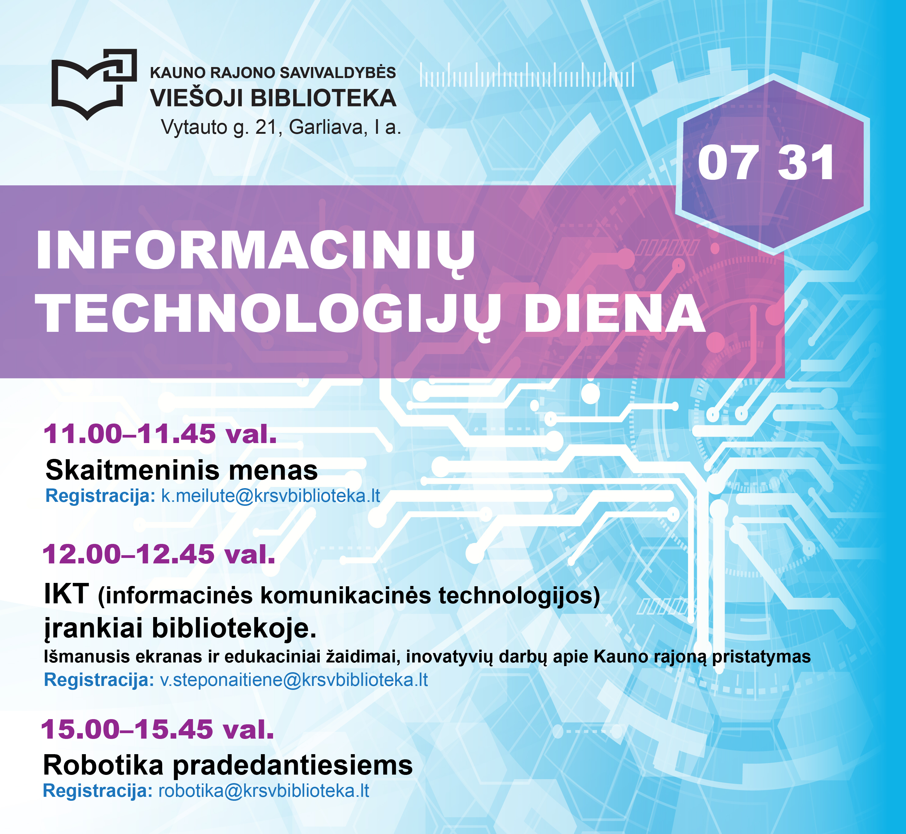 Liepos 31 d., trečiadienį, kviečiame moksleivius į IT dieną bibliotekoje.