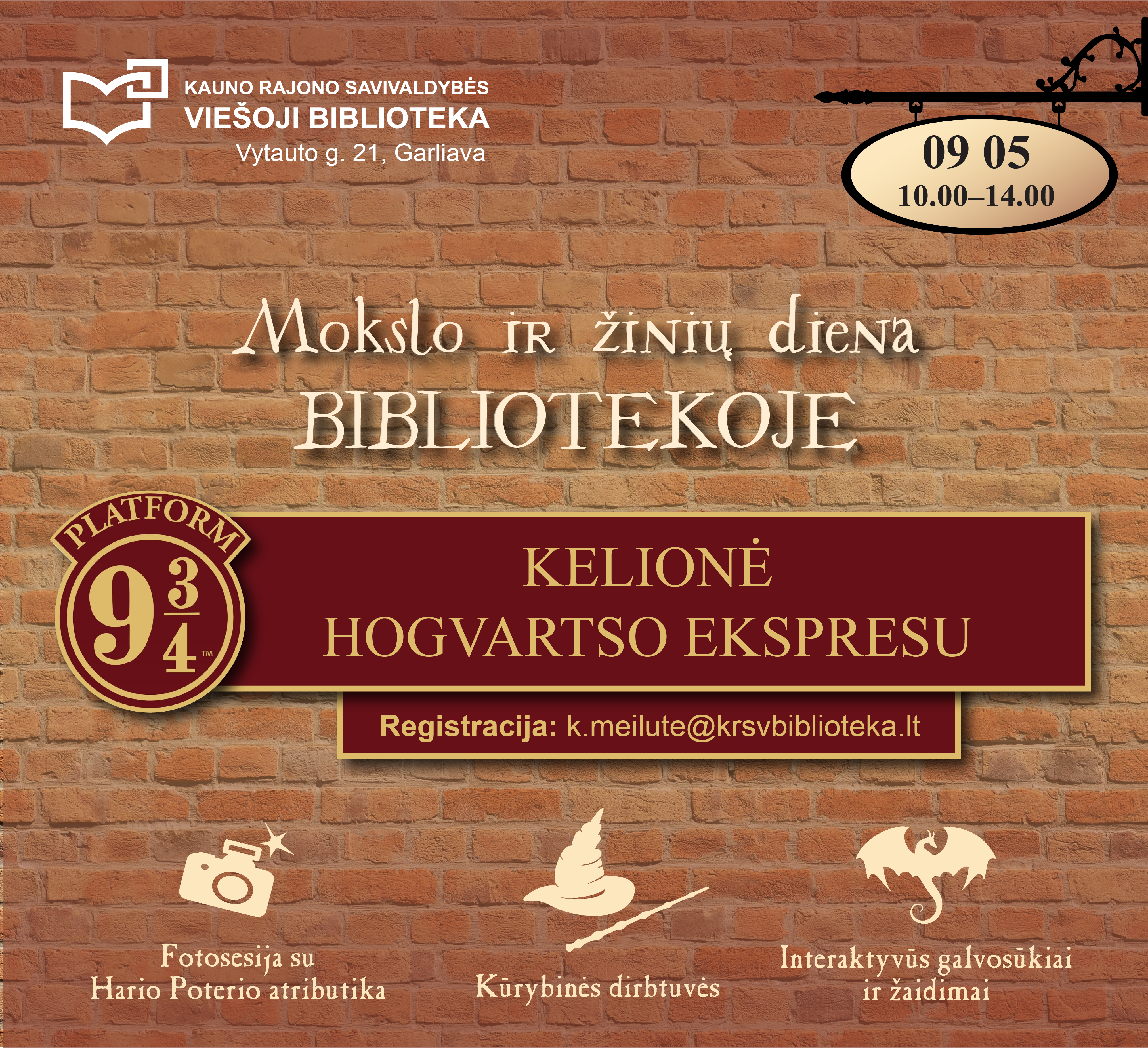 Rugsėjo 5-ąją 10.00–14.00 val. keliausime Hogvartso ekspresu į mokslo ir žinių šalį patirti neįtikėtinų nuotykių! Prisijunkite, nes ši kelionė bus nepamirštama.