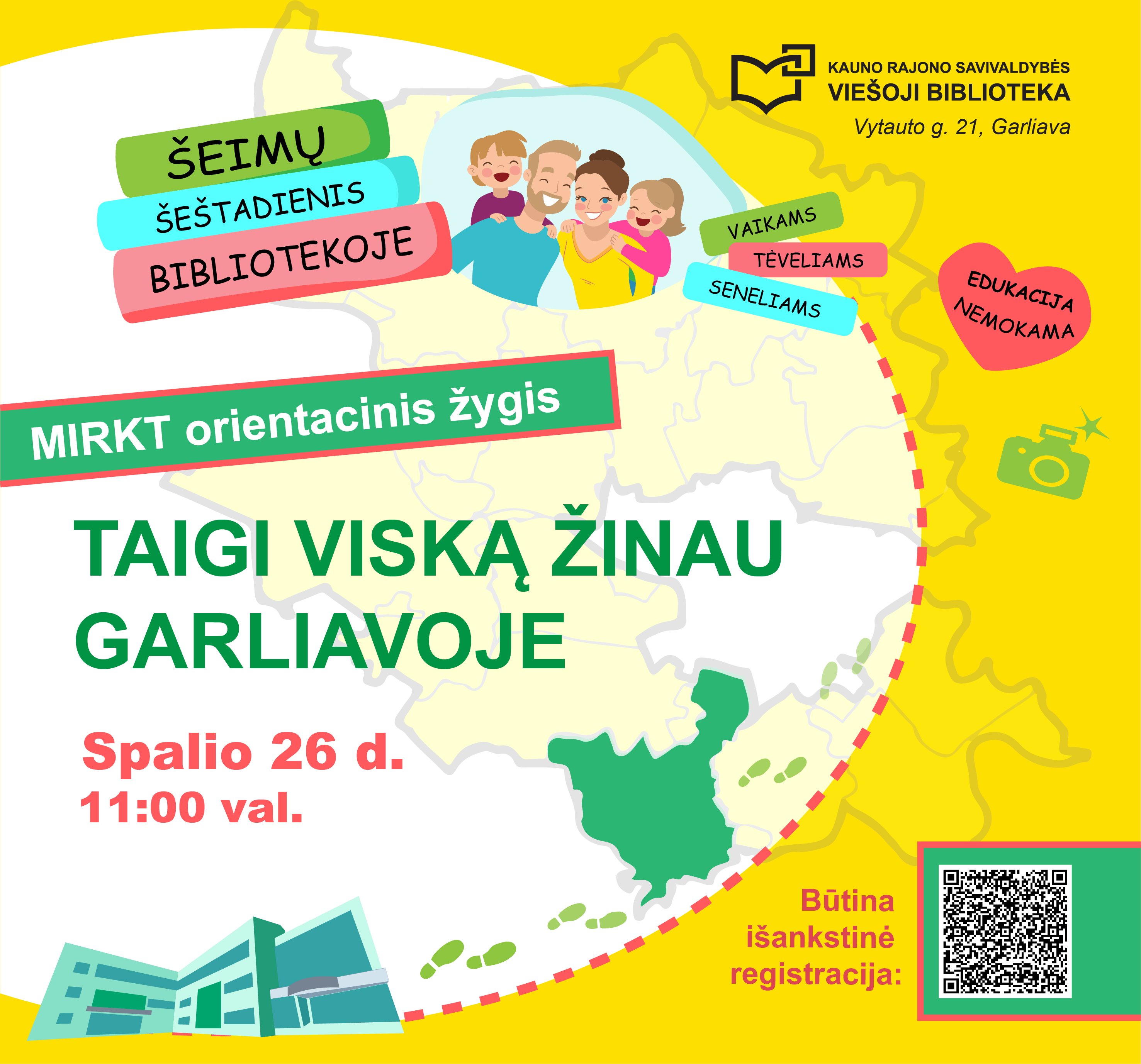 Šeimų šeštadienis bibliotekoje: orientacinis MIRKT žygis „Taigi viską žinau Garliavoje“