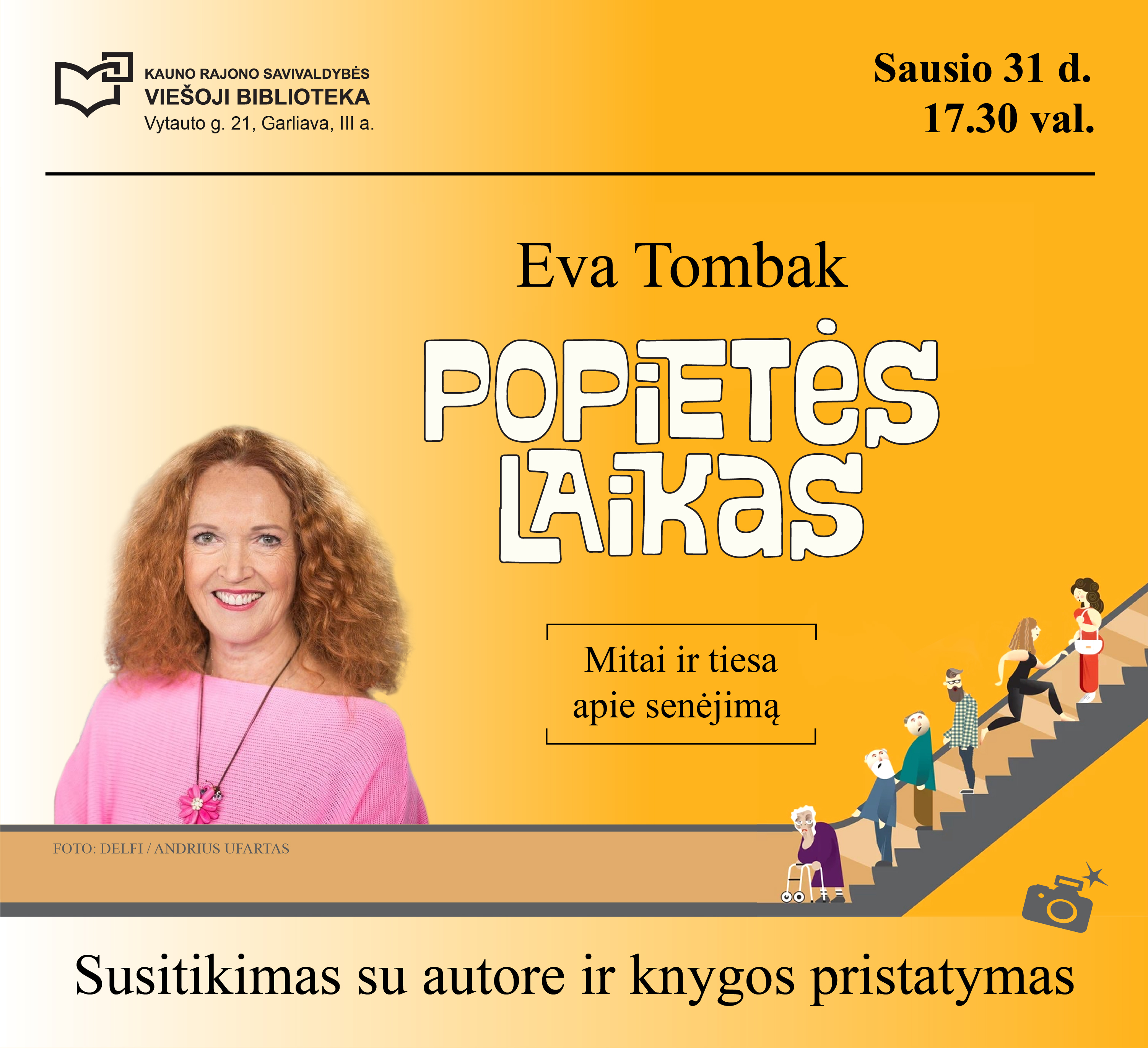▬ Ateikite į biblioteką padiskutuoti su Eva Tombak – rašytoja, jogos praktike, buvusia legendinių žurnalų „Ieva“ ir „Cosmopolitan“ leidėja.