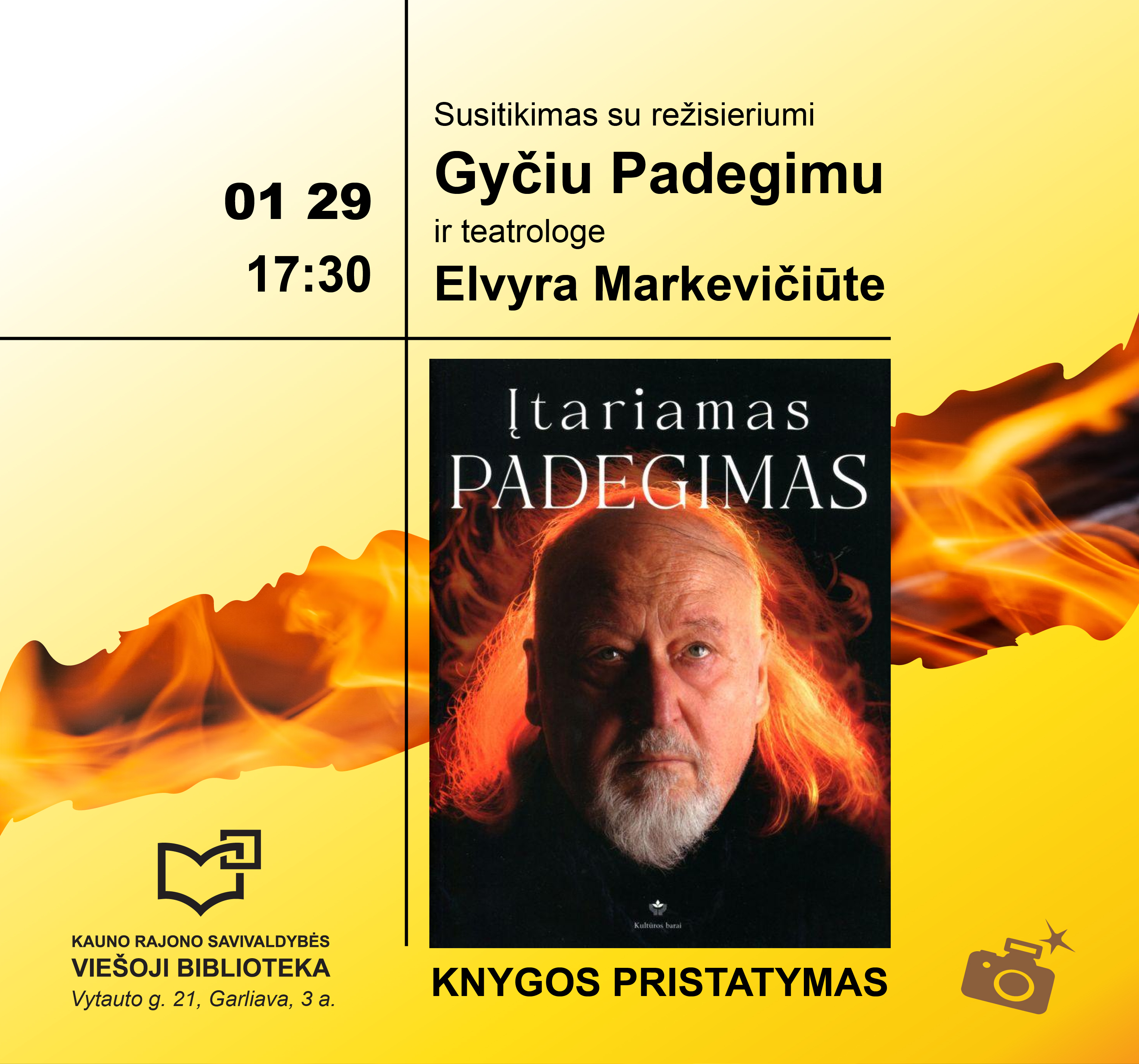 ▬ Kviečiame bibliotekoje susitikti su režisieriumi Gyčiu Padegimu, teatrologe Elvyra Markevičiūte ir Nacionalinio Kauno dramos teatro aktoriumi Henriku Savickiu. Kalbėsimės apie teatro pasaulio avansceną ir užkulisius, apie 2024 metais išleistą knygą „Įtariamas Padegimas“, kurioje pateikiama režisieriaus Gyčio Padegimo įvairiakryptės veiklos mozaika, atskleidžiamas kūrėjo originalumas ir unikalumas. Aktorius Henrikas Savickis dalysis patirtimis ir mintimis: ką aktoriui reiškia vaidinti Gyčio Padegimo spektaklyje? „Įtariamas Padegimas“ – tai unikalus žvilgsnis į teatro legendą!
