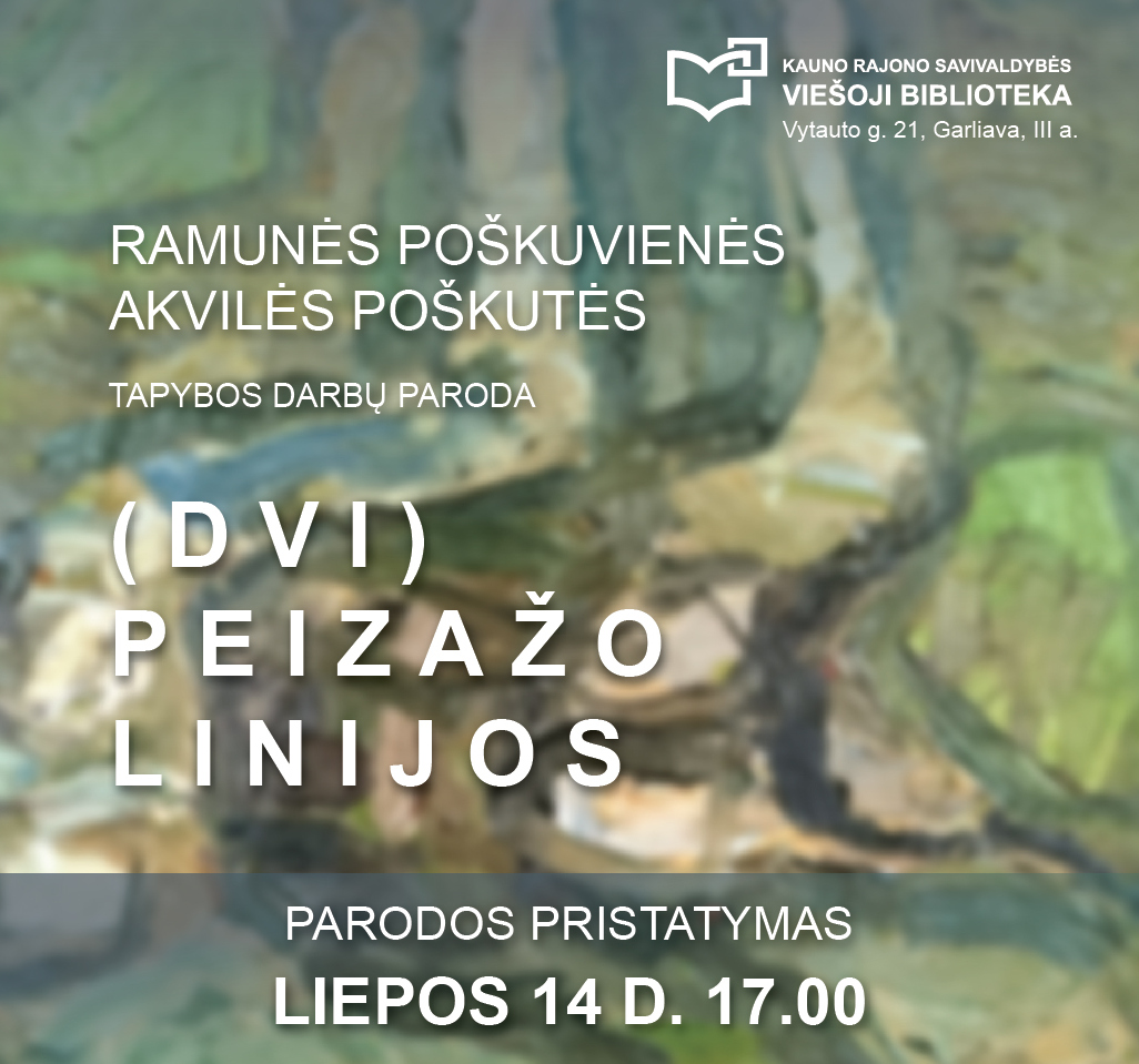 Liepos 11– rugsėjo 1 d. Kauno rajono savivaldybės viešojoje bibliotekoje, III aukšte, eksponuojama Ramunės Poškuvienės ir Akvilės Poškutės tapybos darbų paroda „(Dvi) peizažo linijos“.