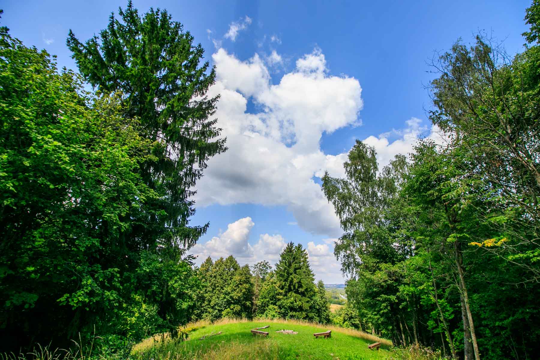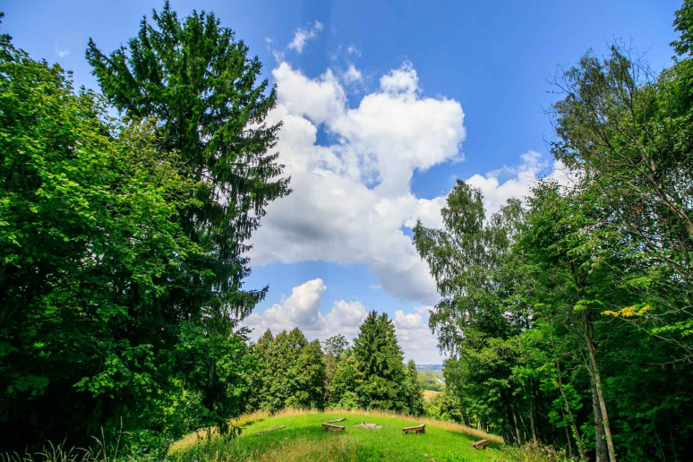 Šlaitai apaugę mišriu mišku, aikštelė dirvonuoja.