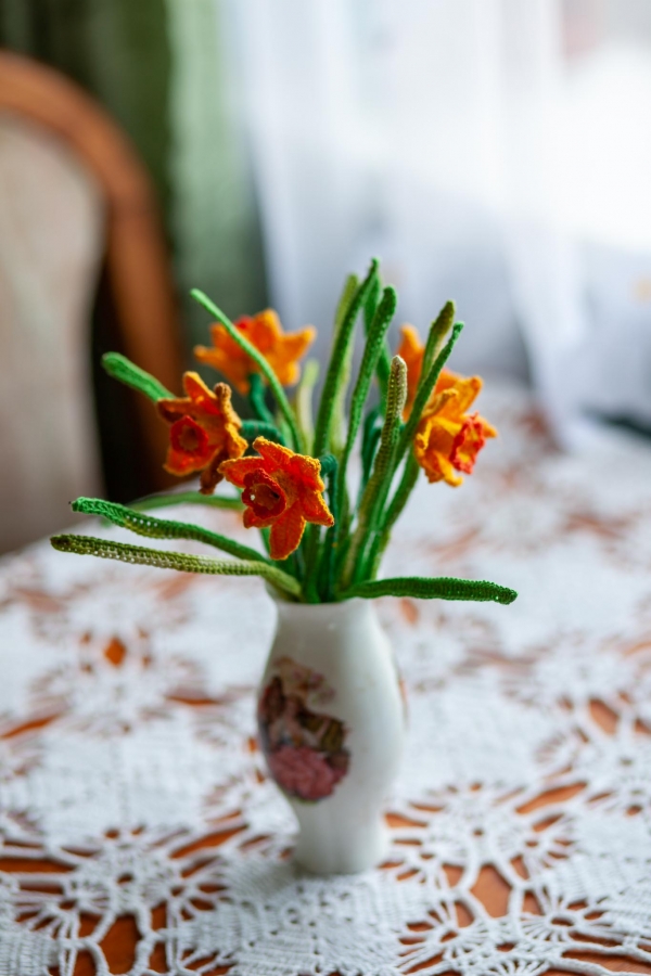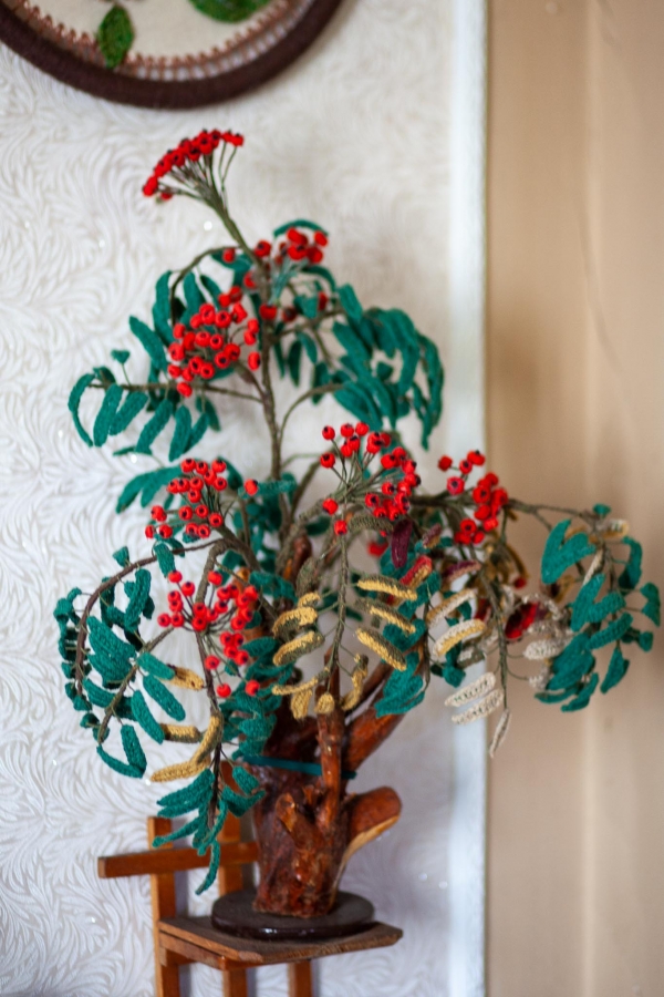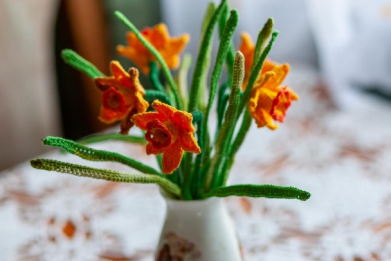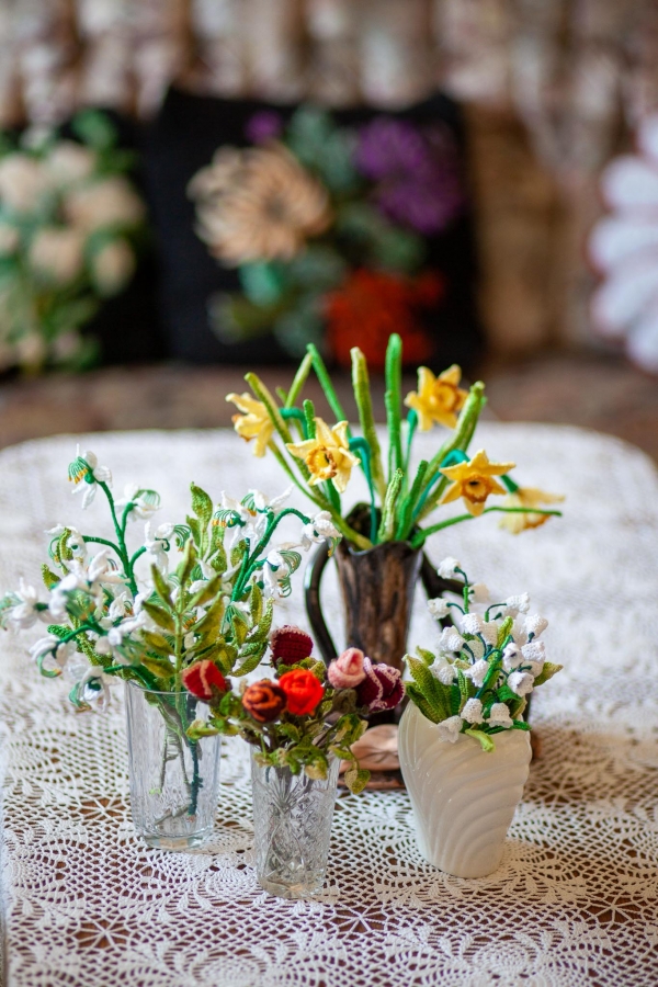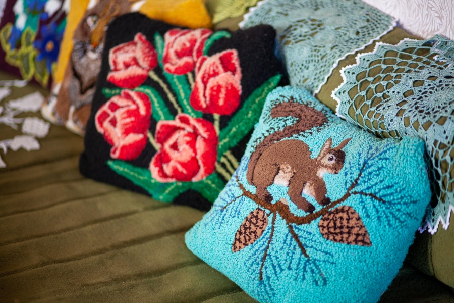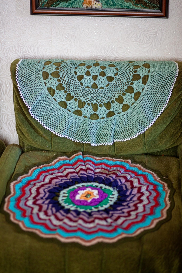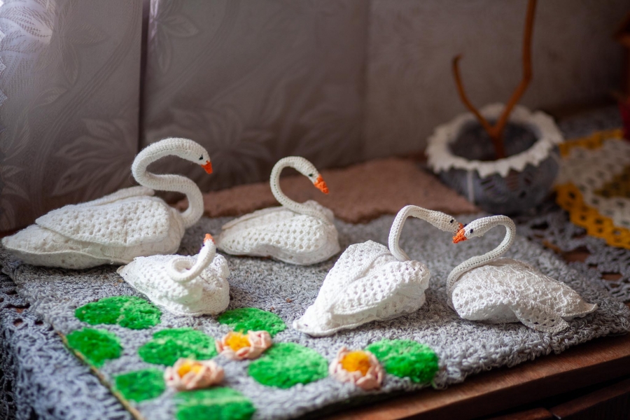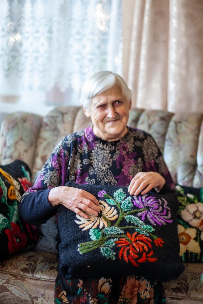 Aldona Bužinskienė – kūrybinga ir darbštiliaudies meno kūrėja iš Neveronių, kurios talentas atsiskleidžia per mezgimą. Jos namai virto tikra rankdarbių oaze – čia viskas apmegzta: nuo pagalvėlių iki papuošimų. Aldona mezga gėles, paukščius, dekoratyvinius elementus, kuriuos įkomponuoja į buities daiktus ir interjero detales. Jos kūriniai žavi šiluma, spalvų deriniais ir fantazijos gausa.