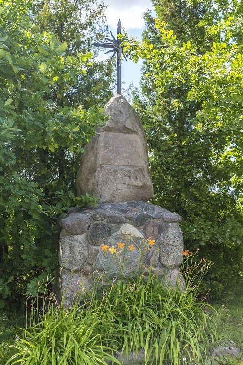 Šiame paminkle iškaltas Maironio eilėraštis: „Apsaugok, Aukščiausias, tą mylimą šalį, kur mūsų sodybos, kur bočių kapai.“