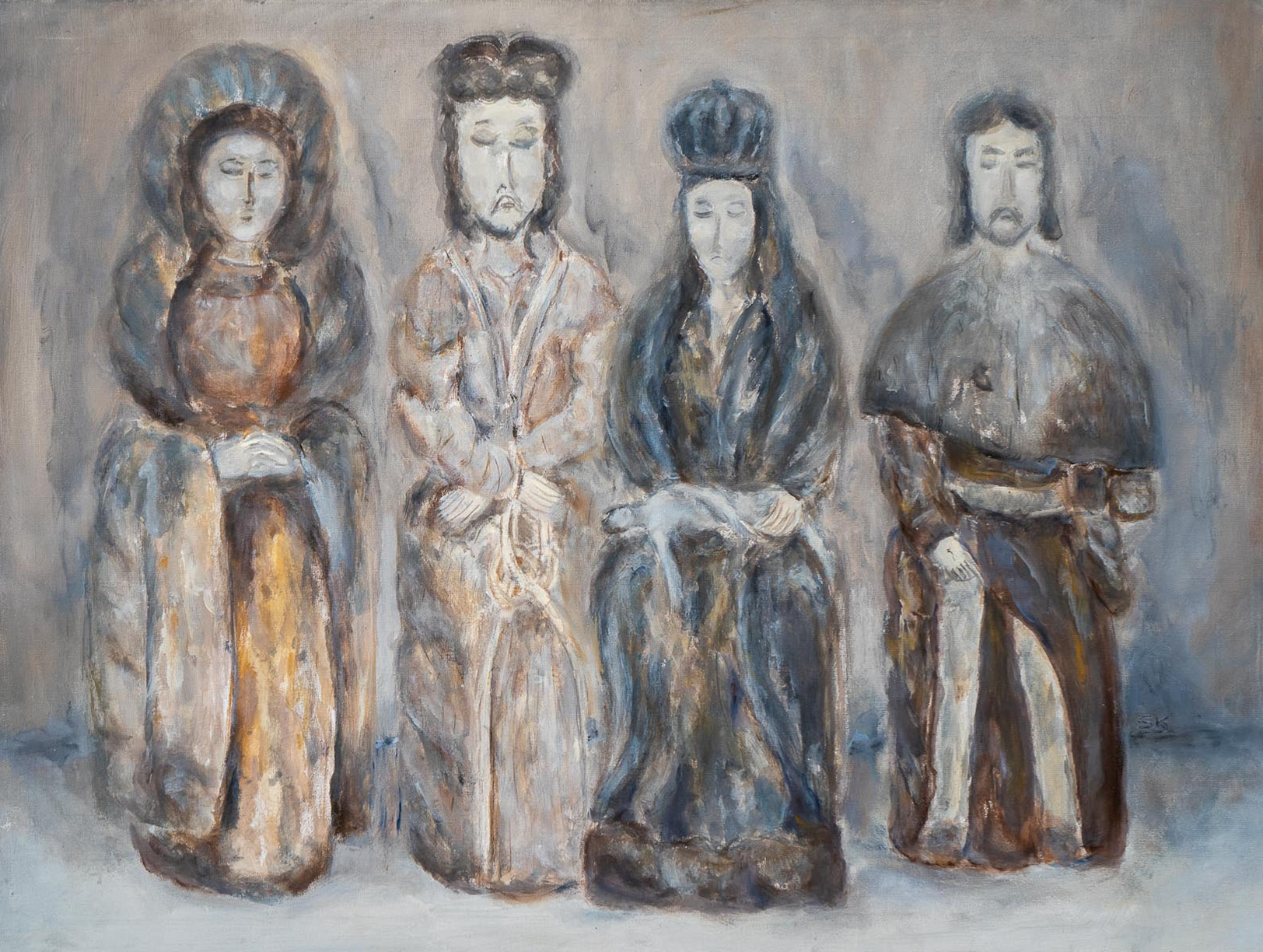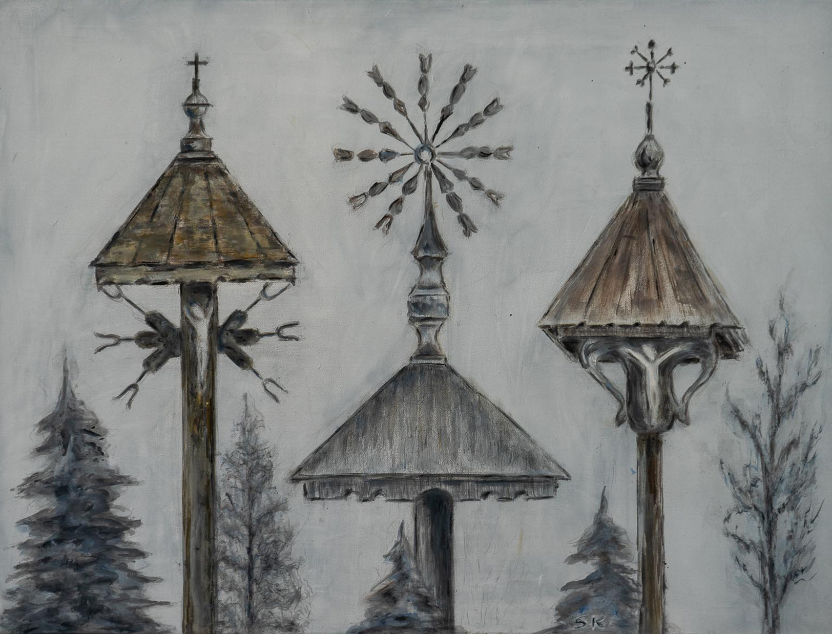 „Tapyti galbūt paskatino tėvelio kalvio išraitytos tulpės varteliuose, mamos siuvinėtos staltiesės, liūdnas gervių klyksmas kiekvieną rudenį tėviškėje, kiekvienąkart kitaip į palių horizontą ilgesingai besileidžianti saulė“.