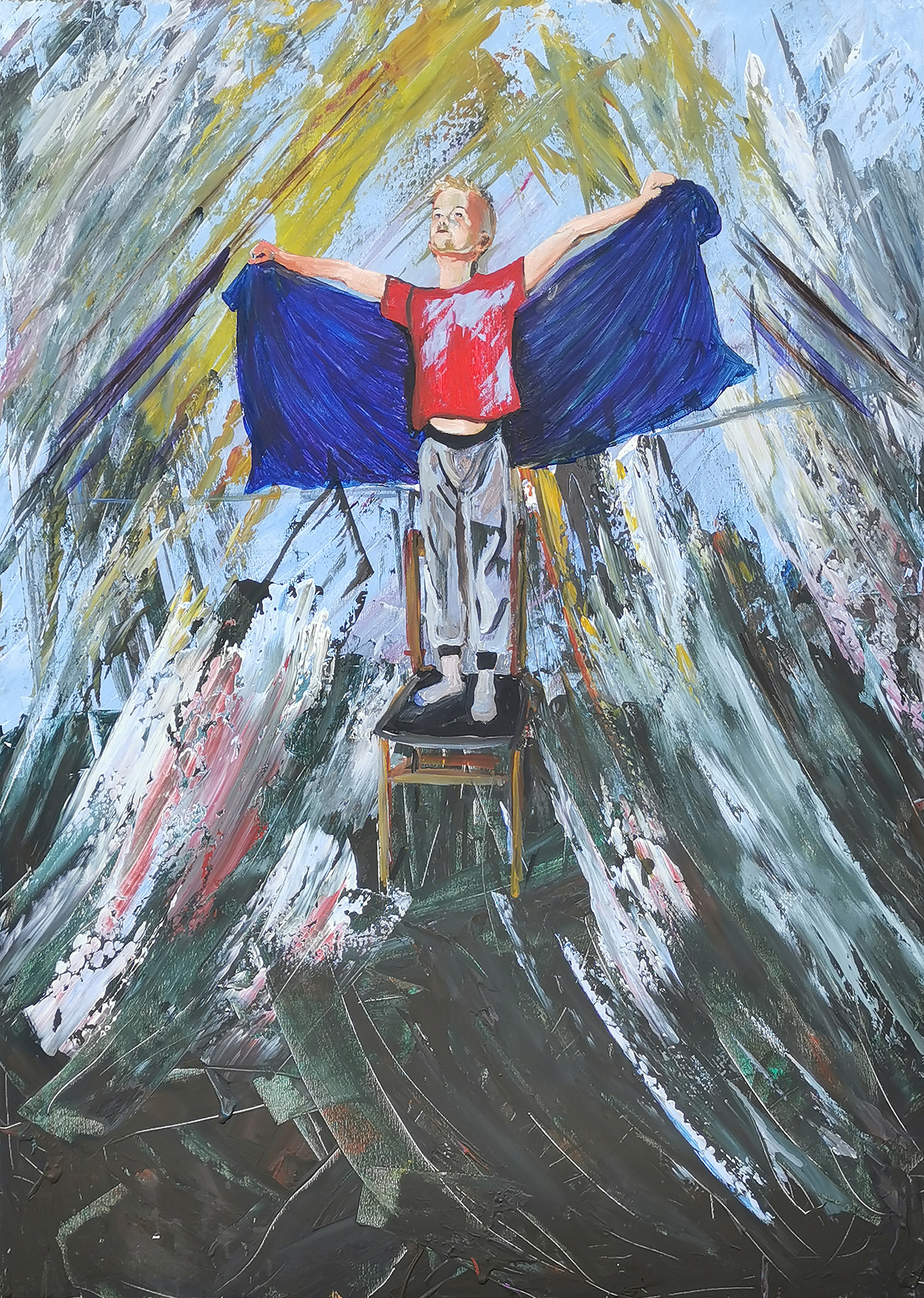 „Vaikystėje įsivaizduodavau visokias istorijas, kurios leisdavo nukeliauti į perskaitytas knygas, matytus filmus ar į savo išgalvotą pasaulį, kuriame galėdavai turėti ar įminti paslaptį. Augant tos paslaptys po truputį nyko, buitis, įsipareigojimai, suvalgydavo energiją ir laiką, leidžiantį grįžti į tą vaikystės būseną. Pradėjęs tapyti vis dažniau leidžiu sau grįžti į vaikystę, pasijusti kūrėju, kuriančiu istoriją ir ieškančiu paslapties. Į jos paieškas galiu pakviesti ir žiūrovą, kuris per savo matymo lauką, spalvų priėmimą gali taip pat ieškoti savo paslapties“.