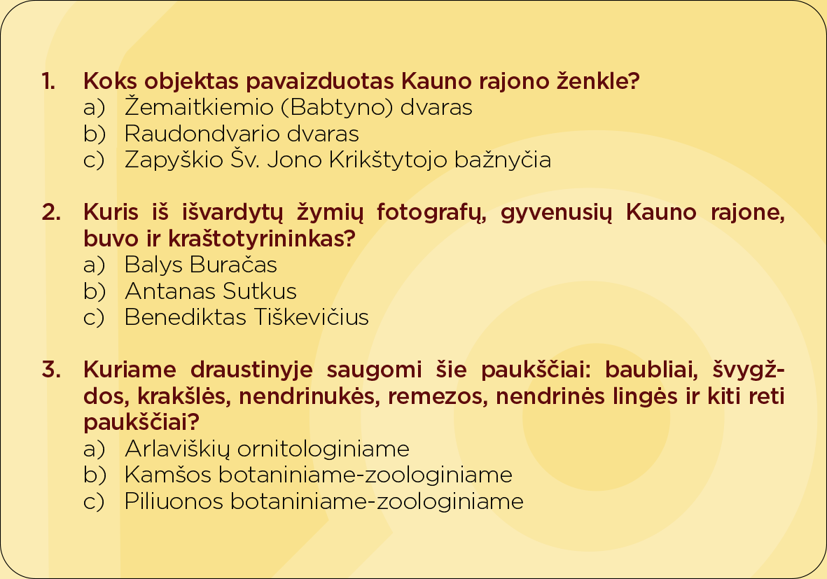 1. Koks objektas pavaizduotas Kauno rajono ženkle?