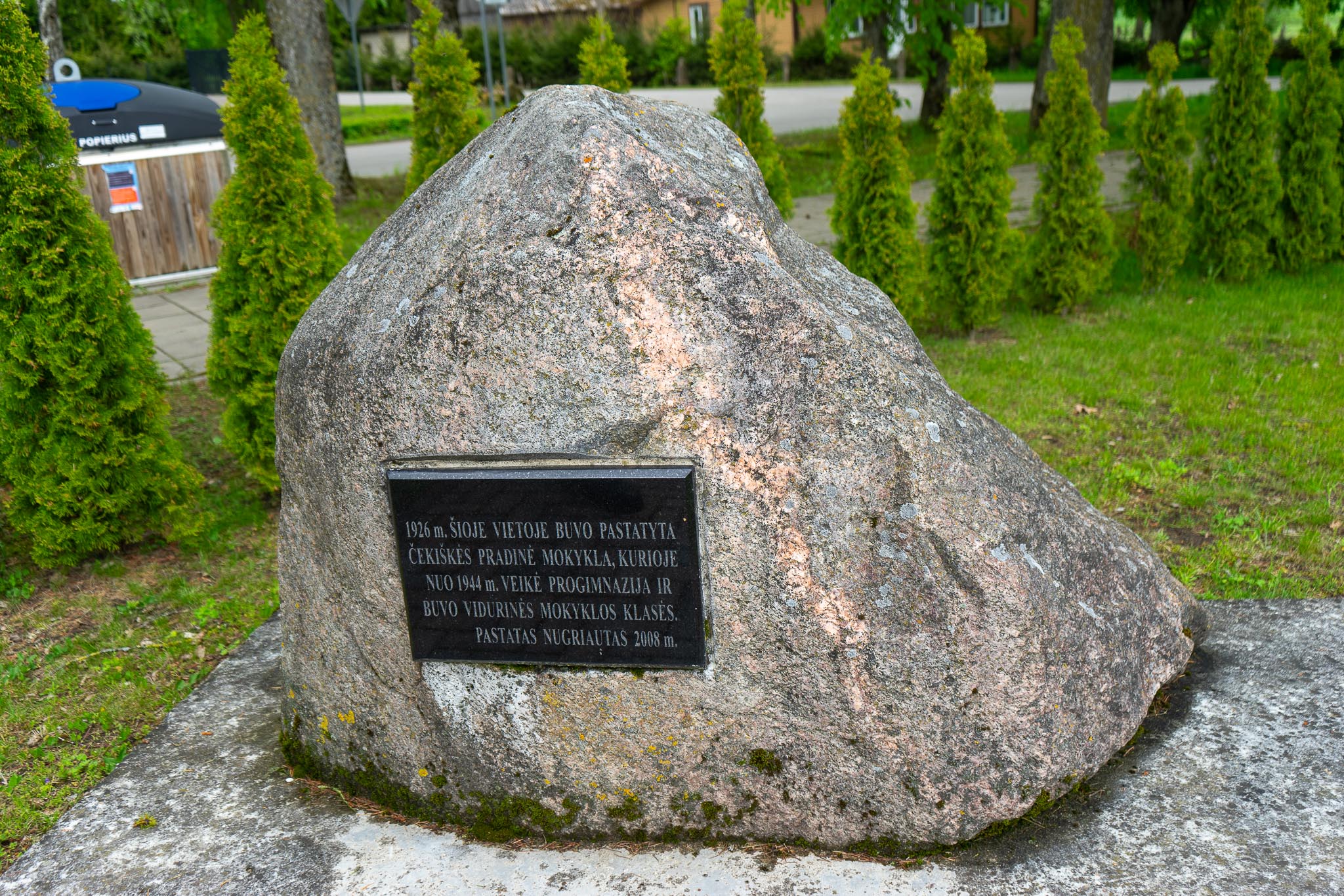 Buvusios mokyklos vietoje 2010 m., kraštotyrininko A. Vaičiaus iniciatyva ir seniūnijos fnasavimu, minint miestelio 410 metų jubiliejų, atidengtas paminklas.