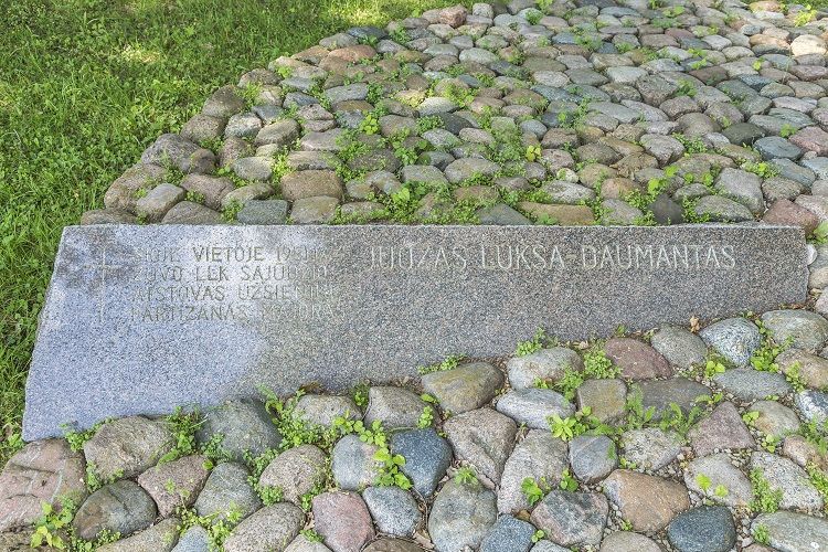 Iki 1999 m. žūties vieta buvo pažymėta kukliu baltu metaliniu kryžiumi ir paminkline akmenine plokšte su įrašu: „JUOZAS LUKŠA DAUMANTAS, ŽUVĘS 1951-LX-4“.