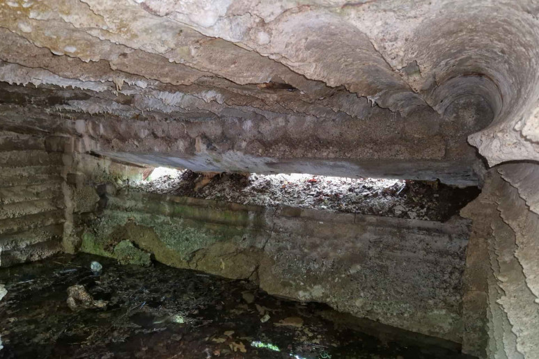 Konstrukcijas sudaro gelžbetonio sienos ir denginys, kurių paviršiuose matomi klojinio įspaudai. Objekto būklė – patenkinama.