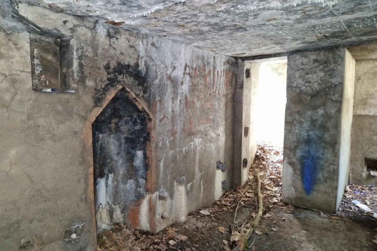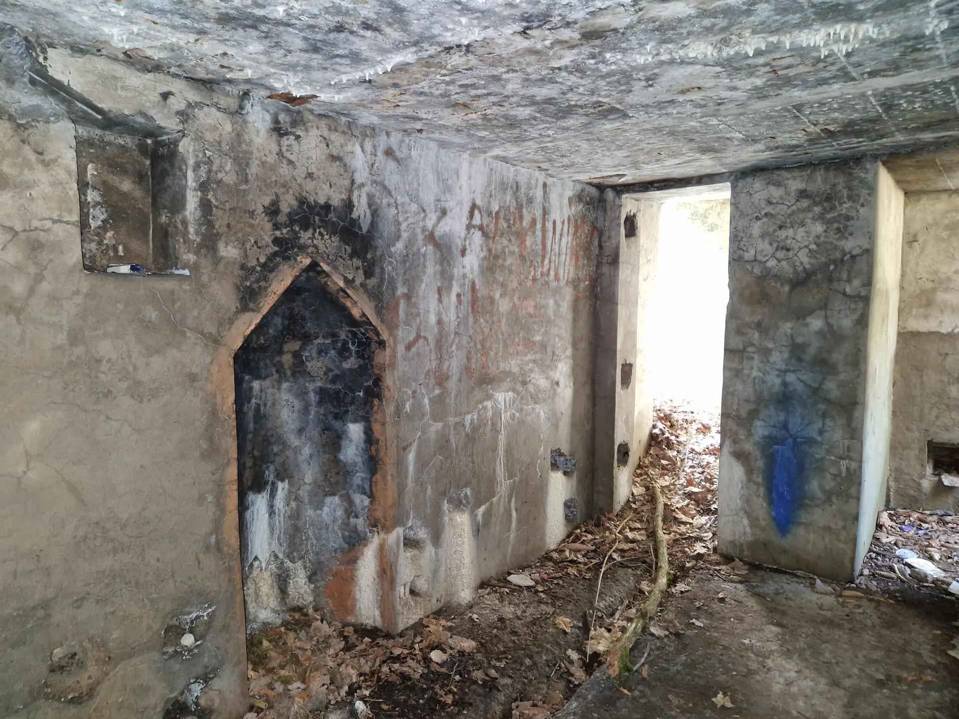 Vidaus išplanavimą sudaro viena patalpa su dviem prieangiais. Sienose įrengtos stačiakampės durų angos bei segmento formos anga, vedanti į sekyklą. Taip pat yra stačiakampės vidaus nišos, niša su atšaka į vėdinimo kanalą ir smailėjanti krosnies niša. Fasaduose išsiskiria pietvakarių fasado gelžbetonio sienutė.