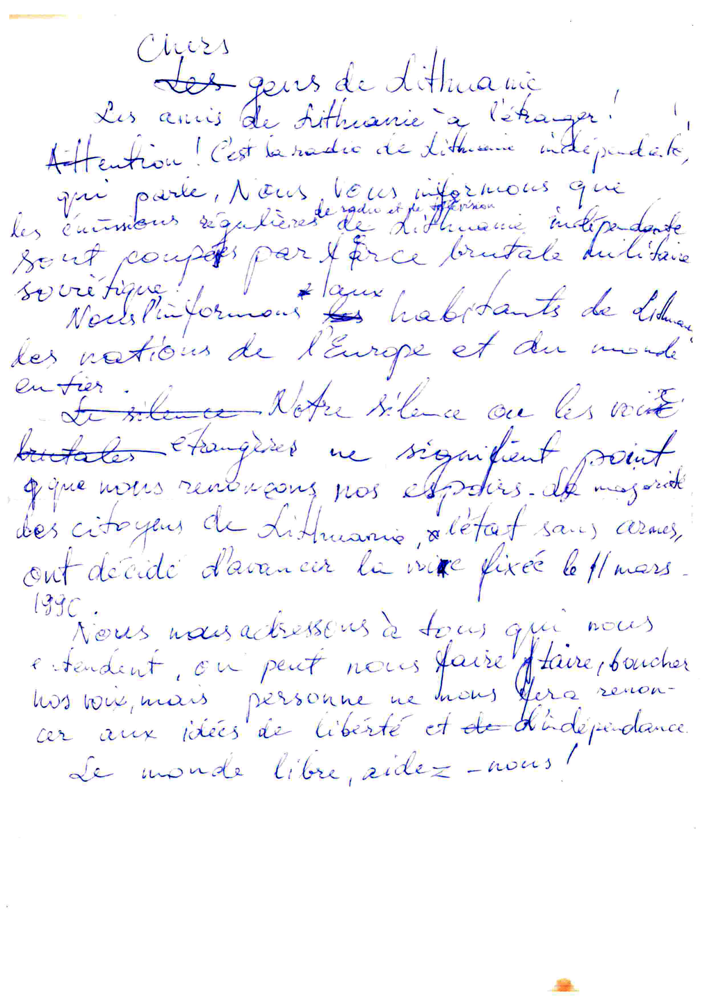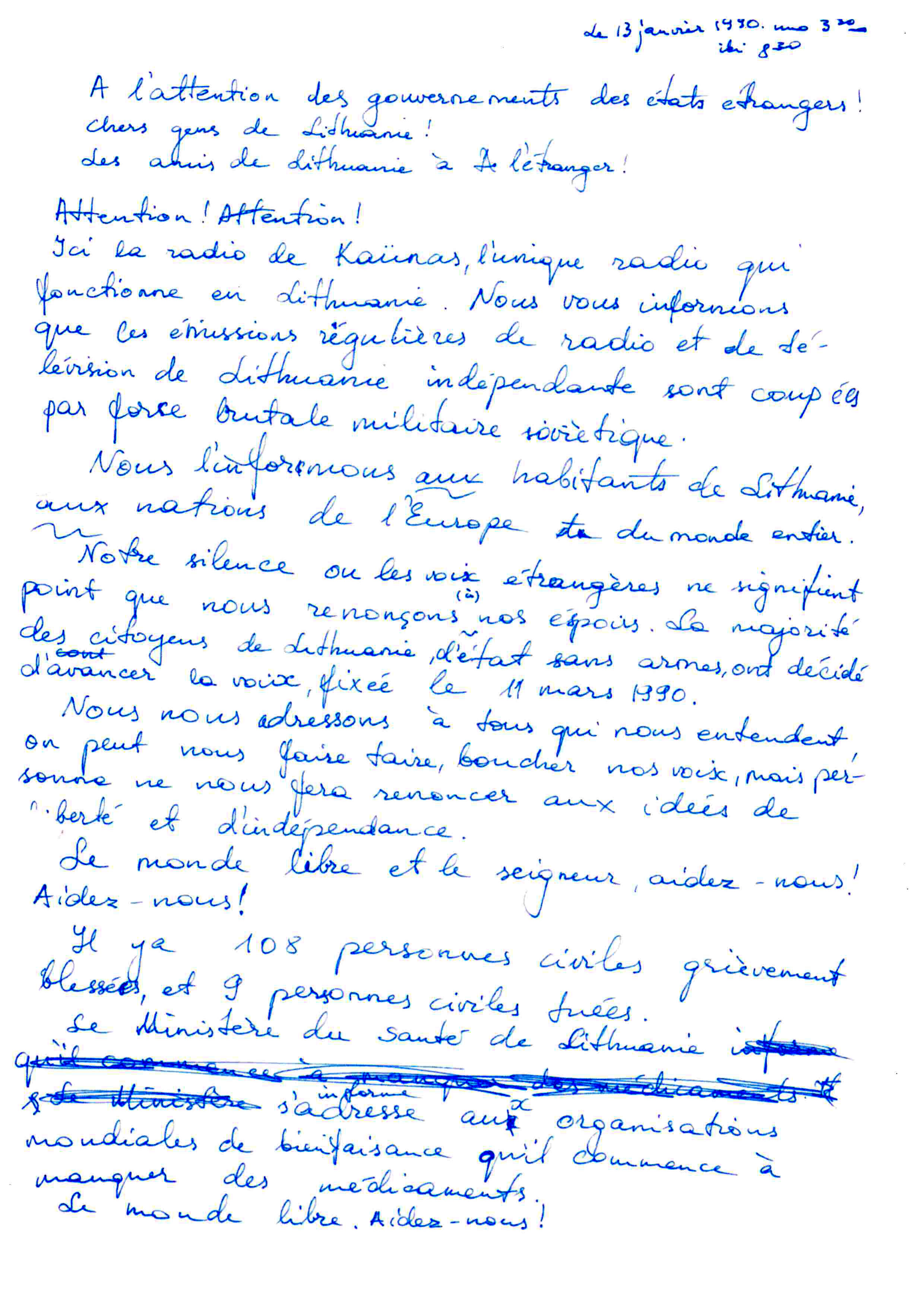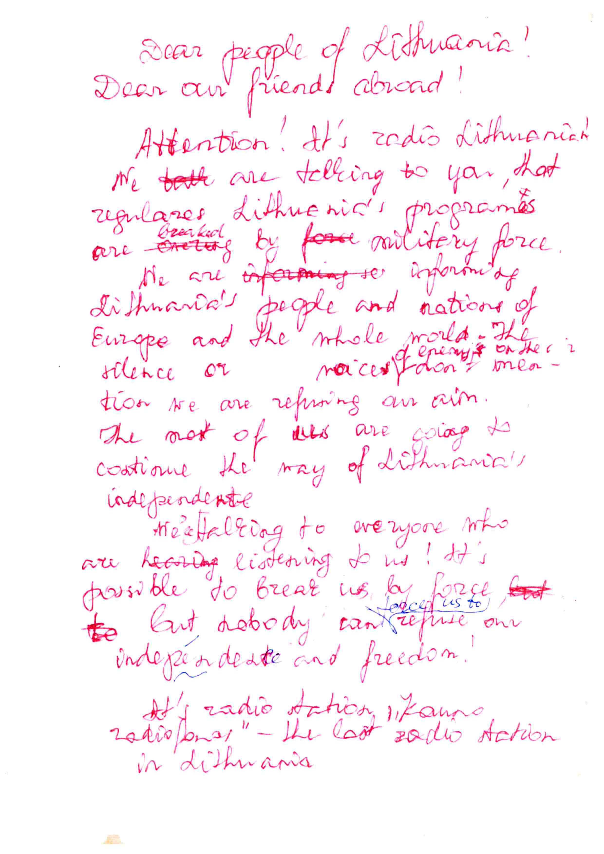 Tikslios transliacijos datos – ar Sausio 13-ąją, ar per Maskvos karinį pučą 1991 m. rugpjūčio mėnesį, – nežinomos.