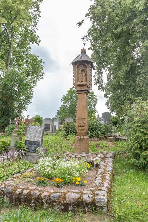 1989 m. ant kapo pastatytas stogastulpis su prasmingais žodžiais: