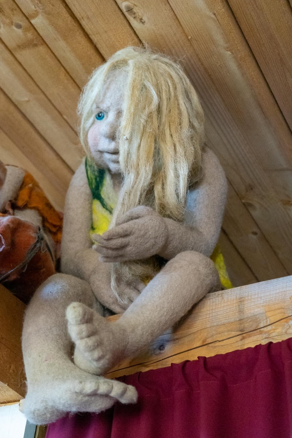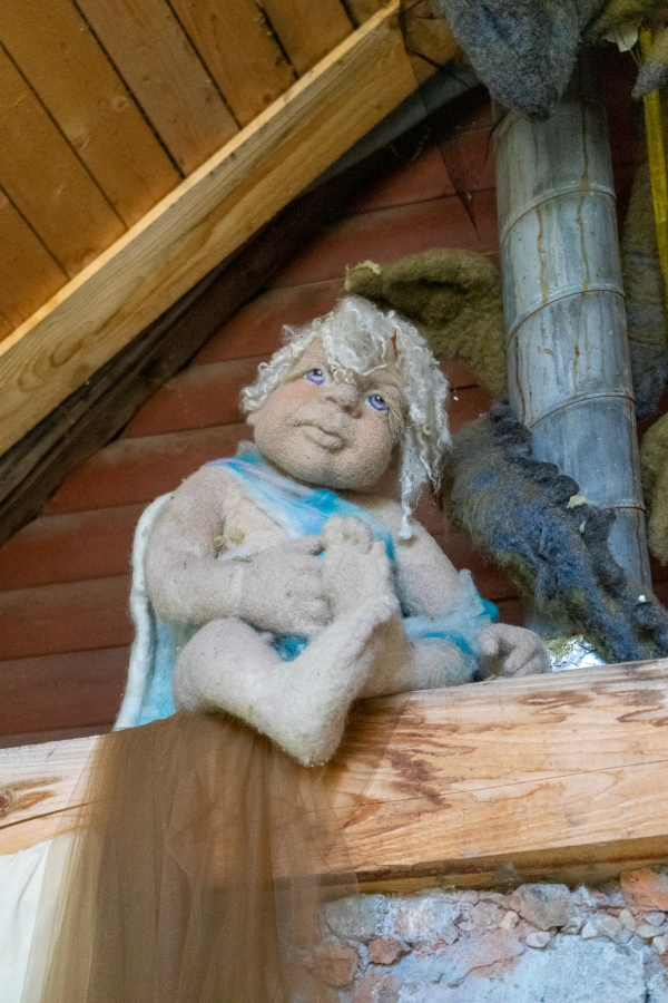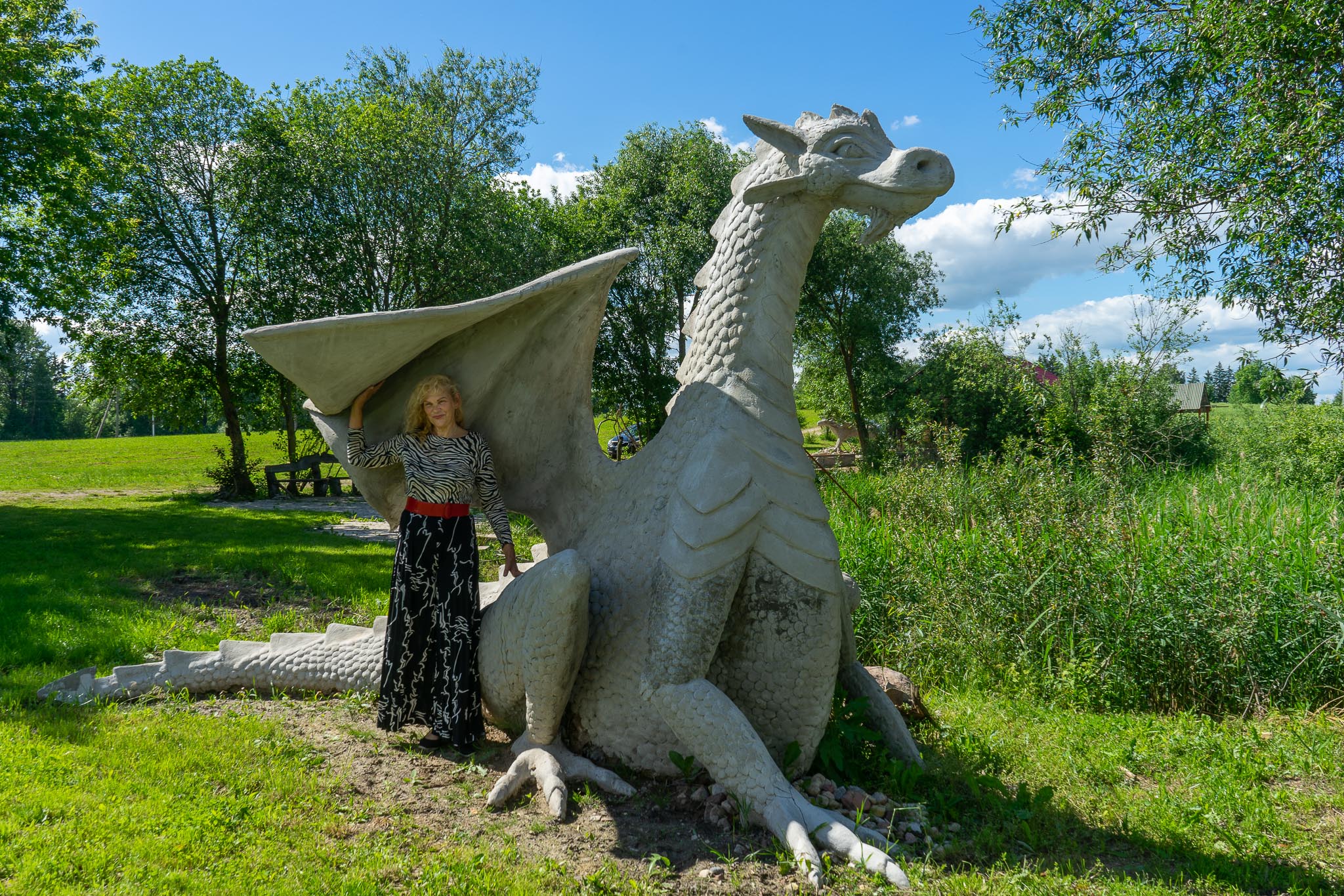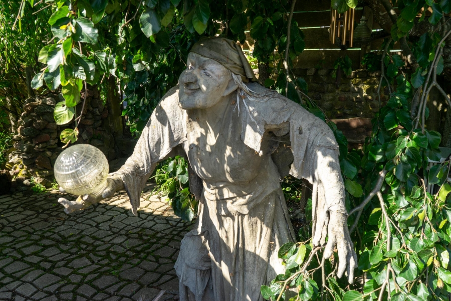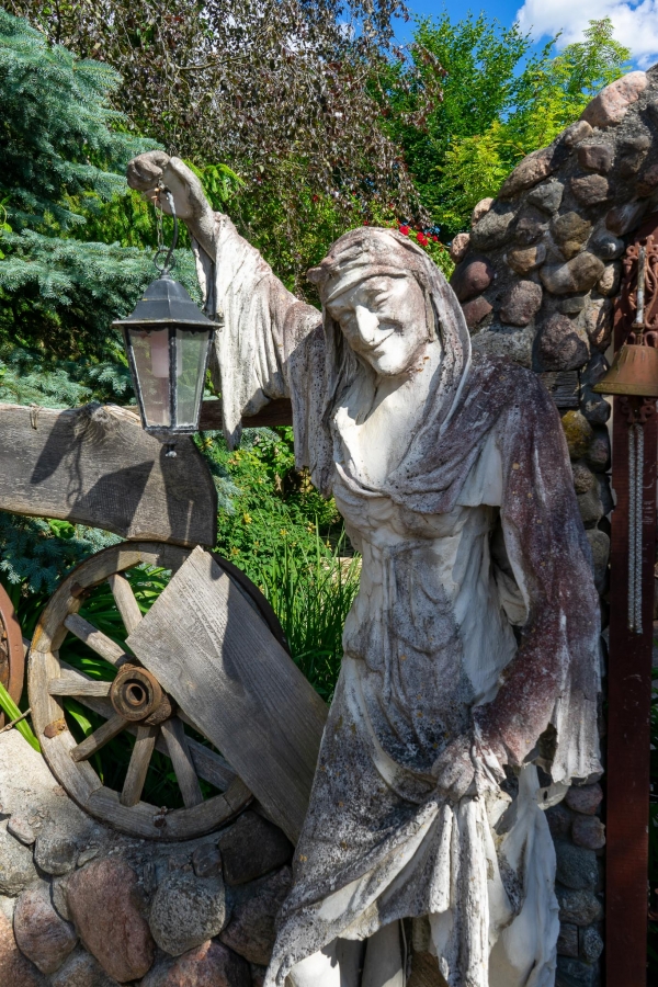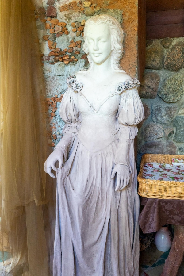 Savo sukurtoms skulptūroms velia drabužius, suteikdama joms savitą charakterį ir išraišką. Kūryba gimsta iš vaizduotės, rankų darbo ir meilės liaudiškai mitologijai. Sodyba tapusi traukos vieta lankytojams, norintiems patirti stebuklingą pasakų pasaulį realybėje.