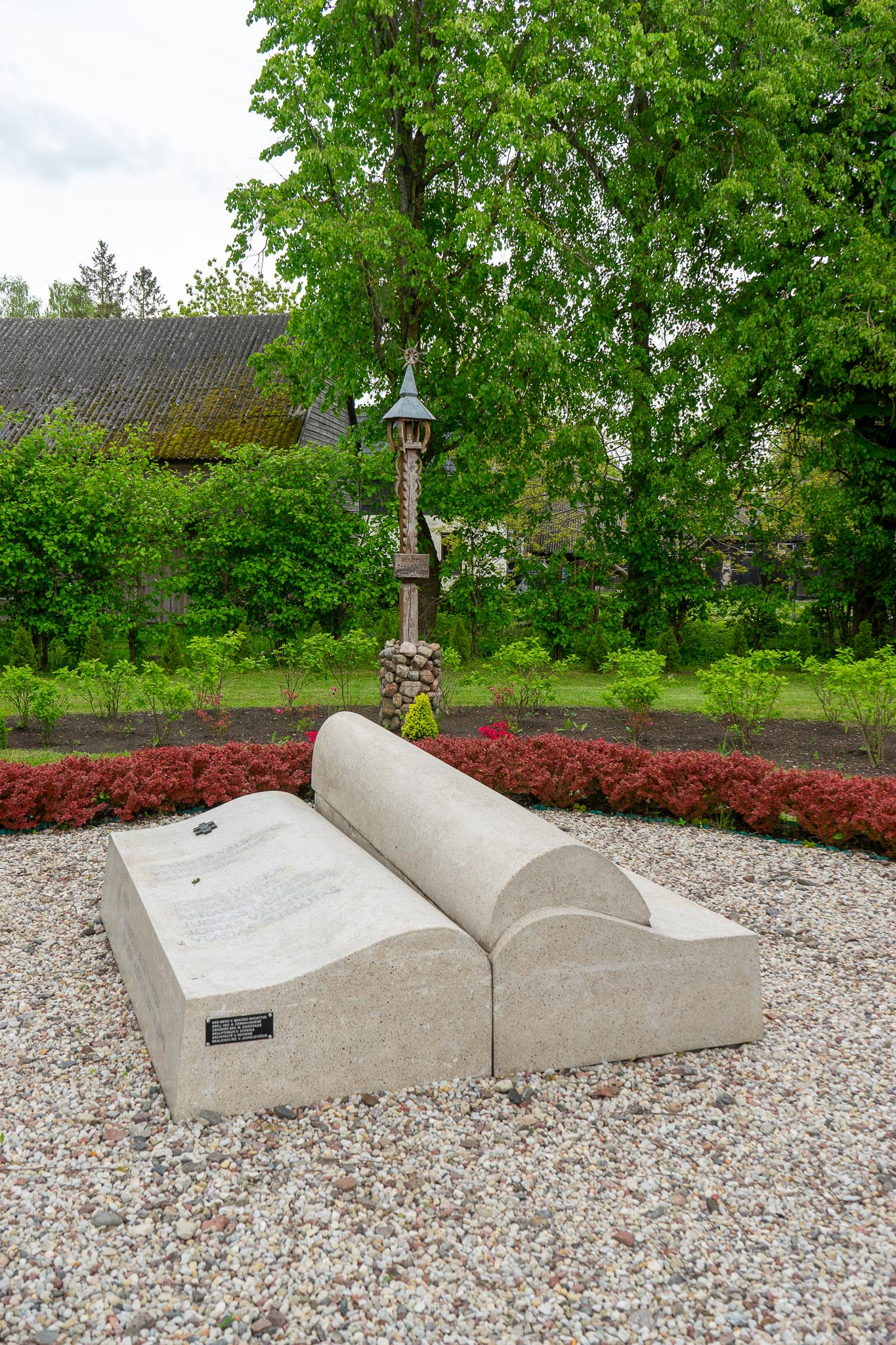 Paminklo idėjos autoriai – architektė Violeta Beigienė ir skulptorius Danielius Sodeika. Jie sukūrė netradicinės formos paminklą, primenantį pusiau atverstą istorijos knygą, simbolizuojančią istorinę atmintį ir Lietuvos kovų už nepriklausomybę laikus. Suolelio forma suteikia galimybę prisėsti ir mintimis sugrįžti į šiuos istorinius laikus. Paminklą supa žemi raudonlapiai krūmai, taip pat turintys simbolinę prasmę.