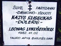 Kryžius su atminimo lenta, pastatytas 1995 m. Jis skirtas šioje vietoje 1952 m. lapkričio 4 d. žuvusiems Tauro apygardos Žalgirio rinktinės partizanams Kazimierui Ruseckui-Doleriui ir Leonui Lukoševičiui-Vytautui.