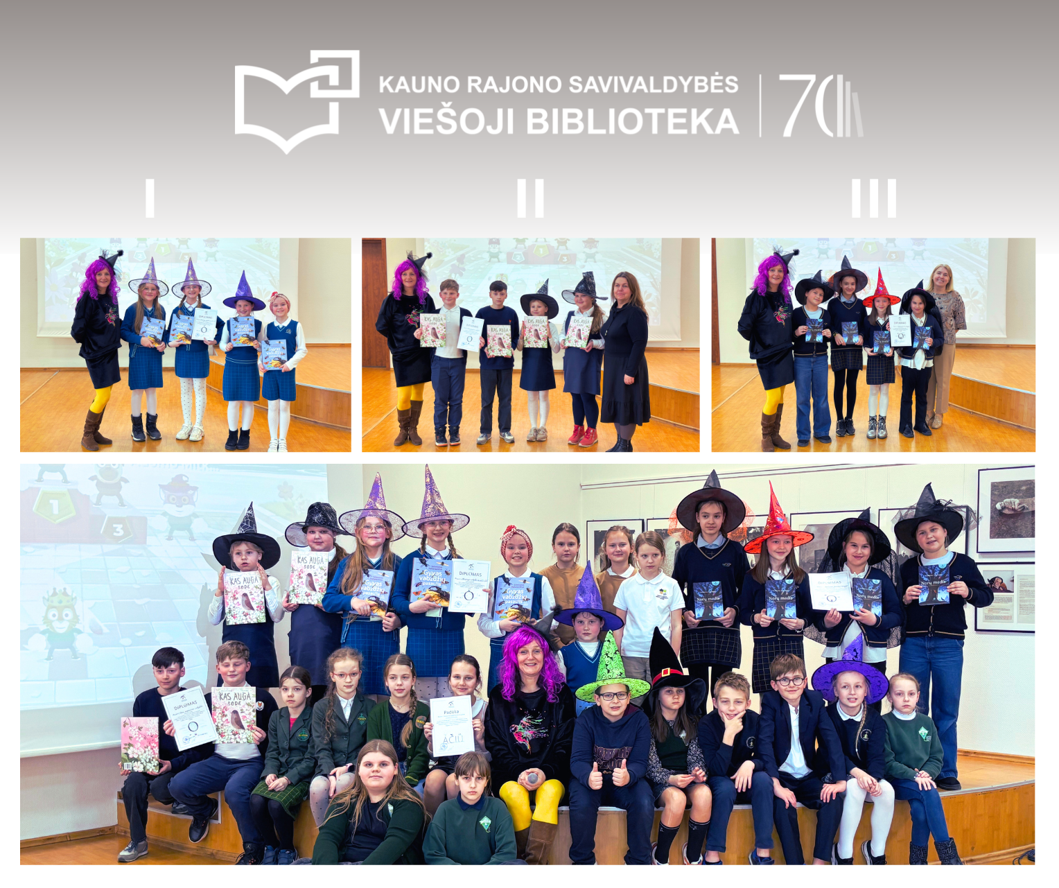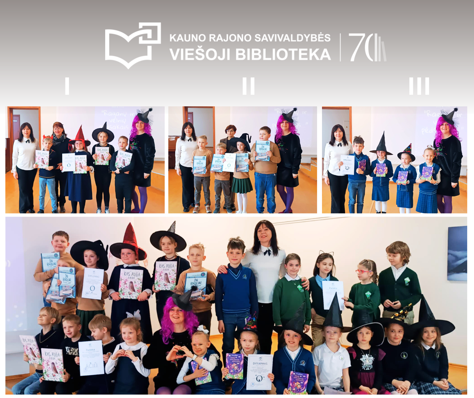 Bibliotekoje įvyko du skaitymo skatinimo konkursai „Raganų ir velnių pėdsakais...“ skirtingų amžiaus grupių moksleiviams. Kauno rajono savivaldybės viešosios bibliotekos direktorė Irena Viktorija Stančiauskienė sveikindama renginio dalyvius pasidžiaugė daug skaitančiais vaikais ir nuoširdžiai padėkojo mokytojoms, kurių bendrystė su bibliotekomis duoda puikių vaisių ugdant jaunosios kartos pomėgį skaityti.