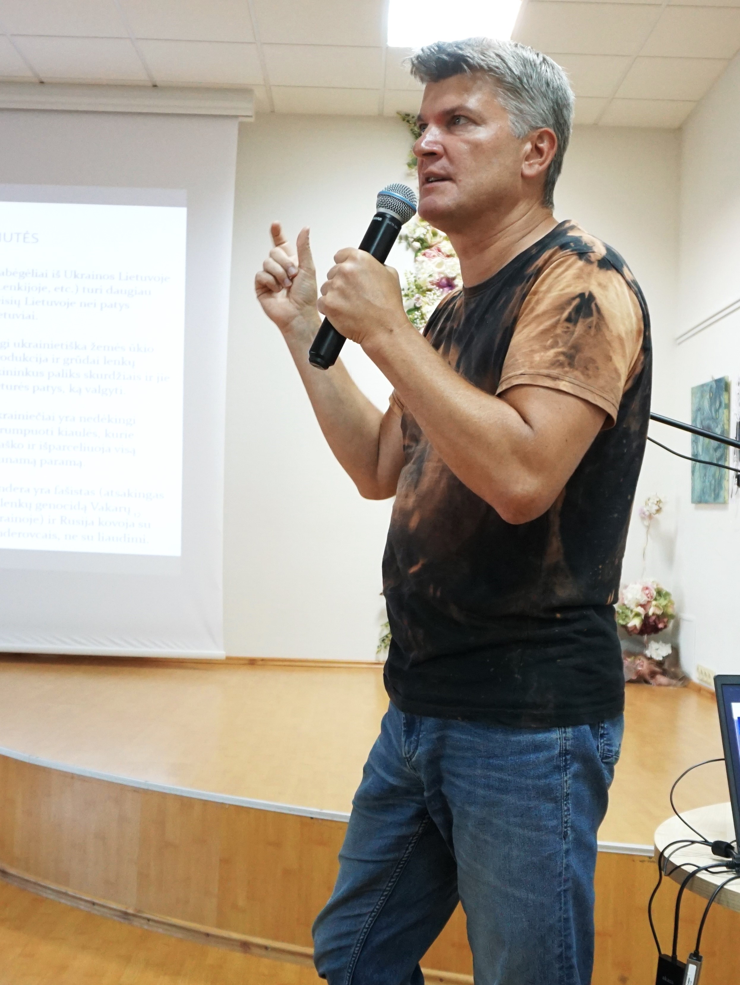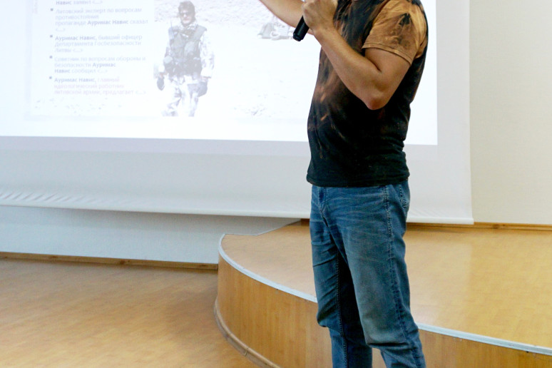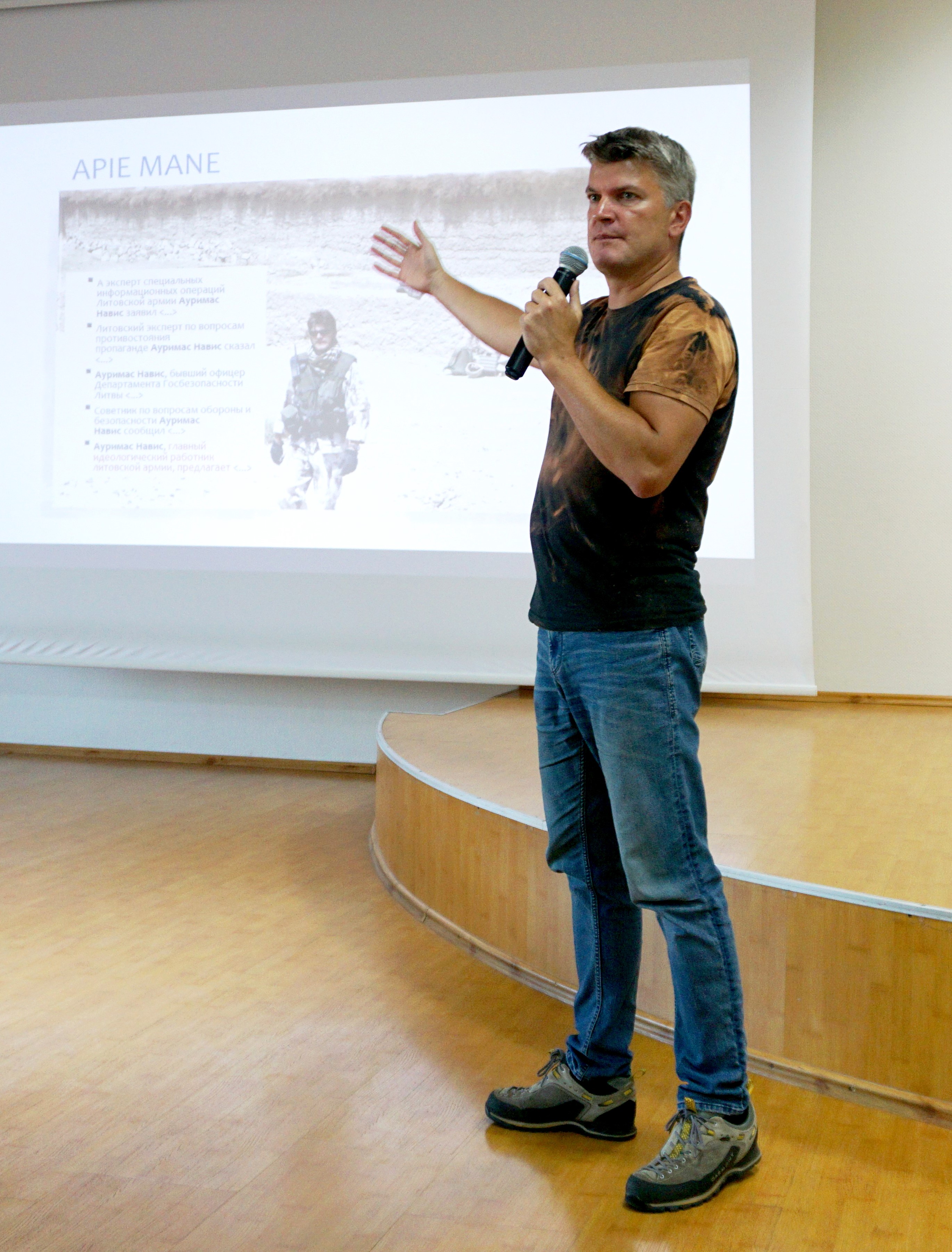 Teorijos neperkrautoje paskaitoje lektorius koncentravosi į praktines užduotis – pasitelkė ne tik šviežius pavyzdžius iš Ukrainos karo konteksto, bet ir sovietinio laikotarpio reminiscencijas. Dalydamasi prisiminimais iš sovietinės propagandos repertuaro auditorija sutartinai juokėsi, nes jų dezinformacinis šleifas buvo daugiau nei akivaizdus kiekvienam diskusijos dalyviui, tačiau nūdienos aktualijų propagandiniai riešutai pasirodė kiek sunkiau išgliaudomi, tad, Aurimui patarus, teko įjungti racionalųjį mąstymo modusą visu pajėgumu ir šį tą naujo atrasti – tiek apie [dez]informaciją, tiek ir apie savo pačių išankstinėmis nuostatomis paremtus abejotino patikimumo orientyrus miglotame propagandinių lozungų žemėlapyje.