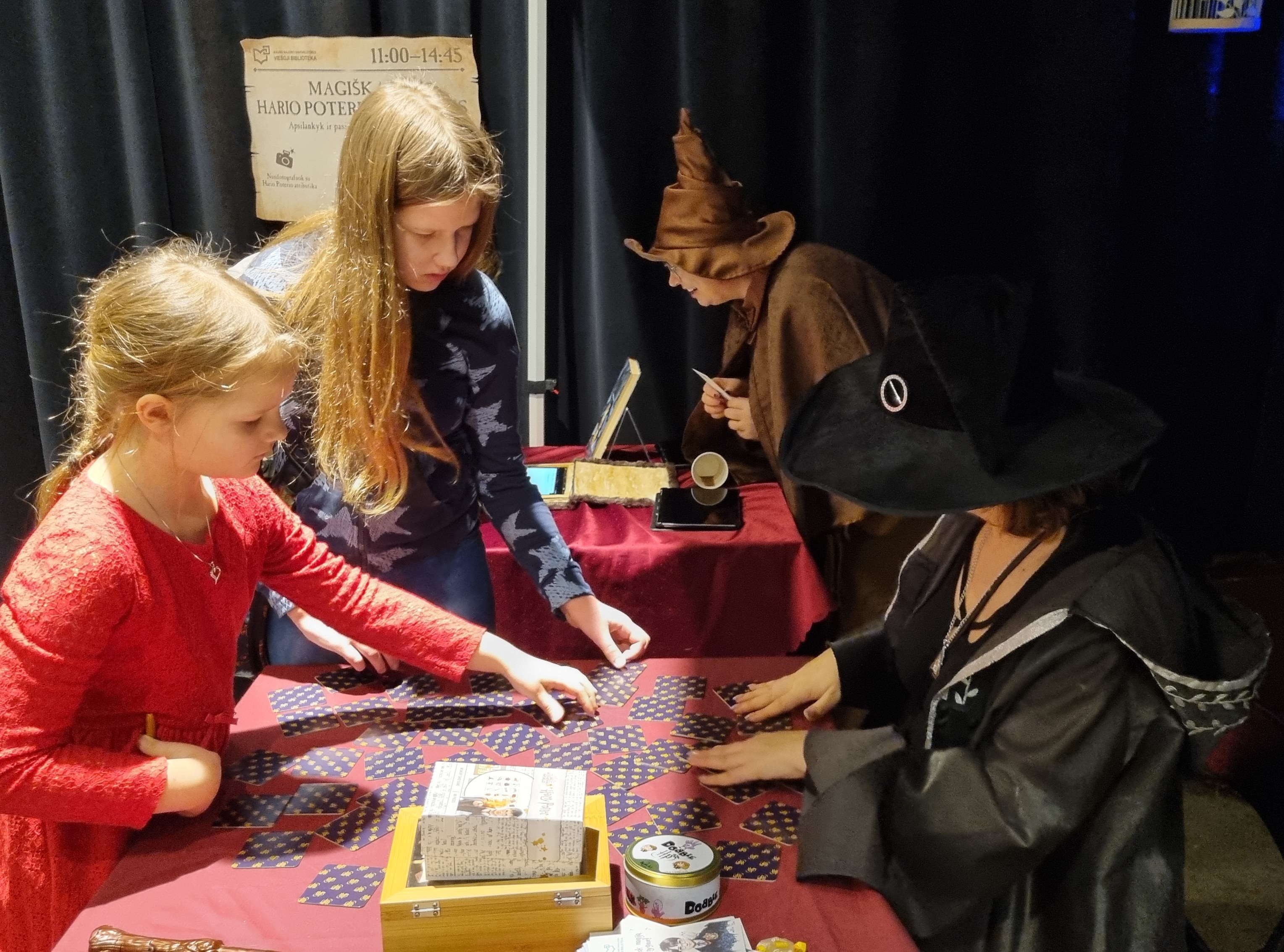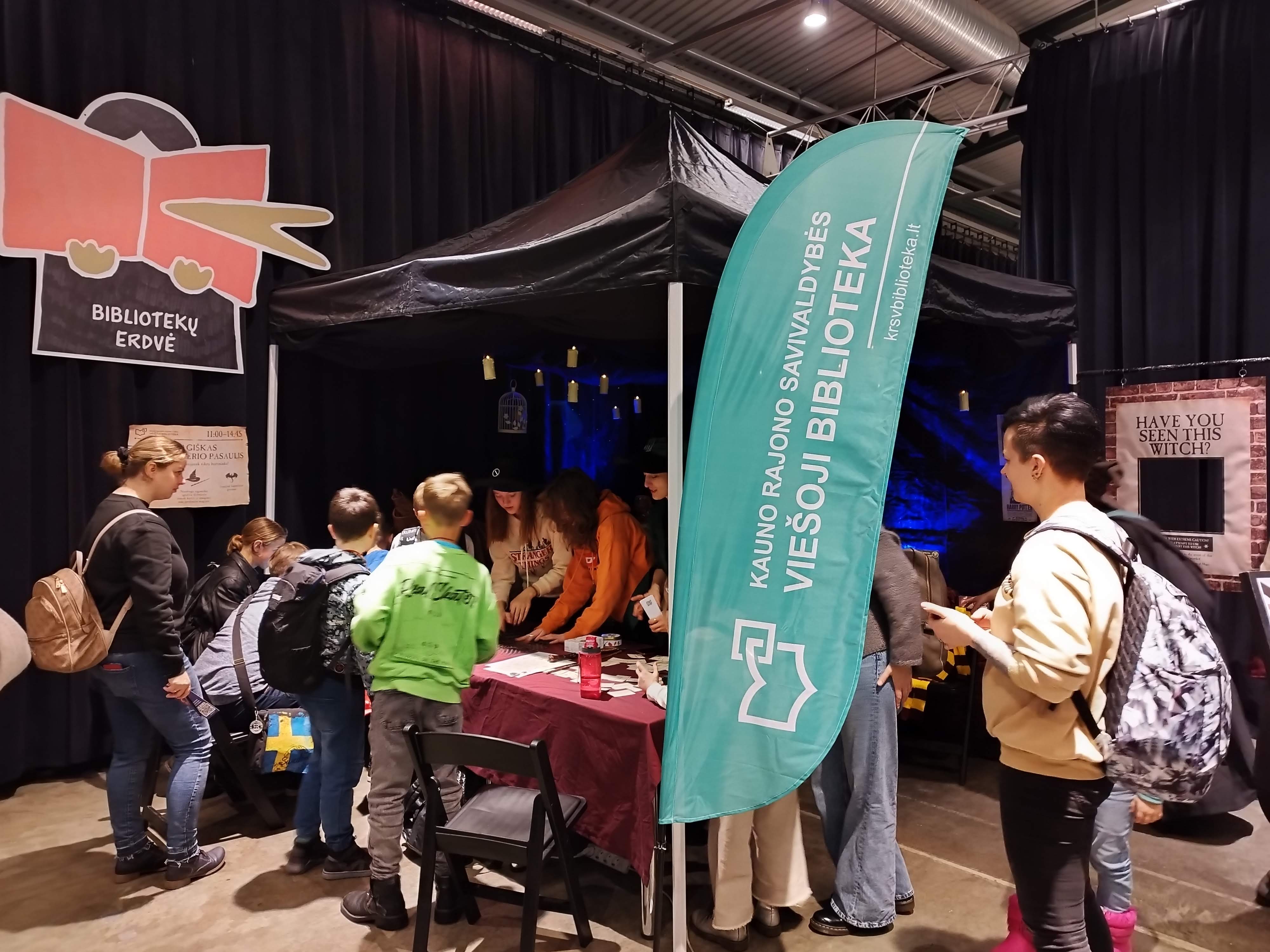 Vilniaus knygų mugėje Kauno rajono savivaldybės viešoji biblioteka sukūrė „Magišką Hario Poterio pasaulį“ – literatūrinį nuotykį, įtraukiantį į edukacines ir kūrybines veiklas. Bet kokio amžiaus lankytojai buvo kviečiami užsukti, nes juk tokios yra ir knygos apie Harį Poterį – subalansuotos vaikams, bet įtraukiančios ir suaugusiuosius. Biblioteka siūlė pabūti burtininkais ir varžytis tarpusavyje žaidžiant stalo žaidimus Hario Poterio tema, intrigavo edukacija apie fantastinius gyvūnus su žaismingomis užduotimis planšetėse bei kerėjimo pamoka: burtų lazdelės naudojimo vadovas, burtažodžių spėlionės ir kt. Sėkmingai įveikusiems užduotis biblioteka dalijo saldžius prizus ir Hario Poterio simbolika papuoštus knygų skirtukus. „Magiško Hario Poterio pasaulio“ edukacijas vedė bibliotekos edukatorė Kristina Meilutė, dailininkė Dainora Minkevičiūtė, vyr. bibliotekininkės Vaiva Steponaitienė ir Sandra Žydaitienė.