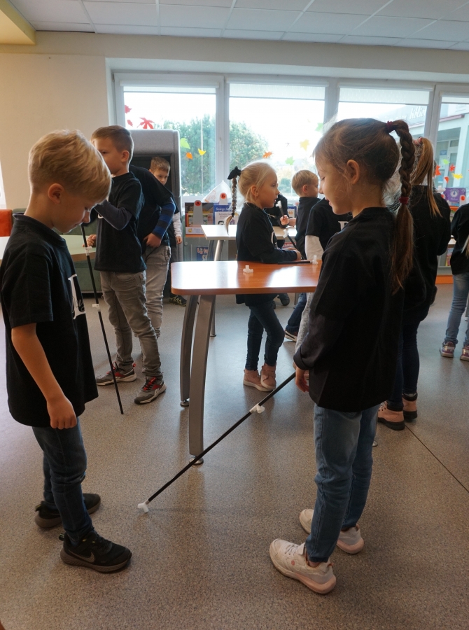 Šeštadienį, spalio 15-ąją, buvo minima Pasaulinė baltosios (neregio) lazdelės diena. Tad penktadienį Kauno rajono savivaldybės viešoji biblioteka pakvietė dvi pirmokų klases iš Kauno rajono Garliavos Adomo Mitkaus pagrindinės mokyklos į edukaciją.