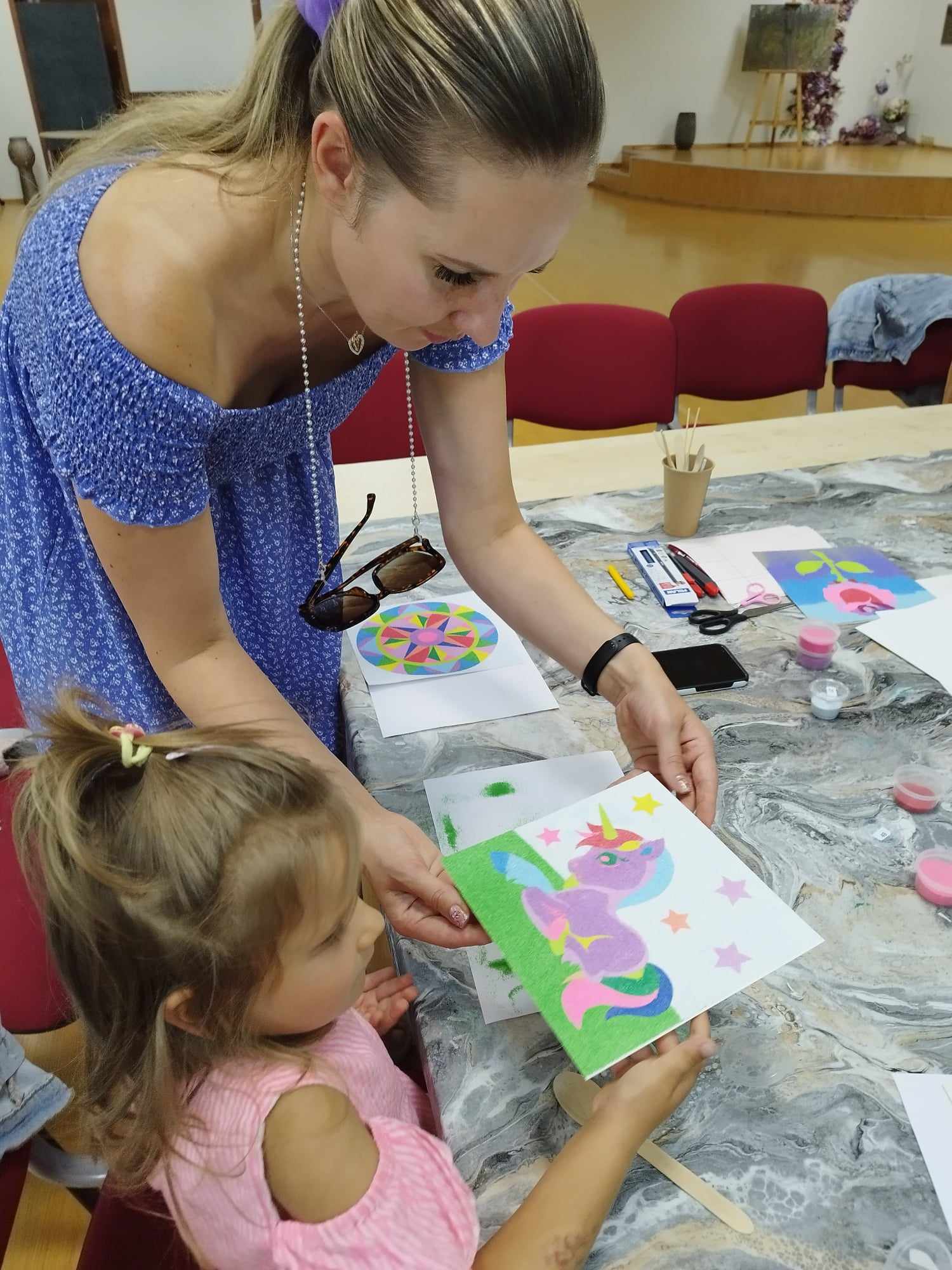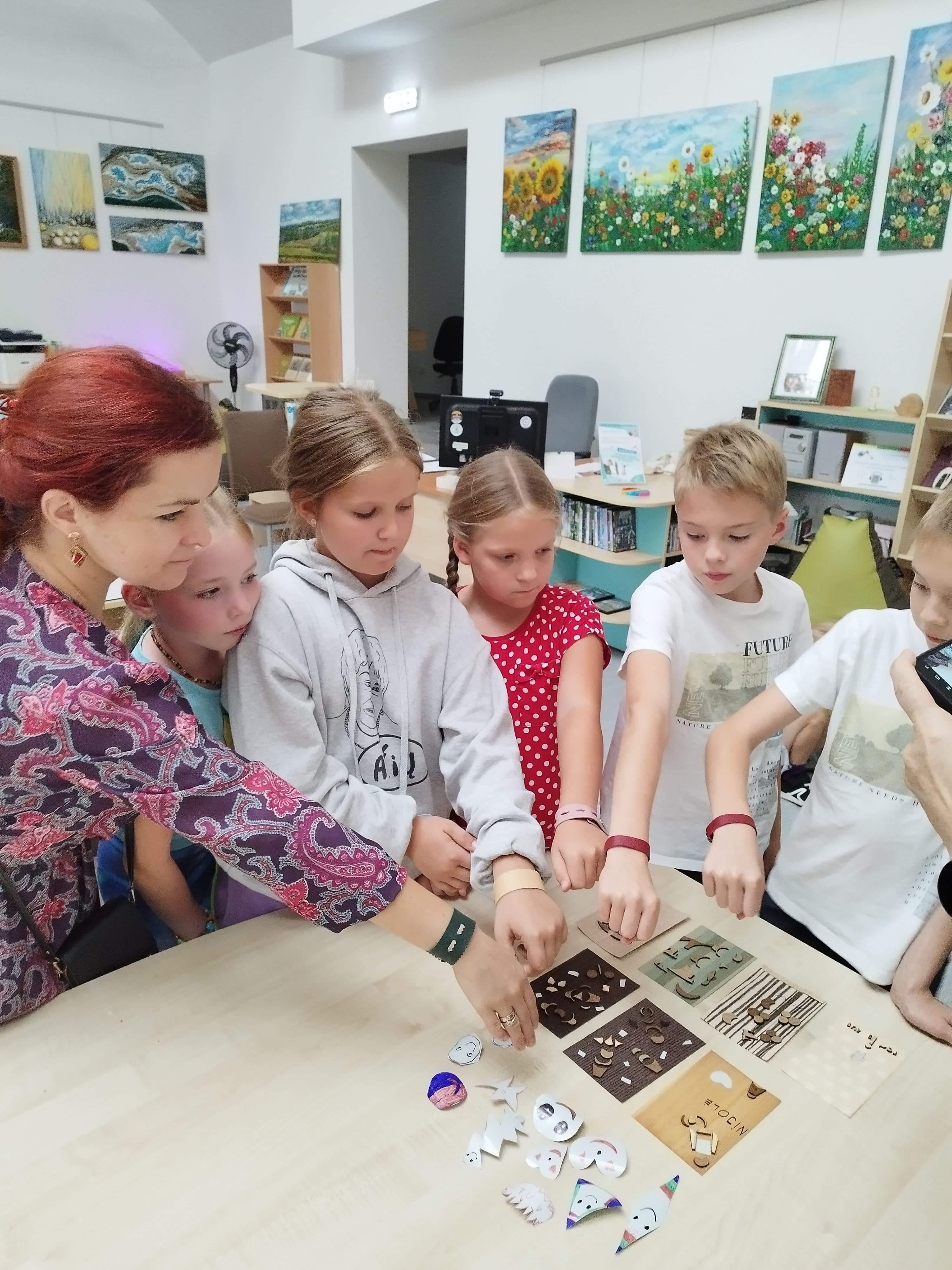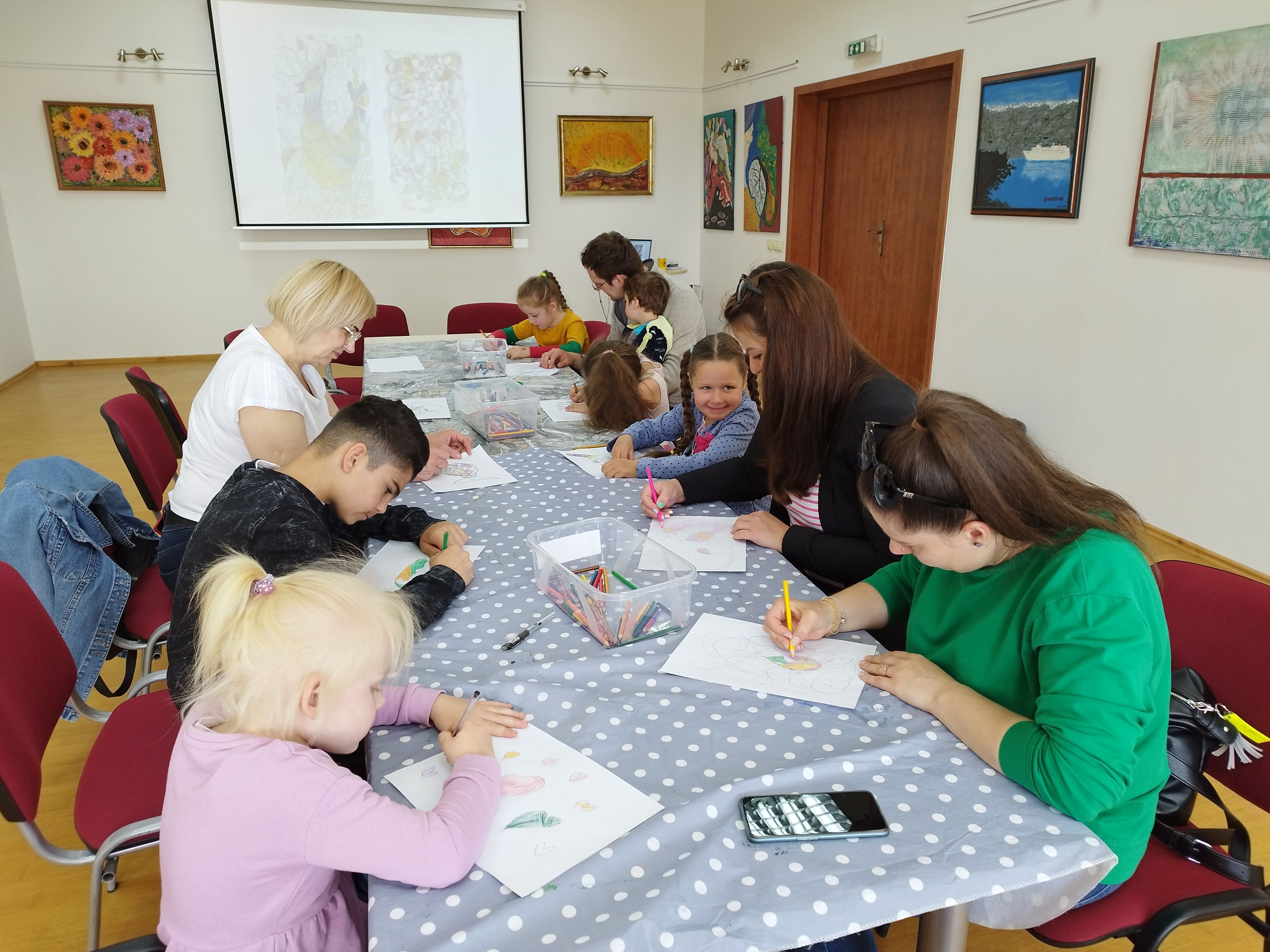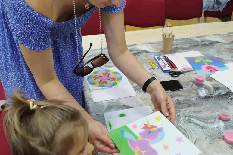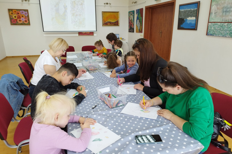 Bibliotekos edukatorės, profesionalios fotografės Kristinos Meilutės edukacinių-kūrybinių veiklų metu šeimos susipažino su tapyba smėliu ir taškavimo menu. Tapydami smėliu projekto dalyviai lavino vaizduotę, kantrybę, kruopštumą, gebėjimą sutelkti dėmesį ir išreikšti save. Vaikams ir jų tėveliams tai – lyg terapija, įgalinanti nugalėti stresą, leisti kūnui atsipalaiduoti. Taškavimo edukacijoje kurdamos mandalas šeimos sužinojo apie jų reikšmę Rytų kultūroje ir raišką lietuvių kultūroje. Klausantis meditacinės muzikos ir atliekant praktinę taškavimo veiklą buvo kuriama saugi ir rami aplinka, skatinanti harmoningą bendravimą. O dailininkės ir edukatorės Nijolės Čepauskienės vedamose kūrybinėse dirbtuvėse fraktalų piešimo praktika buvo taikoma kaip gilesnio savęs pažinimo metodas ir meninės saviraiškos būdas, skatinantis analizuoti emocinę bei psichologinę būseną.