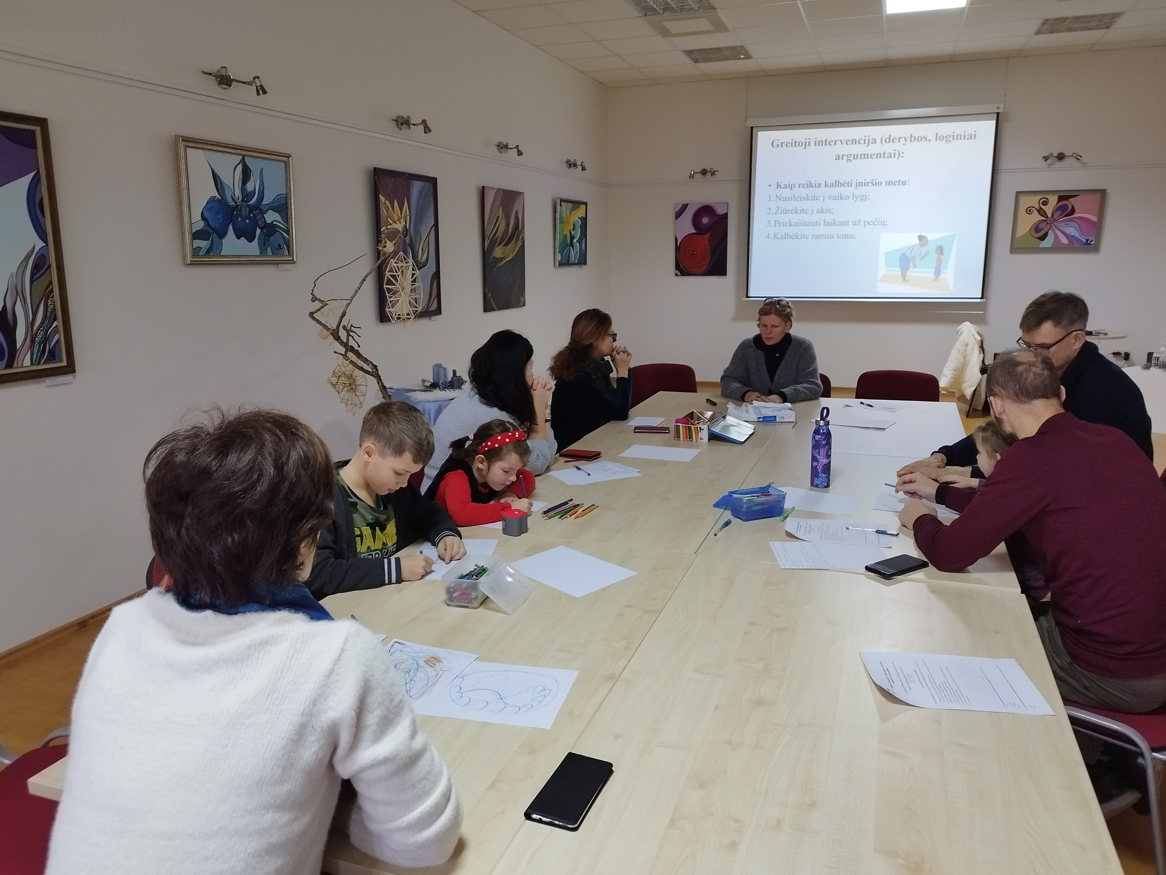 Pirmąsias projekto dirbtuves vedusi menininkė ir kvepalų kūrėja Rasa Staskonytė supažindino šeimas su kvapų meno – olfaktorijos – vienu iš kūrybos metodų. Edukacijos dalyviai išbandė jėgas kurdami bendrą olfaktorinę improvizaciją tema „Gurmaniška puota“. Kūno kalbos ir žmonių tipologijos specialistės, lektorės, vaikų ir paauglių akademijos „MUSTer Academy“ įkūrėjos bei vadovės, jaunimo karjeros ir sertifikuotos veidotyros konsultantės Lauros Šukienės Garliavoje vestame seminare „Kūno kalba, asmenybių tipologija ir veidotyra“ projekto dalyviai galėjo pažinti savo ir aplinkinių žmonių kūno kalbą, veidotyros pagrindus, nagrinėti žinomų prezidentų kūno kalbą, sužinoti apie žmonių tipologiją pagal DISC modelį. O Kačerginės bibliotekoje įvykusiame antrame lektorės Lauros Šukienės seminare „Santykiai su vaikais ir paaugliais, tėvų klaidos, vaikų skirtumai“ tėvai gavo patarimų, kaip stiprinti ryšį su vaikais, gerinti abipusį supratimą, į kokius vaiko bruožus ir pomėgius atkreipti dėmesį paauglystėje, kaip padėti atžalai atrasti savo gabumus ir polinkius.