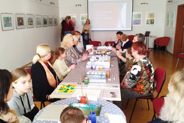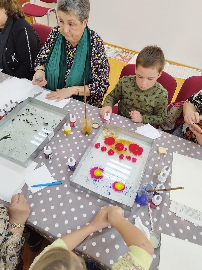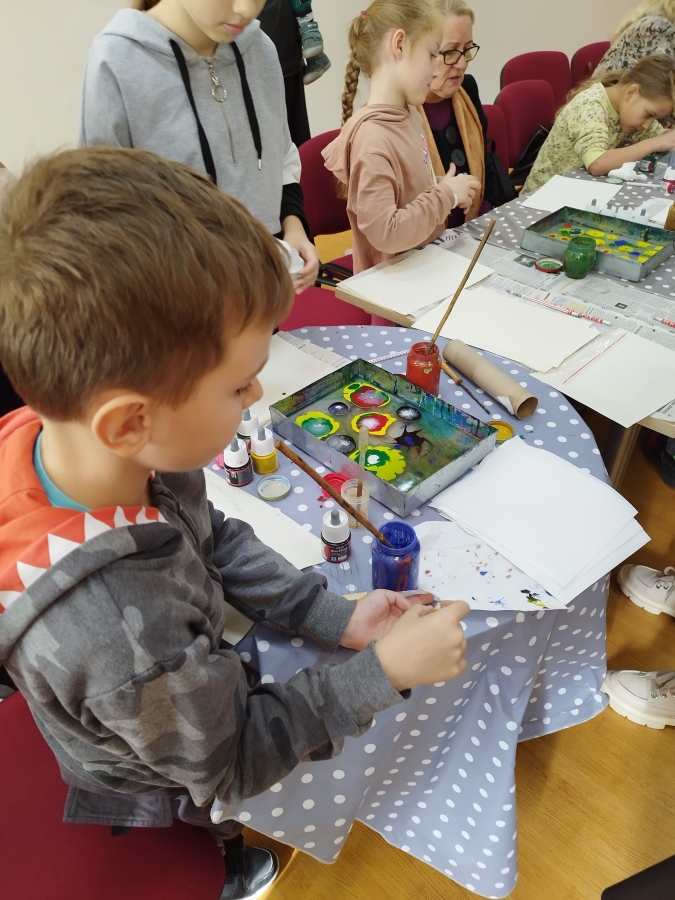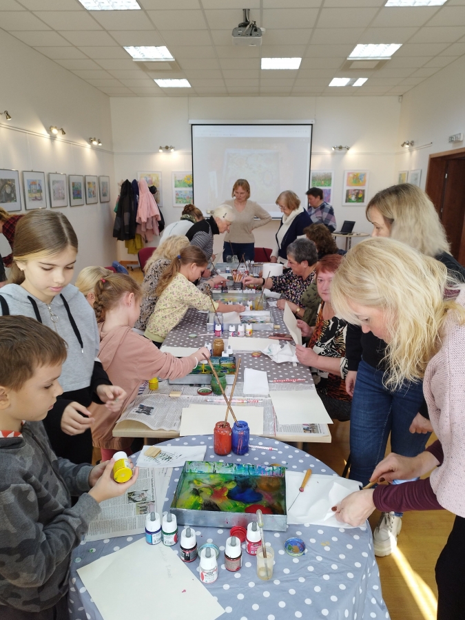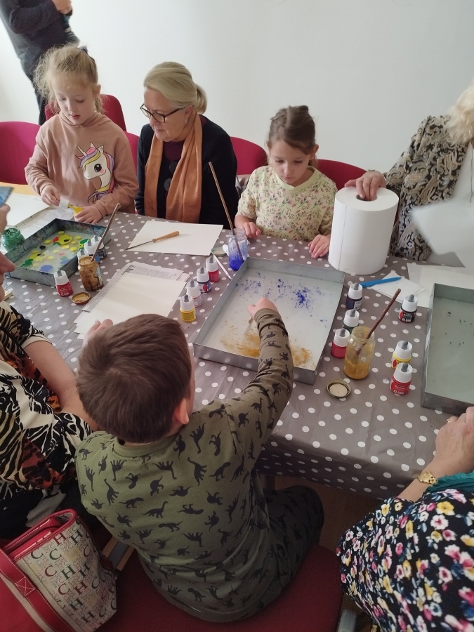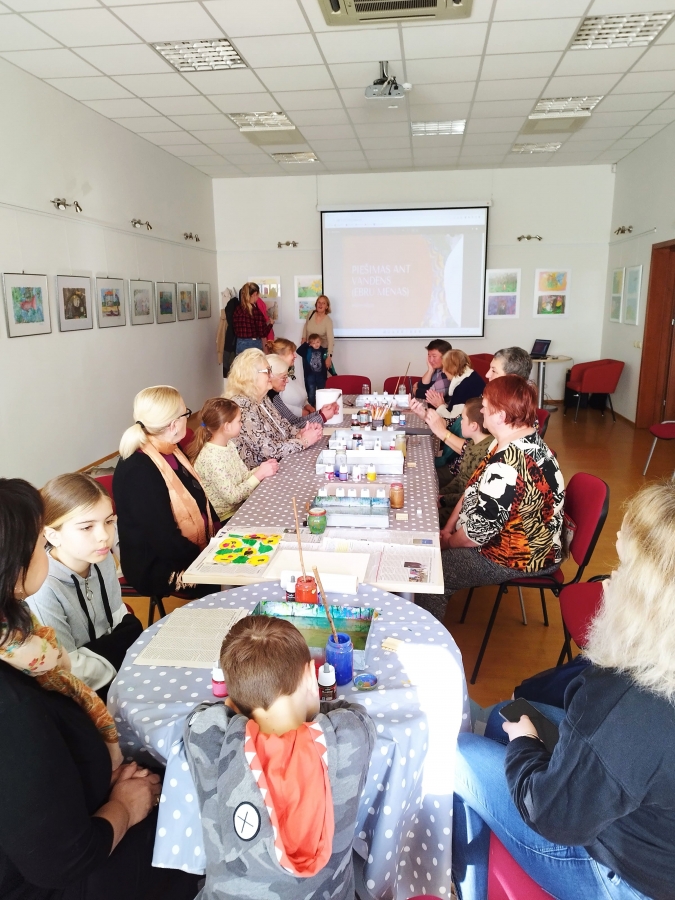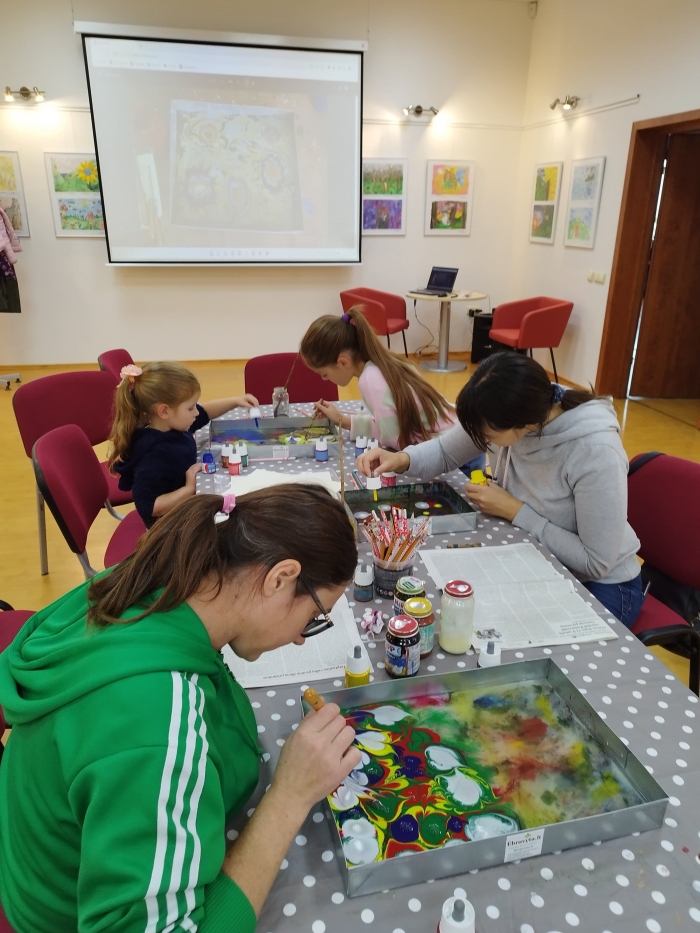 Šeštadienį, spalio 15 d., Kauno rajono savivaldybės viešojoje bibliotekoje šeimos ir senjorai rinkosi į projekto „Susitikime pokyčiams!“ renginį – edukaciją „Ebru menas“, vedamą bibliotekos edukatorės Kristinos Meilutės.