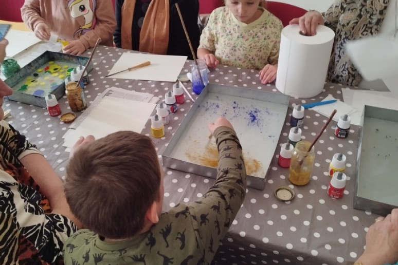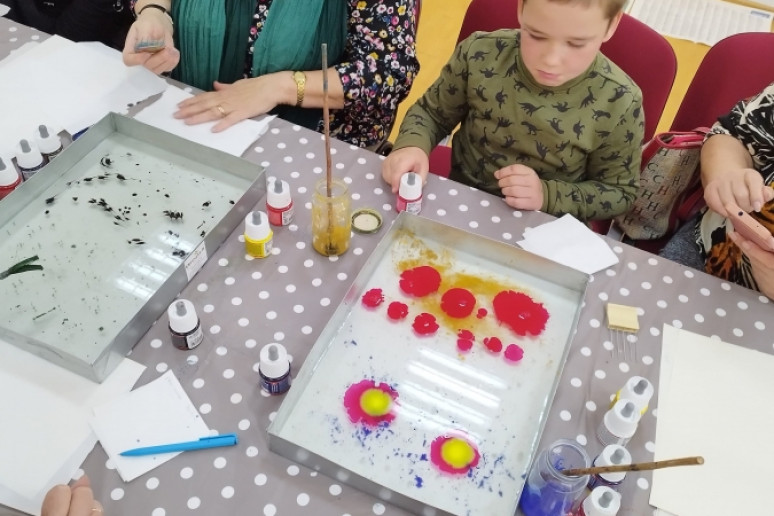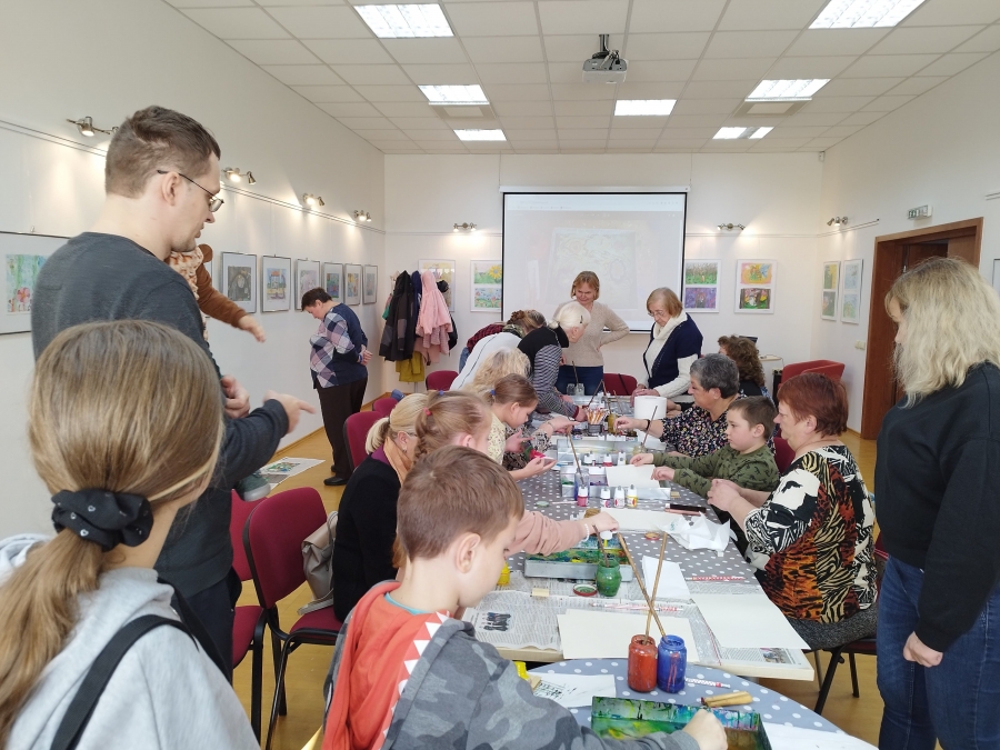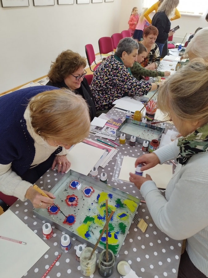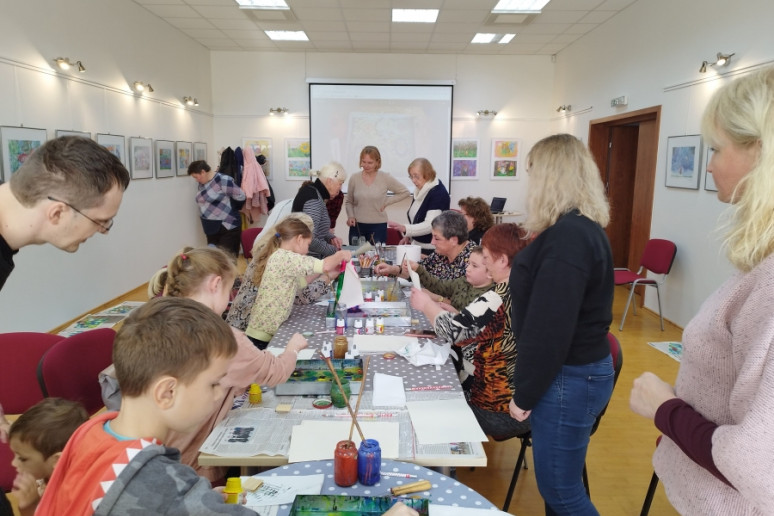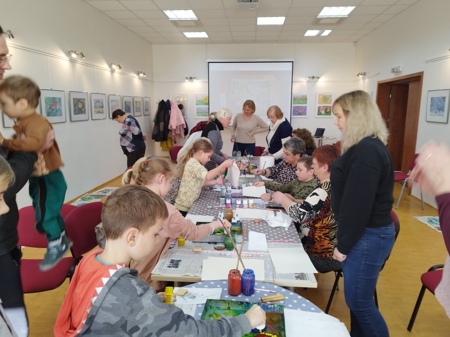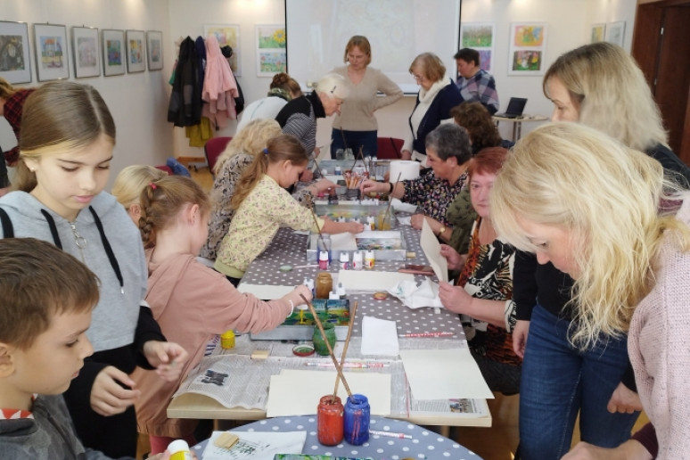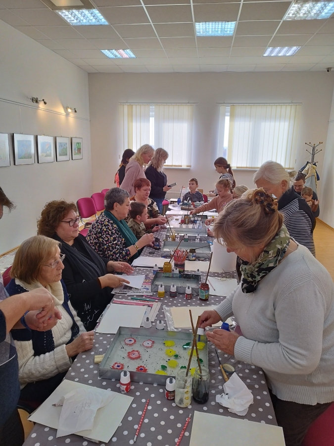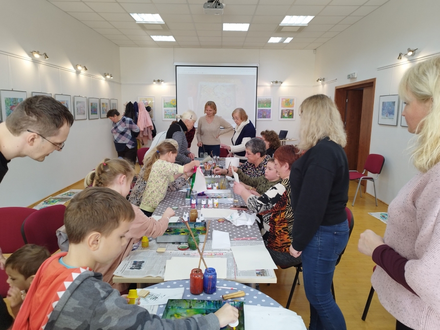 Šeštadienį, spalio 15 d., Kauno rajono savivaldybės viešojoje bibliotekoje šeimos ir senjorai rinkosi į projekto „Susitikime pokyčiams!“ renginį – edukaciją „Ebru menas“, vedamą bibliotekos edukatorės Kristinos Meilutės.