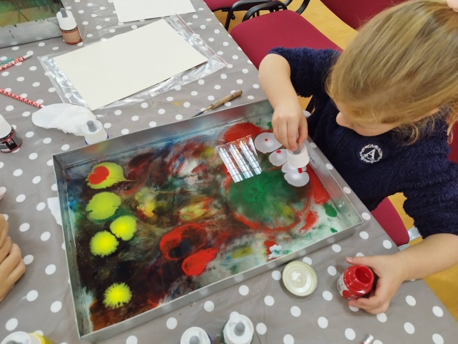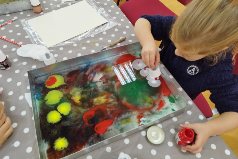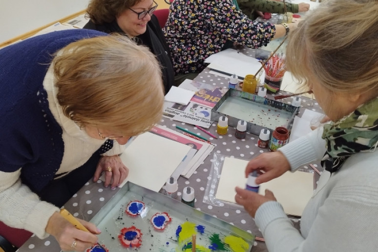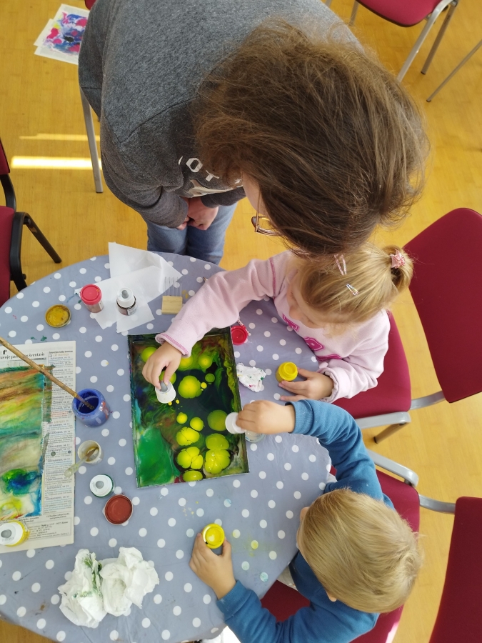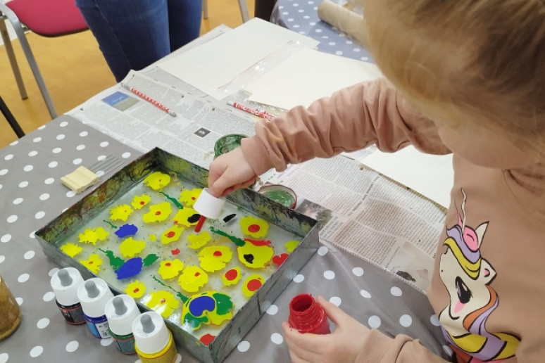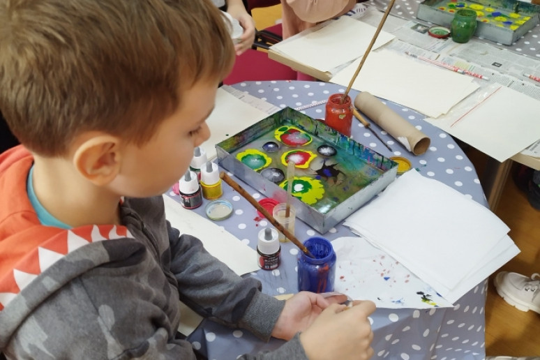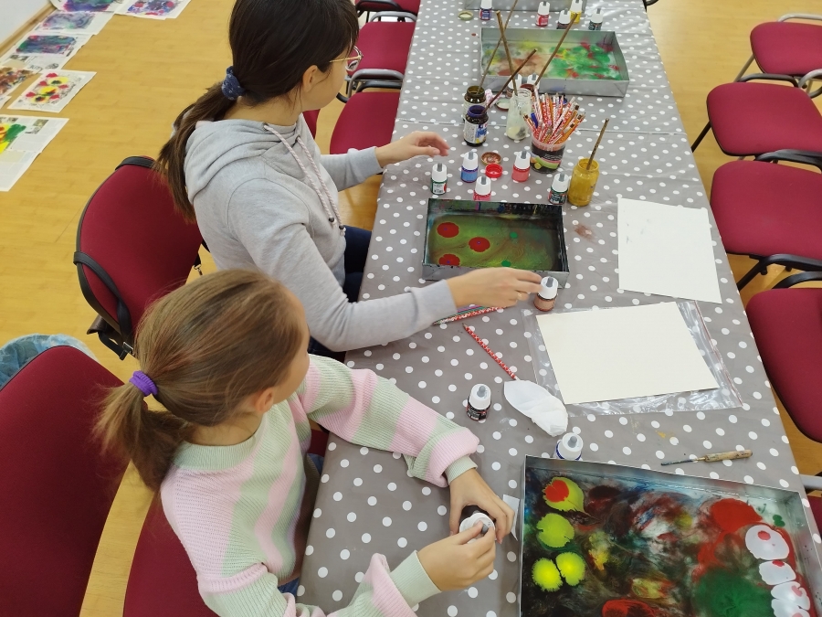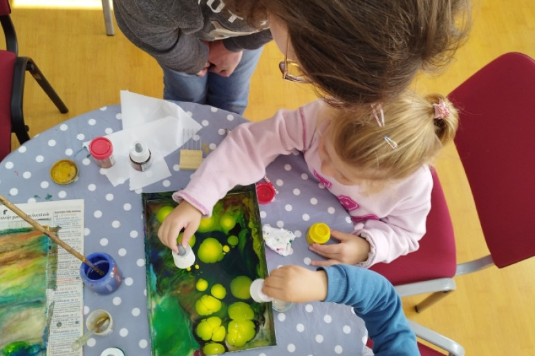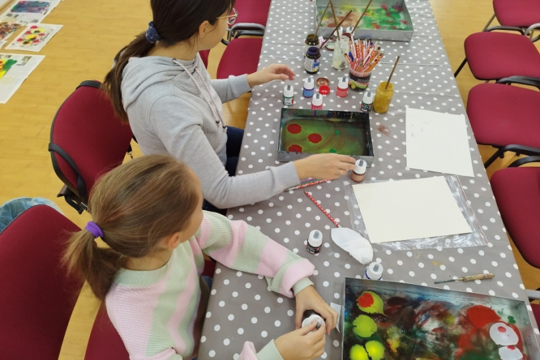 Šeštadienį, spalio 15 d., Kauno rajono savivaldybės viešojoje bibliotekoje šeimos ir senjorai rinkosi į projekto „Susitikime pokyčiams!“ renginį – edukaciją „Ebru menas“, vedamą bibliotekos edukatorės Kristinos Meilutės.