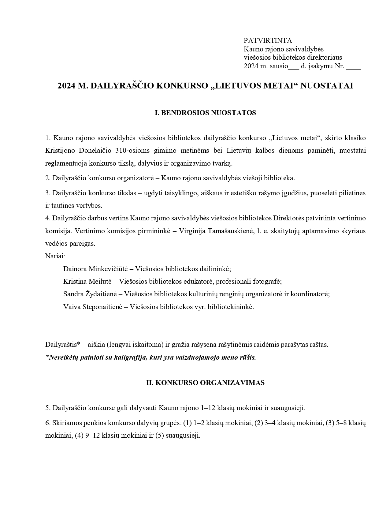 Kauno rajono savivaldybės viešoji biblioteka tradiciškai skelbia kasmetinį dailyraščio konkursą! Kviečiame dalyvauti Kauno rajono moksleivius ir suaugusiuosius.