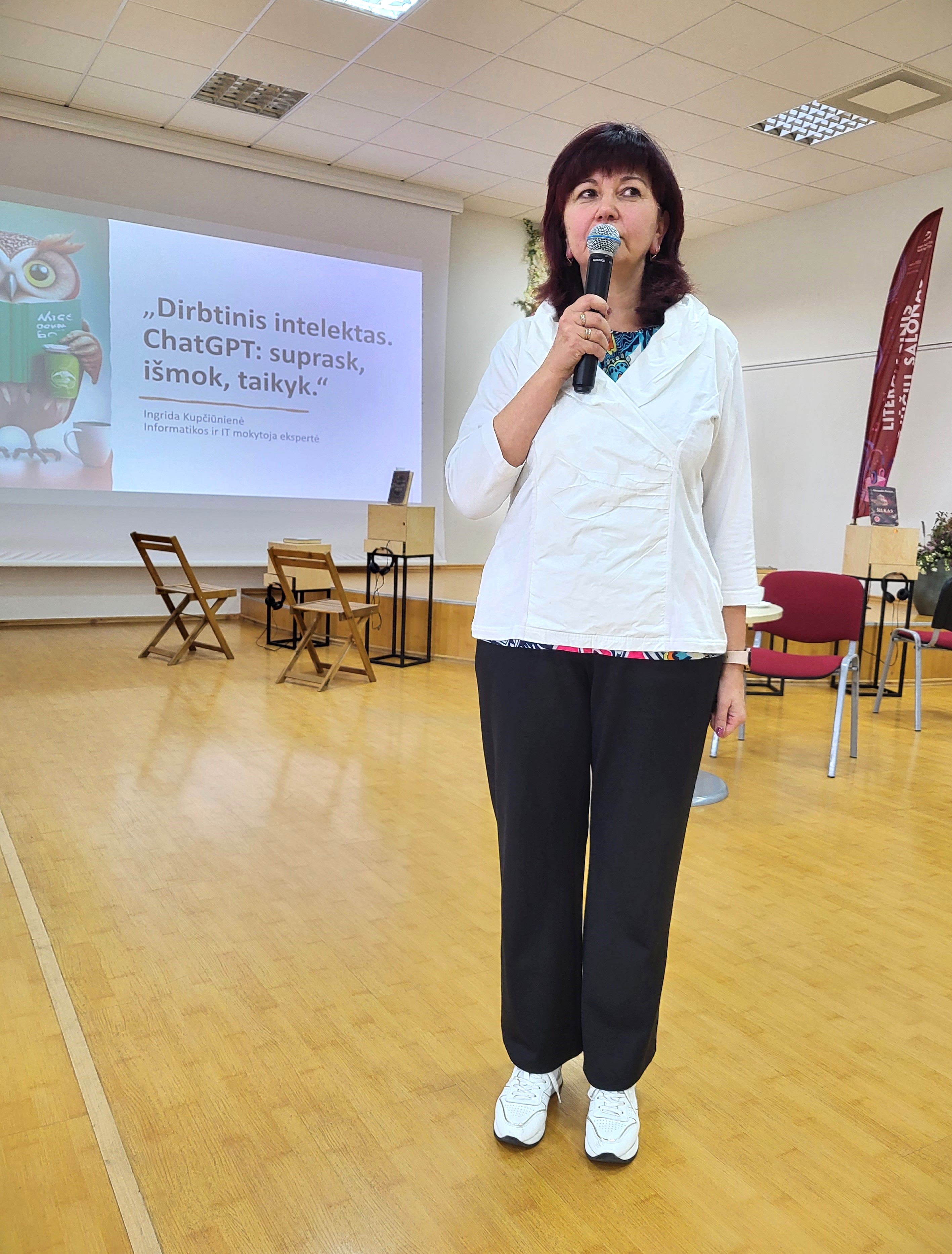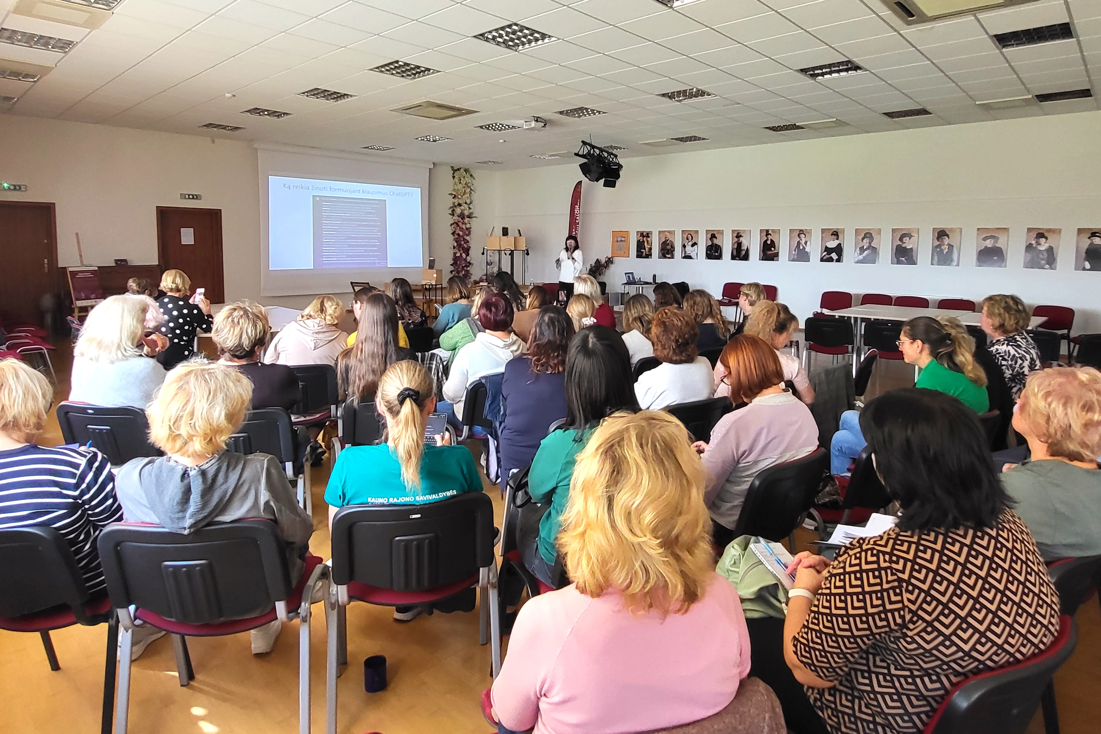 Dalijamės džiugia žinia: Kauno rajono savivaldybės viešosios bibliotekos darbuotojai žengė žingsnį į ateitį. Dirbtinio intelekto tema mokymus bibliotekos darbuotojams vedė IT mokytoja ekspertė, informatikos inžinerijos ir vadybos magistrė, įvairių projektų dalyvė ir bendraautorė Ingrida Kupčiūnienė. Lektorė negailėjo komplimentų dėmesingai, smalsiai ir imliai bibliotekininkų auditorijai.