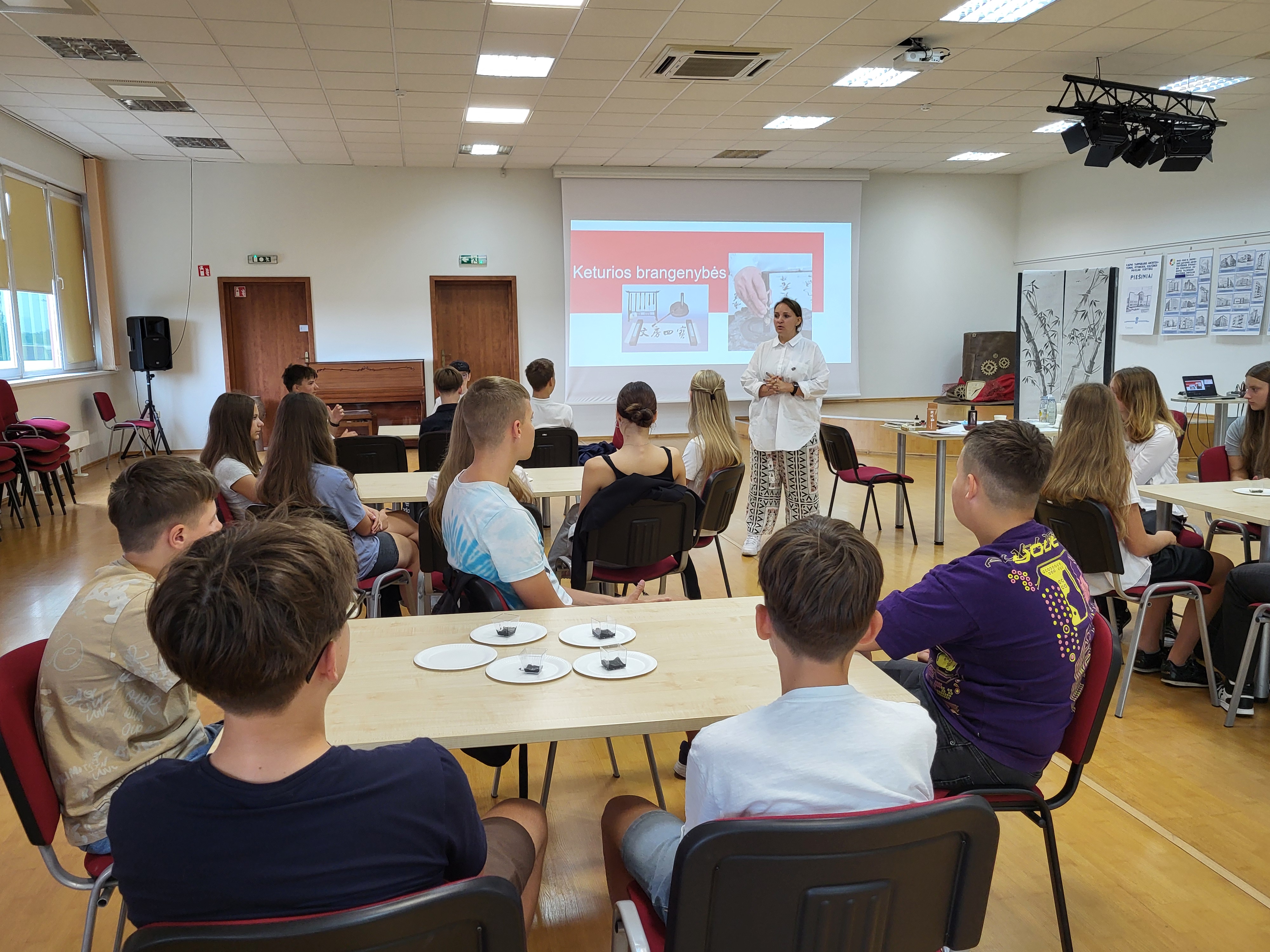 Neabejotinai puikia galimybe pakalbėti apie paveldo klodus, persipynusius ryšius bei įtakas pasinaudojo ir Kauno rajono savivaldybės viešoji biblioteka. Dviem aštuntokų klasėms (Kauno r. Garliavos Jonučių progimnazija) menininkė Rasa Staskonytė vedė edukaciją „Istorinė pažintis su kaligrafija ir tapyba tušu. „Keturių brangenybių“ – tapybos įrankių pasimatavimas“. Gausiai susirinkę moksleiviai kaligrafijos meną pažino tiek teoriškai, tiek praktiškai, ir galėjo pasvarstyti apie japonų bei lietuvių kultūrų sąveikas.
