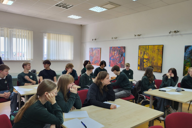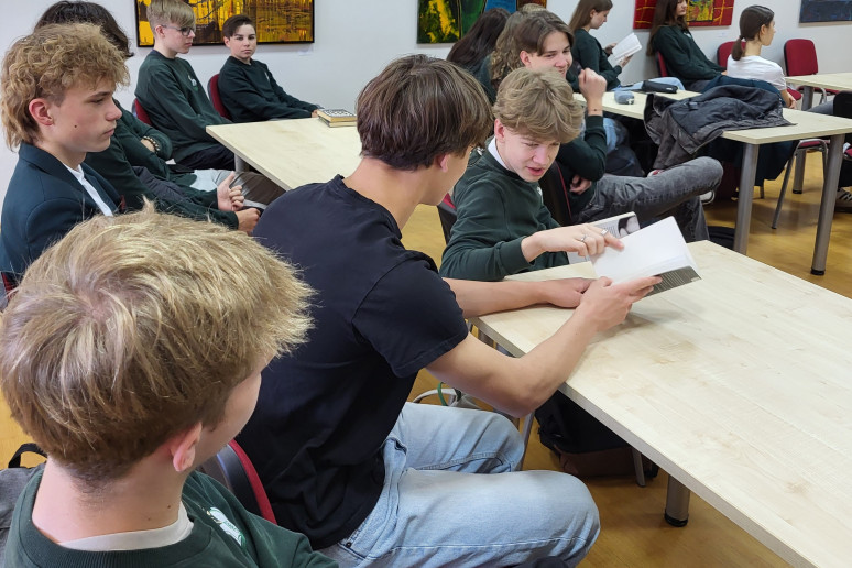 Bibliotekos edukatorė Kristina vedė edukaciją „Fotografiniai vaizdai ir kūrybinis rašymas“: gimnazistai kūrė istorijas pasitelkę fotografinius vaizdus, atliko kūrybiškumą lavinančių treniruočių. „Šiems jauniems žmonėms labai gerai sekėsi! Vos per 10 minučių gimė keletas puikių pasakojimų, kurie tikrai turi potencialo: galima juos plėtoti, vystyti, kažkas įdomaus turėtų išeiti. Kūrybinis rašymas – nepakeičiamas raštingumo skatinimo, atsipalaidavimo, bendravimo, saviraiškos būdas. Juk mūsų kuriamos istorijos yra tarsi raktas, kurį kasdien naudojame norėdami „atrakinti“ ir kitiems parodyti savo patirtis. Jaunuoliai stengėsi perprasti žodžio valdymo technikas bei istorijos pasakojimo galią pasitelkę fotografinius vaizdus kaip pagalbinę priemonę. Giriu visus dirbtuvių dalyvius ir džiaugiuosi jų pastangomis bei įsitraukimu“, – pozityvias kūrybines patirtis apibūdino edukatorė Kristina.