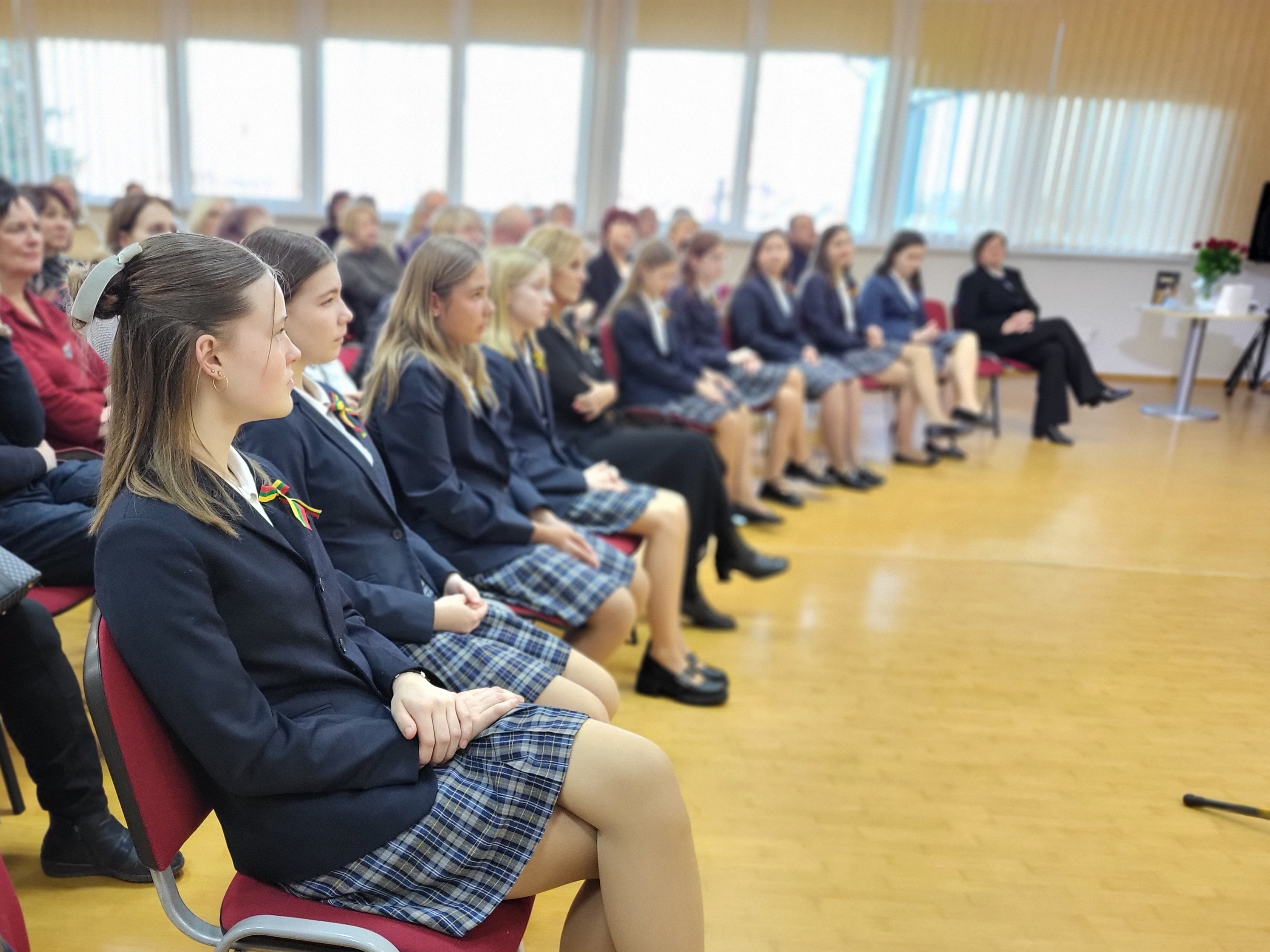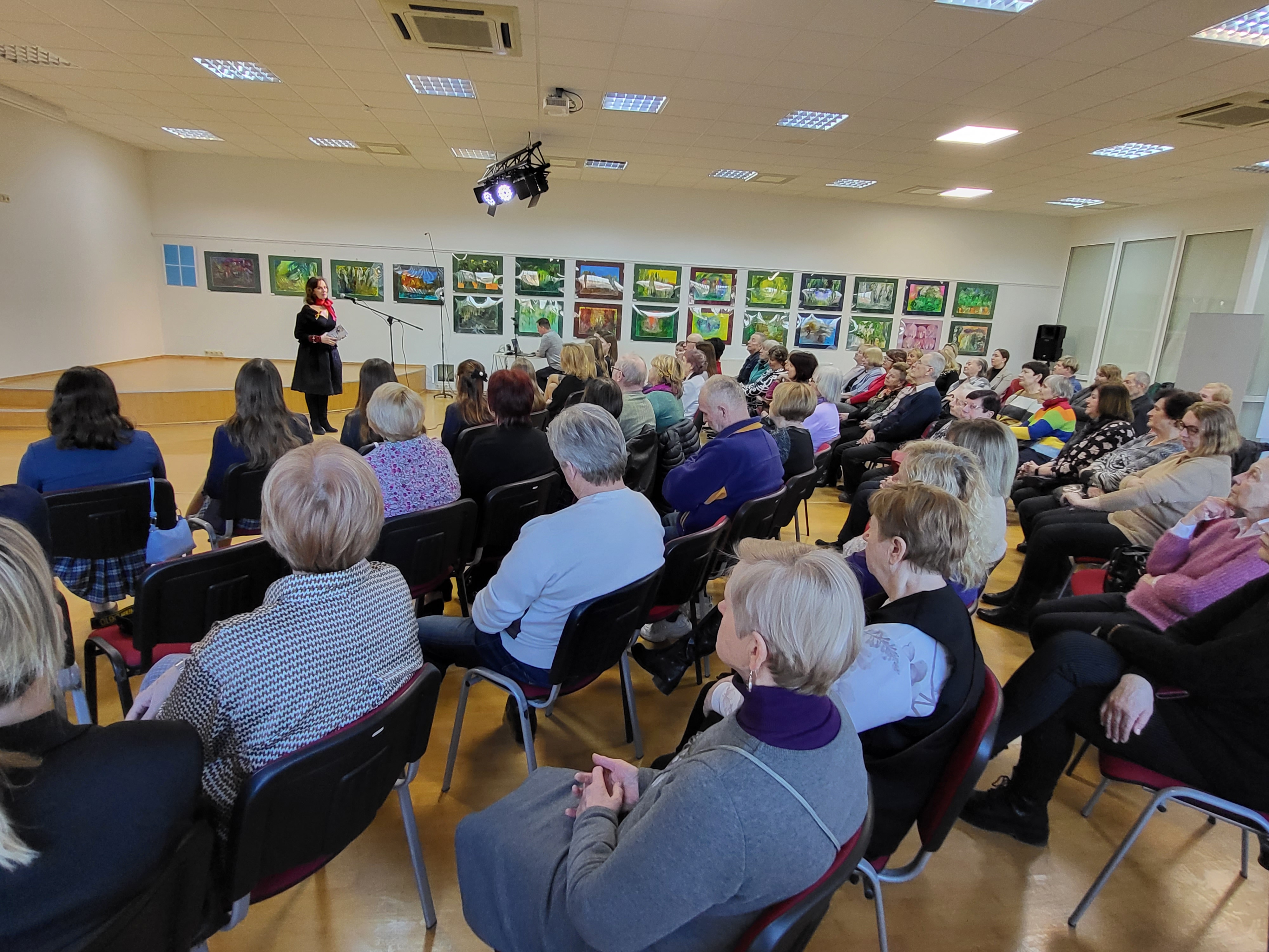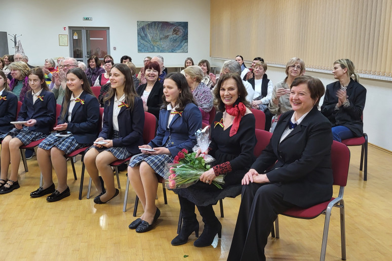 Kovo 11-ąją, Lietuvos nepriklausomybės atkūrimo dieną, bibliotekoje pažymėjome nuostabiais aktorės Virginijos Kochanskytės meniniais perlais, skirtais Lietuvos žemei ir dangui. Aktorė, režisierė, Klaipėdos universiteto docentė Virginija Kochanskytė citavo ir interpretavo iškilaus lietuvių poeto Sigito Gedos kūrybą. Poeto plunksnos galia, susiliejusi su Virginijos aktoriniu virtuoziškumu, sukūrė širdis ir protus užliejančią patriotiškumo bei jautrumo žmogaus būties tragizmui bangą. Išaukštinama Sigito Gedos poezijos kuriamąją galią ir net prilygindama ją Dievo darbų tęsiniui, viltingos Lietuvos ateities vizijos centre Virginija Kochanskytė parodė žmogų – lietuvį, kuris myli savo kraštą, jaučia pareigą tėvynei, atsakomybę už jos likimą. Sukrečiančio gilumo įžvalgas skaidrino Kauno r. Garliavos Adomo Mitkaus pagrindinė mokykla mokinių ansamblis, vadovė Auksė Smilgytė.