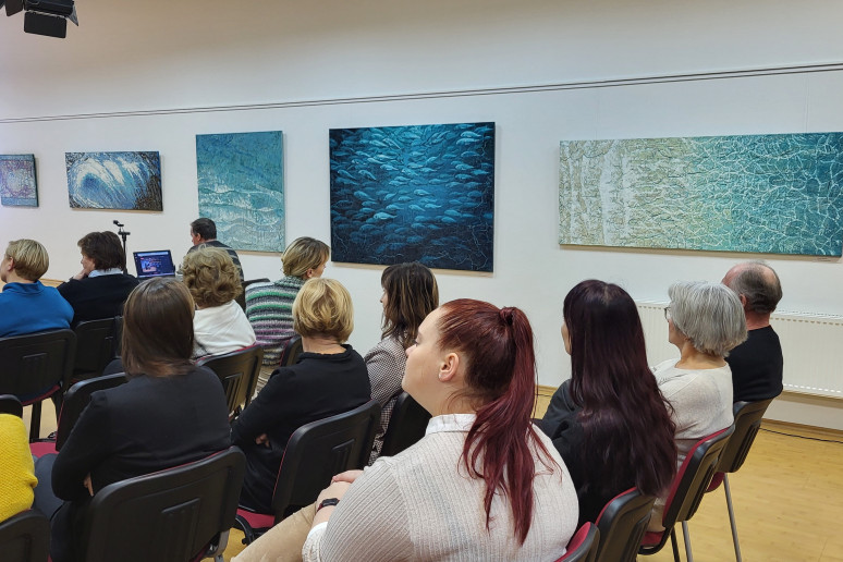 Arti 60 personalinių parodų Lietuvoje ir užsienyje surengusi menininkė sako, jog „ši kolekcija, kuri dabar eksponuojama bibliotekos erdvėse, pradėta kurti per koronos chaosą. Taip visi buvome pasiilgę jūros, niekur negalėjome išvažiuoti. Norėjosi gamtos, ramybės, vandens prisiminimų. Ši kolekcija abstrakti, dabar einu tokia kryptimi. Nors esu kūrusi ir realistinę kolekciją.“