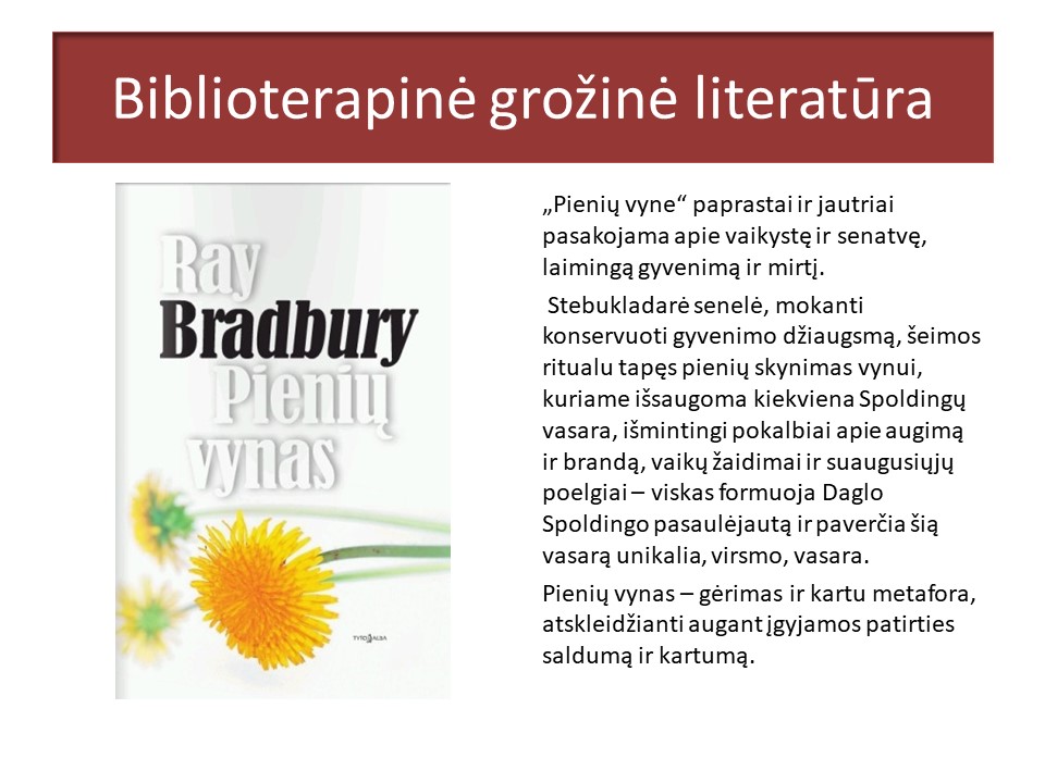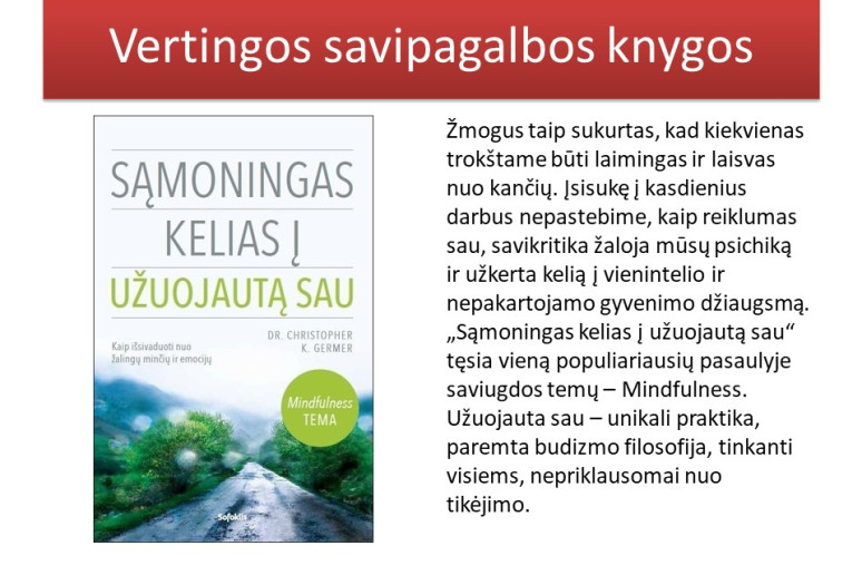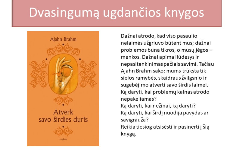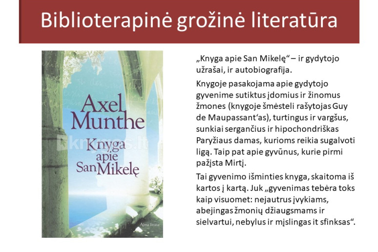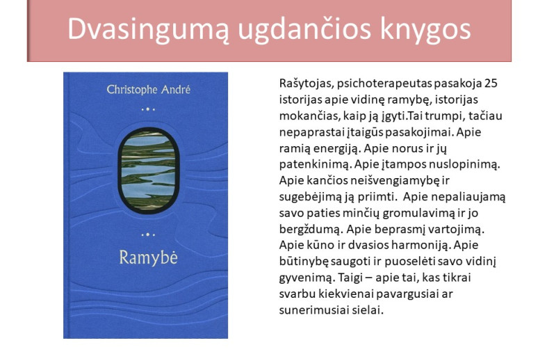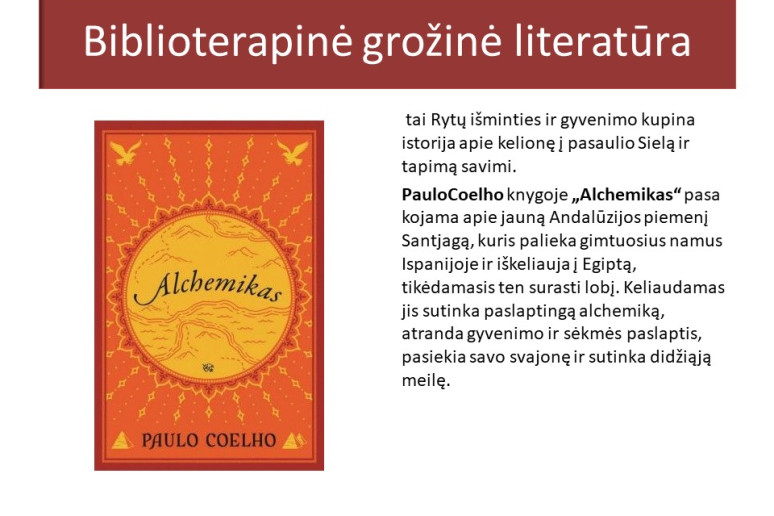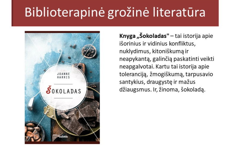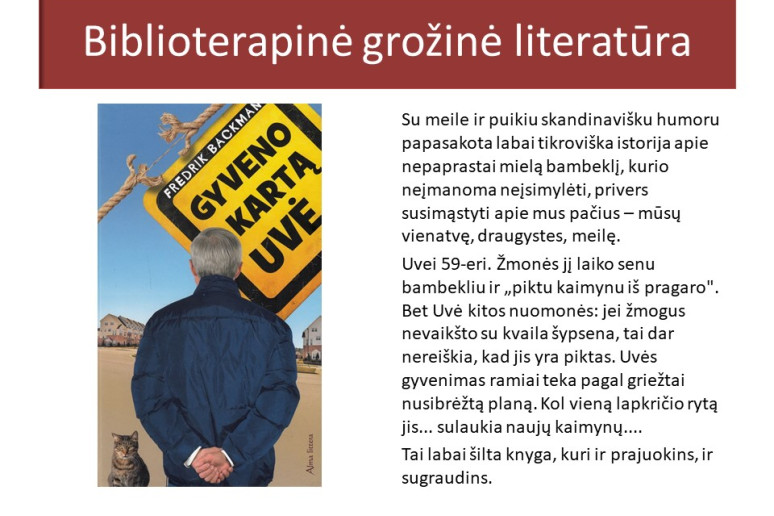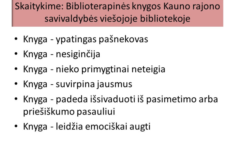 Atnaujintoje Kauno rajono savivaldybės viešosios bibliotekos interneto svetainėje, Virtualių parodų skiltyje, galite rasti biblioterapinių knygų pristatymą. Šios knygos laukia Jūsų dėmesio Kauno rajono savivaldybės viešosios bibliotekos lentynose.