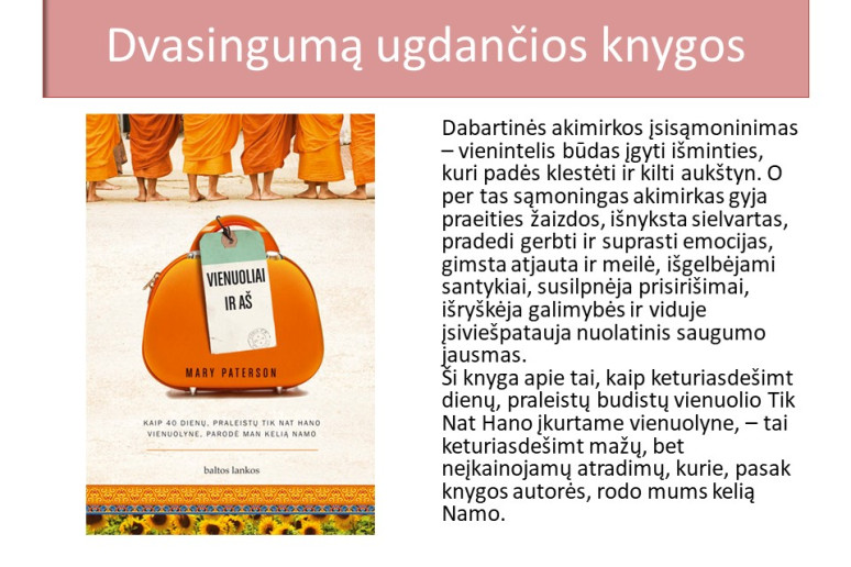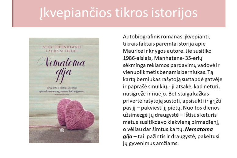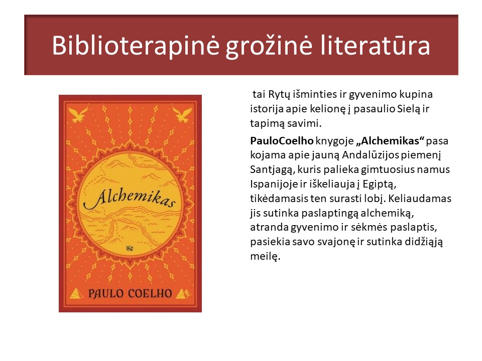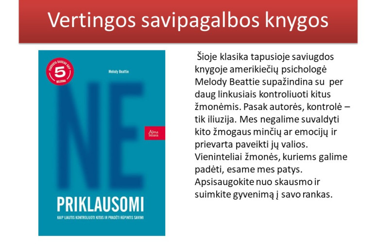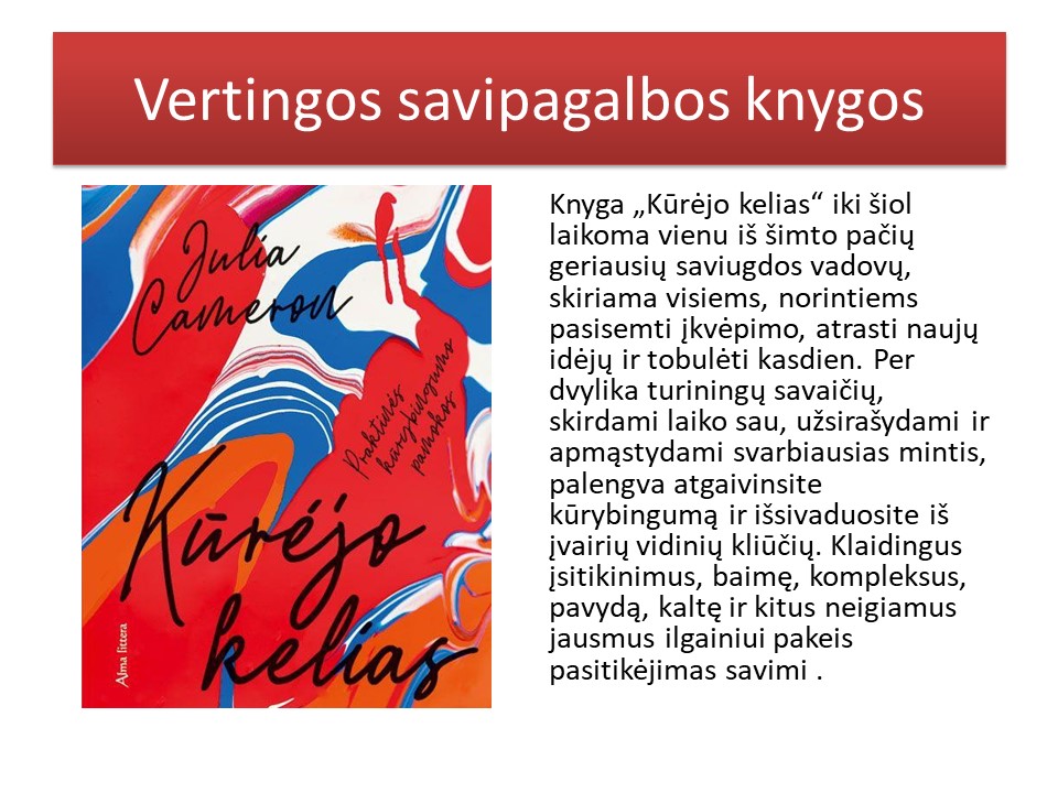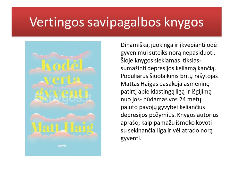 Atnaujintoje Kauno rajono savivaldybės viešosios bibliotekos interneto svetainėje, Virtualių parodų skiltyje, galite rasti biblioterapinių knygų pristatymą. Šios knygos laukia Jūsų dėmesio Kauno rajono savivaldybės viešosios bibliotekos lentynose.