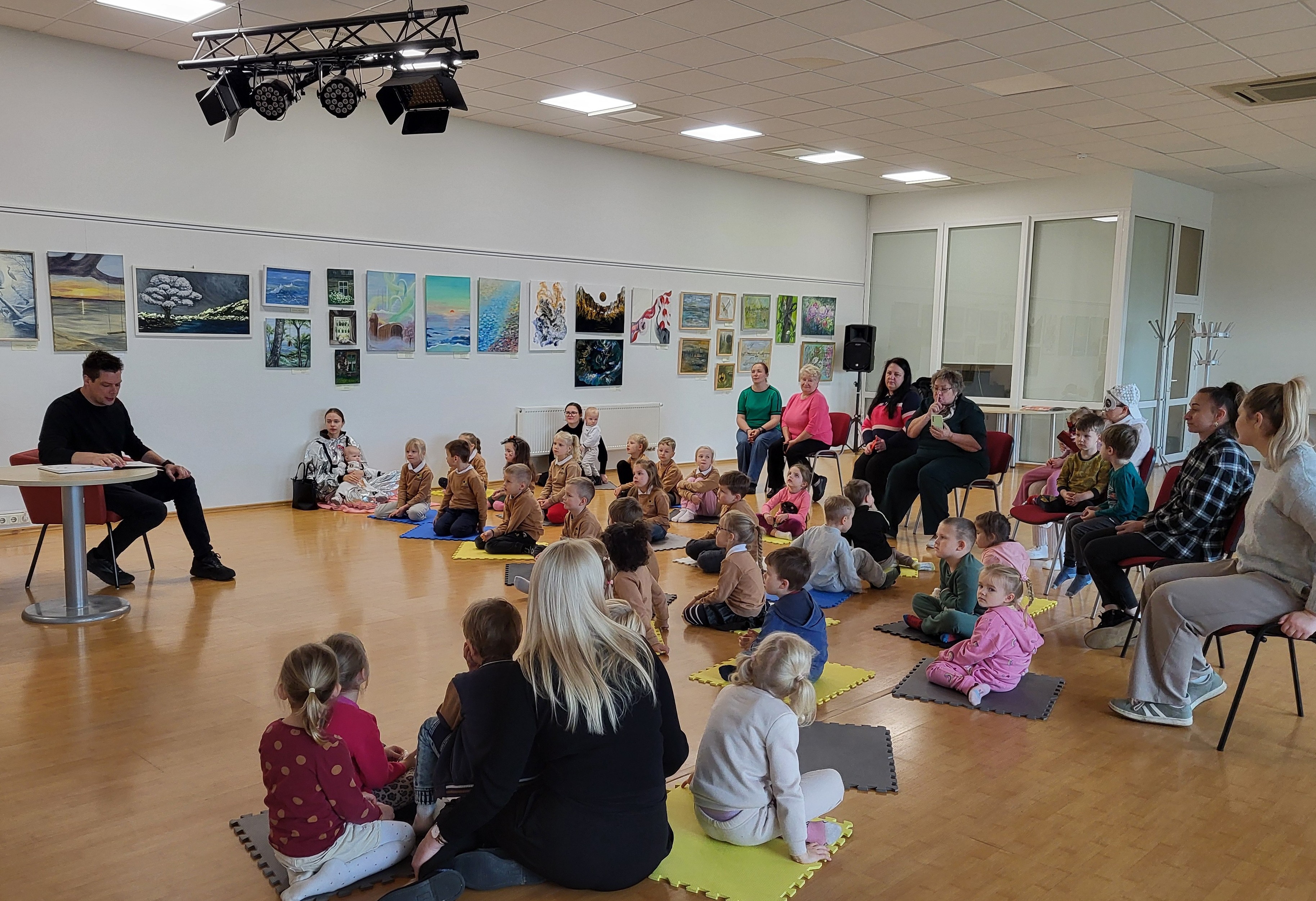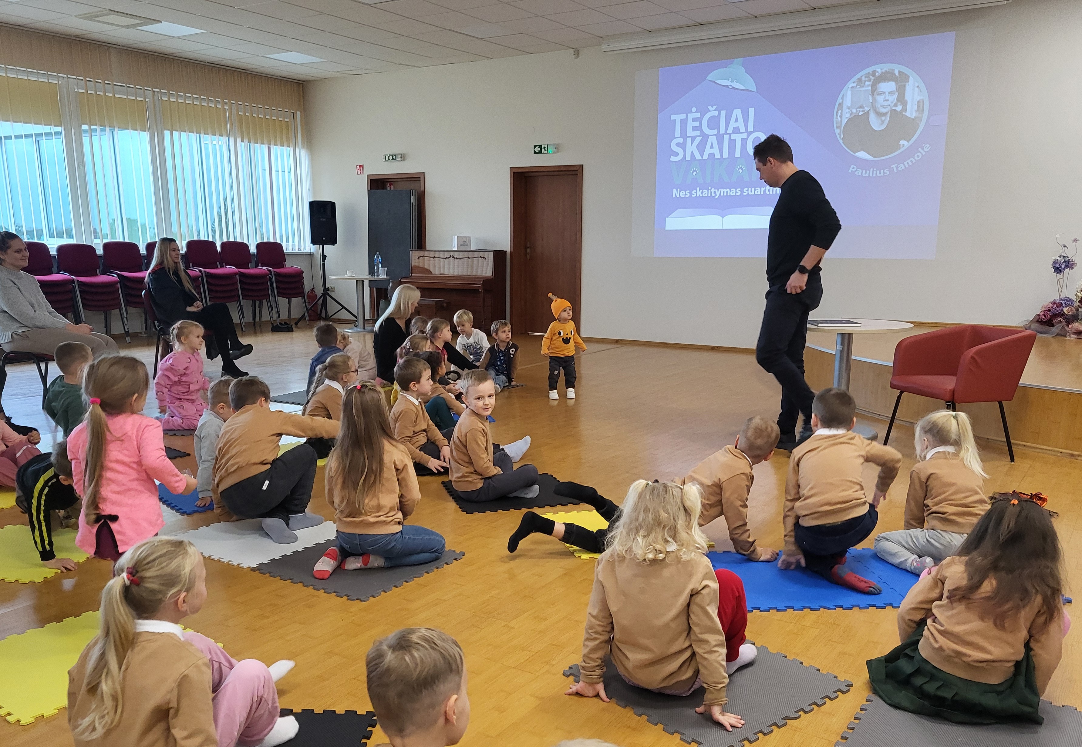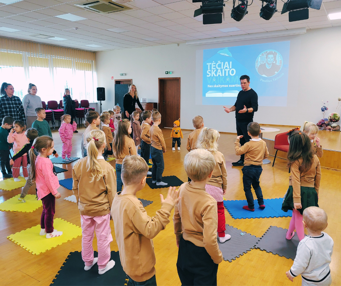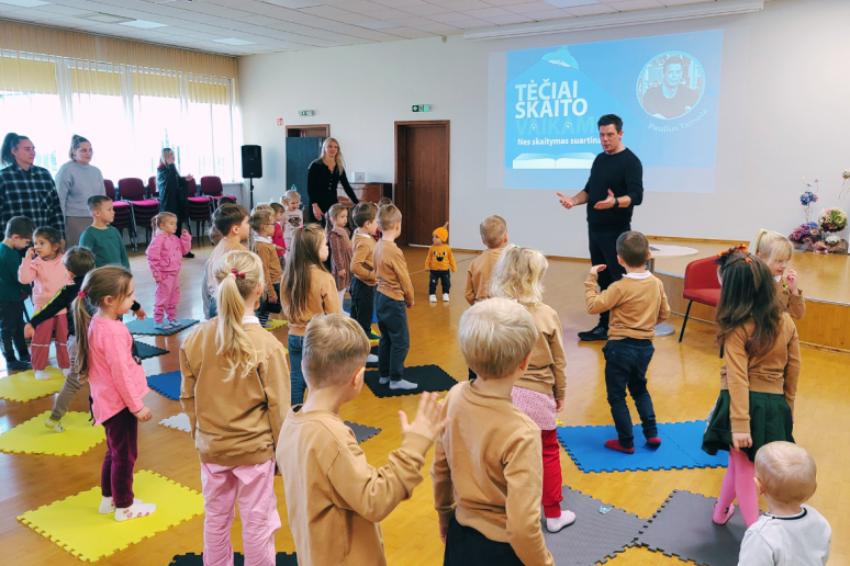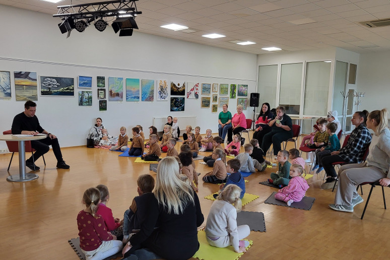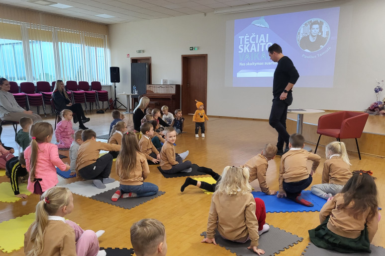 Paulius tarsi užhipnotizavo publiką savo charizma, iškalba, vaidybiškumu ir gera nuotaika. Mastaičių mokyklos-daugiafunkcio centro priešmokyklinukai ir Aleksoto darželio ugdytiniai klausėsi pasakų iš Rasos Lazauskaitės knygos „Šiurpinys. Pasakos siaubasakos vaikams“.
