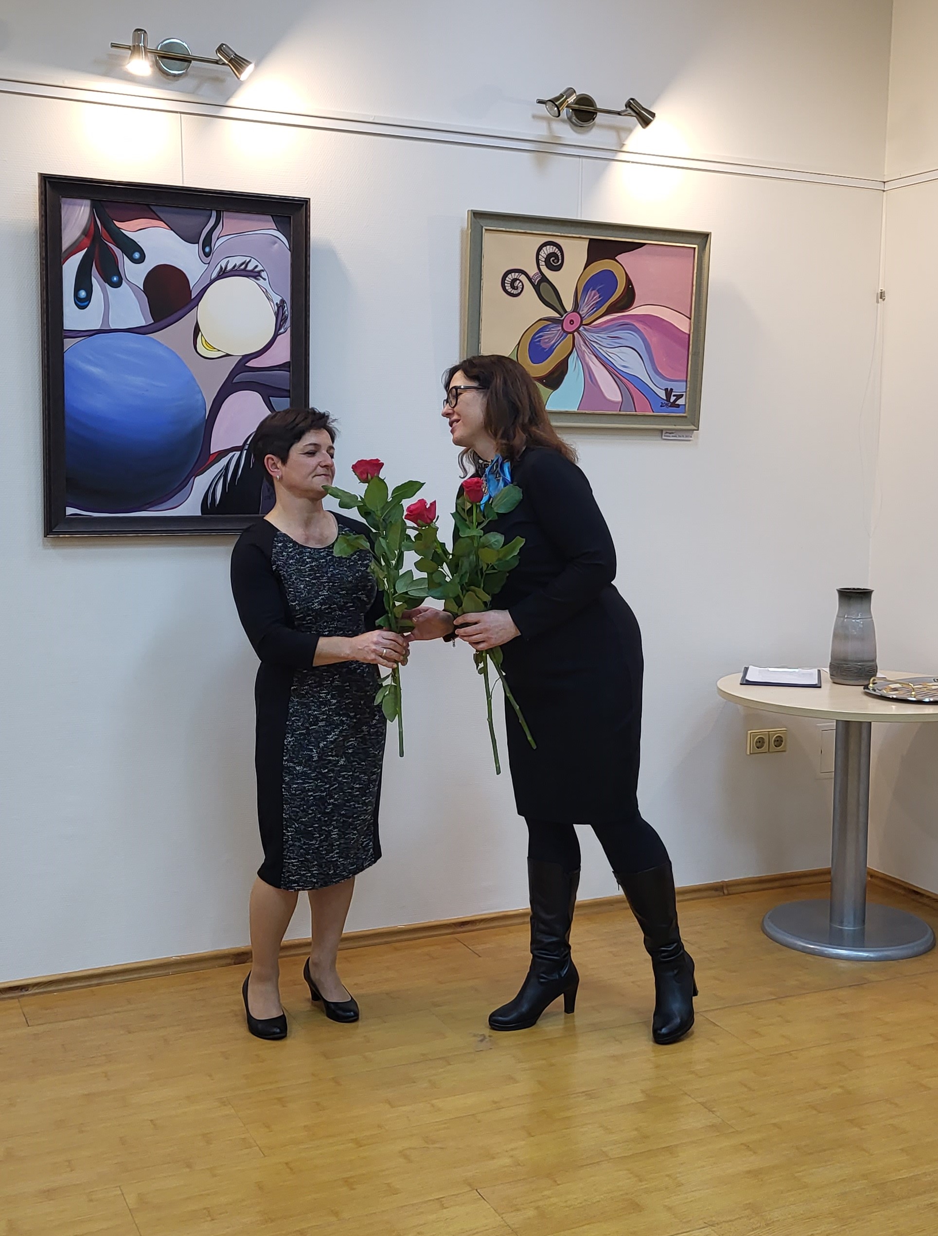 Iš Garliavos kilusi Virginija per parodos atidarymą atviravo visuomet, nuo pat tos akimirkos, kai pradėjo tapyti, idealią savo darbų ekspoziciją įsivaizdavusi būtent taip, kaip jie eksponuojami bibliotekos Parodų salėje. Mokslų daktaro laipsnį turinti menininkė pasakojo apie itin stiprią meninės saviraiškos trauką, neapleidžiančią jos net labiausiai užimtais gyvenimo tarpsniais. Nei mokslo aukštumų siekiai, nei tapimas mama neprivertė pamiršti tapybinių užmojų. „Absoliučiai visi šie darbai, kuriuos matote, yra nutapyti naktimis“, – atskleidė kūrėja.
