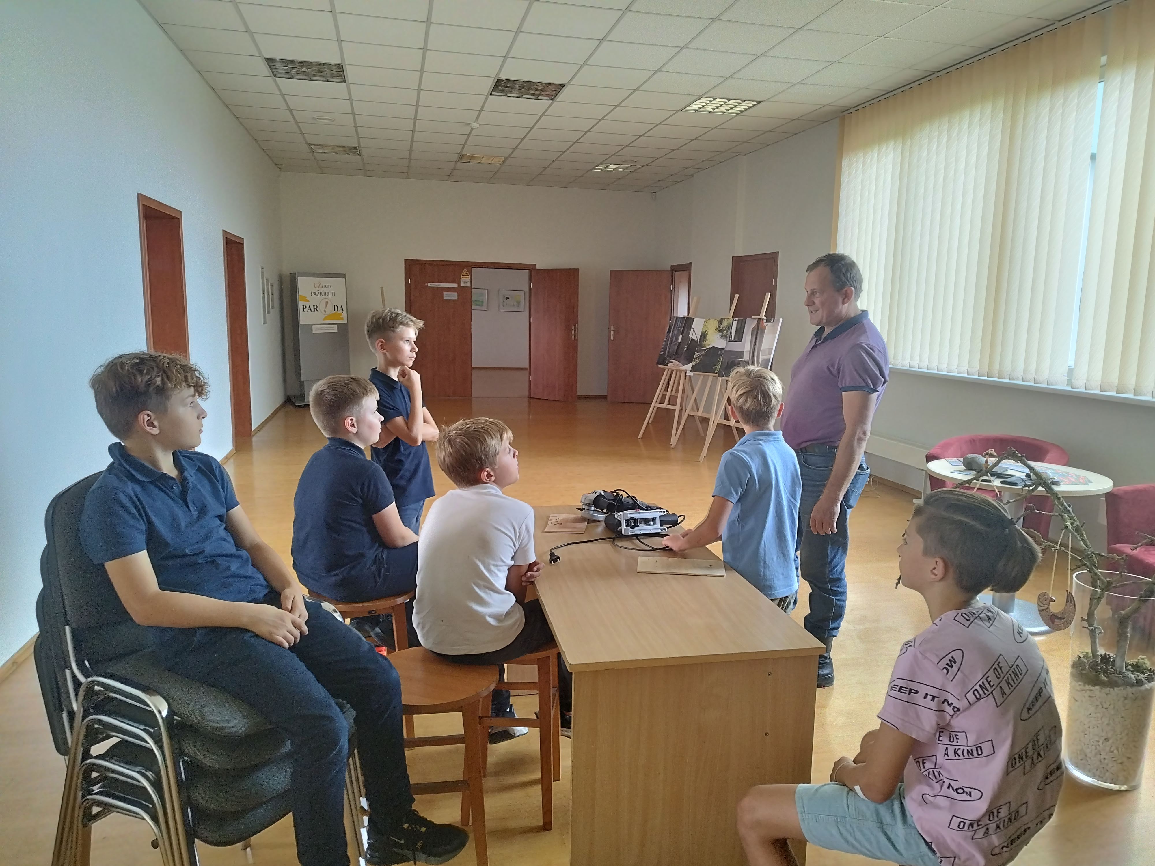 VDU dėstytojui Šarūnui Ašmantui vadovaujant, vaikai gilinosi į šiuolaikinės robotikos paslaptis.