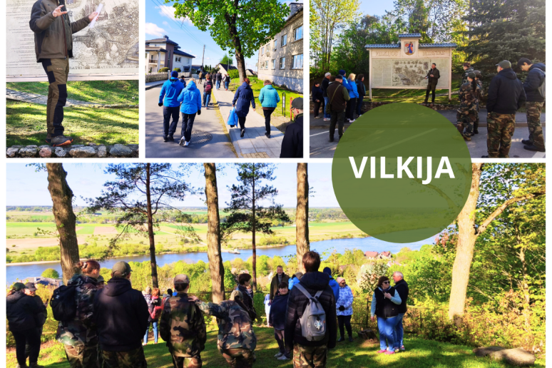 Balandžio 26 d. pažintinio žygio Vilkijoje dalyviai lankė istorinius objektus. Nuoširdžiai dėkojame visuomenės veikėjui Kęstučiui Markevičiui už išsamią ir įdomią ekskursiją, taip pat „Dono“ kavinei už po žygio surengtas vaišes ir gėrimus.