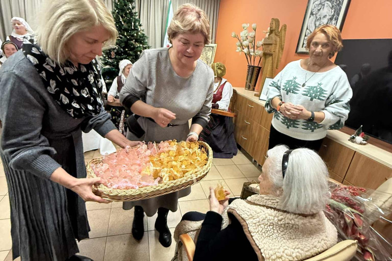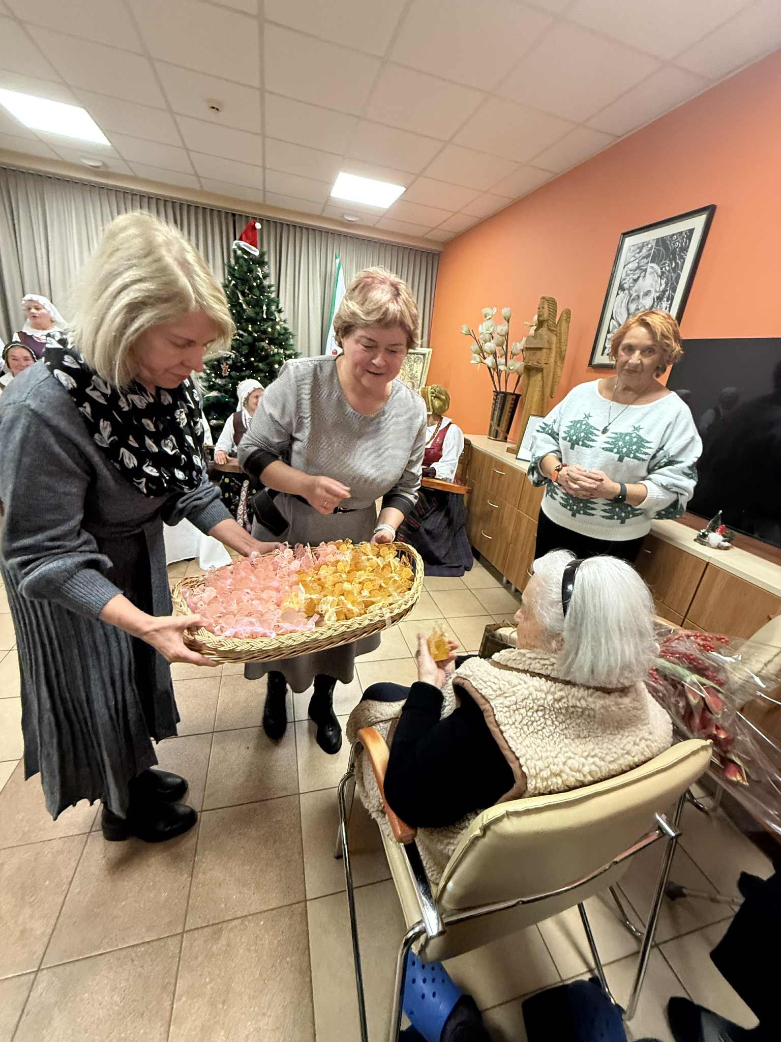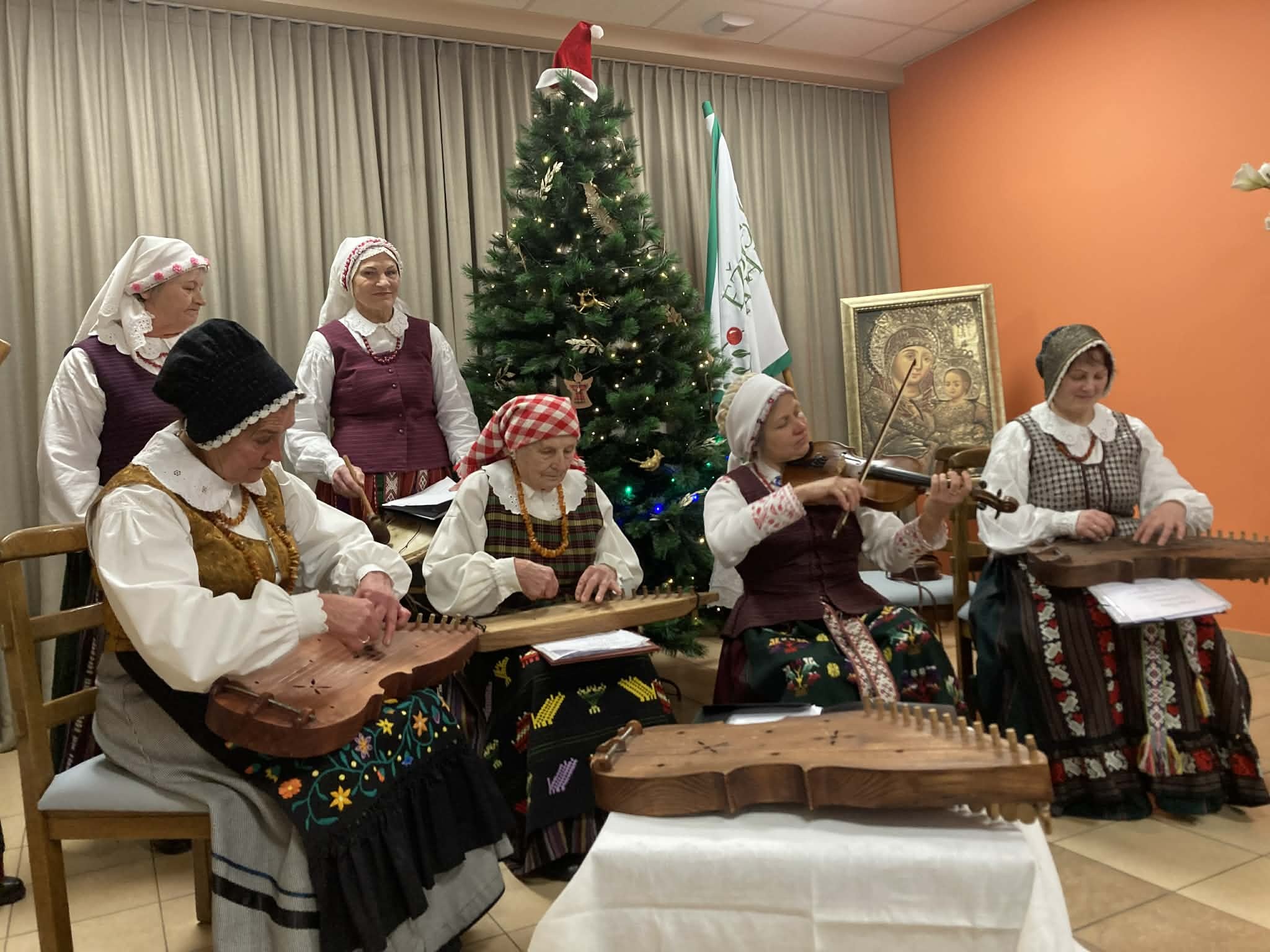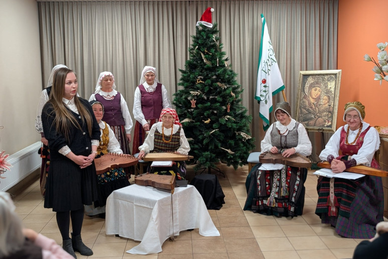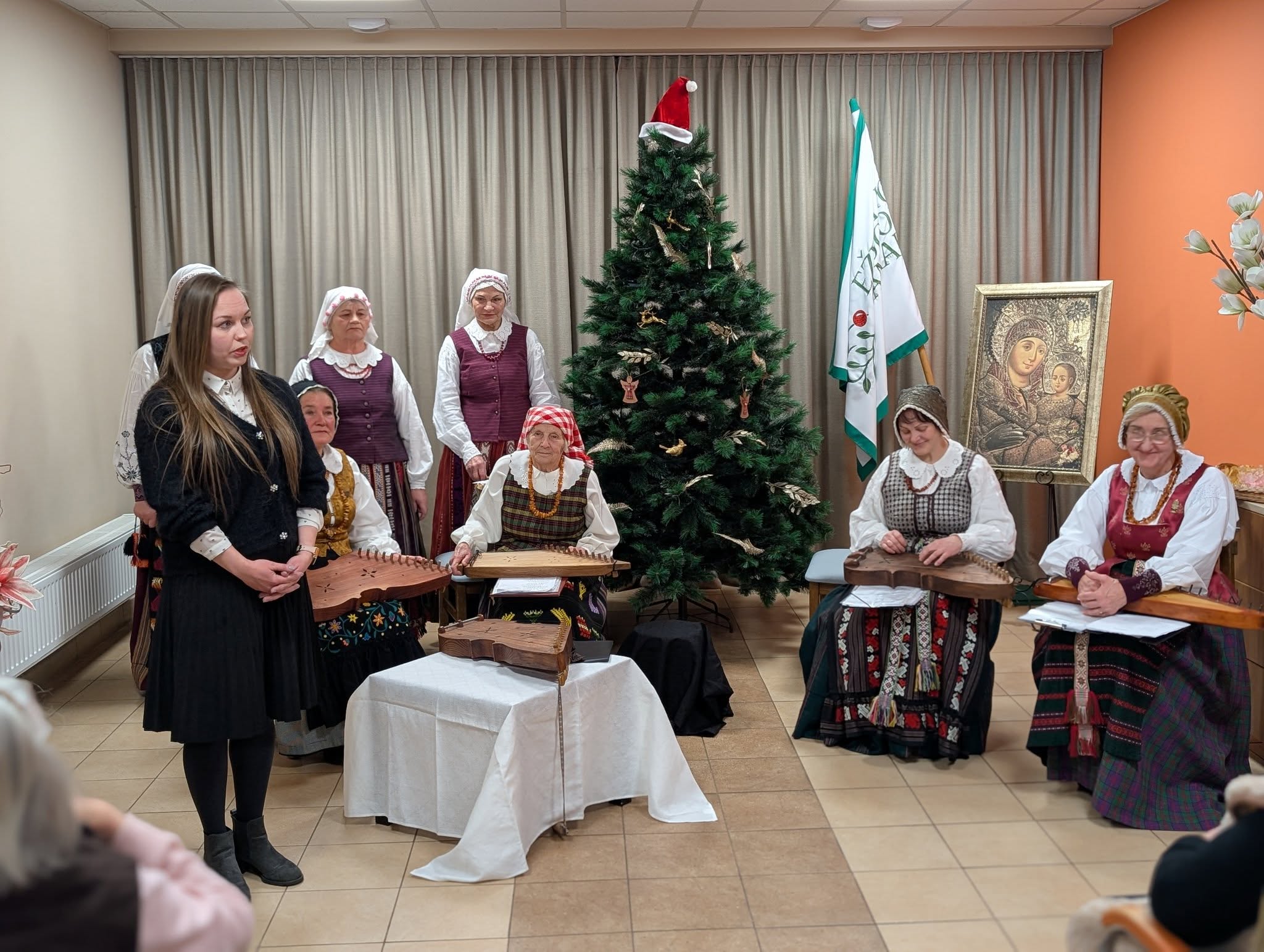 Advento laikotarpis primena mums laukimo, vilties ir artumo svarbą, todėl šio susitikimo metu netrūko nuoširdžių pokalbių, šypsenų ir šventinės nuotaikos. Bibliotekininkai, kaip ir kasmet, atvyko ne tuščiomis – atsivežė knygų, saldumynų, šiltų kojinių ir, svarbiausia, gyvo bendravimo džiaugsmą. Ypatingą nuotaiką sukūrė kartu atvykęs Ringaudų etnografinis folklorinis ansamblis „Ringauda“, vadovaujamas Liudos Liaudanskaitės. Ypatingą įspūdį paliko ansamblio narė, jau perkopusi 90 metų ir vis dar grojanti kanklėmis – jos pasirodymas sujaudino visus susirinkusiuosius ir tapo tikru įkvėpimo pavyzdžiu. Koncertas labai patiko slaugos namų gyventojams ir darbuotojams – salėje netrūko šypsenų, plojimų ir šiltų žvilgsnių. Po pasirodymo bibliotekininkai įteikė senoliams simbolinius angeliukus – gerumo, vilties ir šilumos ženklą. Ypatingą dėmesį susitikimo dalyviams parodė ir Ežerėlio slaugos namų direktorė Irena Tamulevičienė, kuri niekada nepalieka svečių be dėmesio – ji taip pat apdovanojo susitikimo dalyvius mielomis dovanėlėmis, padėkojo už šiltą bendrystę ir prasmingą laiką kartu.