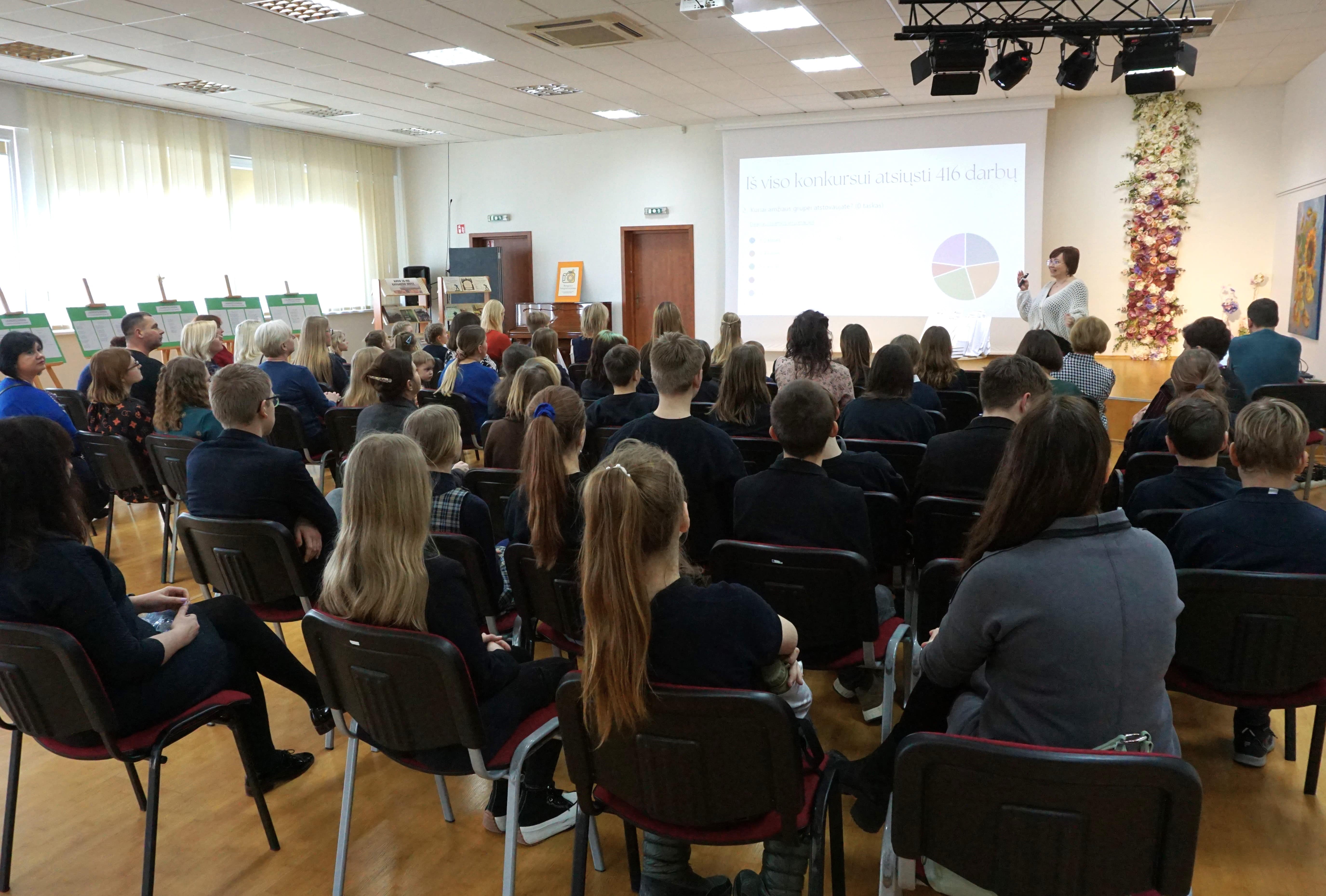 Vyr. bibliotekininkė Sandra Žydaitienė, dailyraščio konkurso „Myliu Lietuvą“ iniciatorė ir koordinatorė, pasidžiaugė: gausus konkurso dalyvių skaičius įrodo, jog tikrai mylime savo kalbą ir knygas. Šiemet į biblioteką suplūdo 416 darbų! Kadangi konkursas skirtas Martyno Vainilaičio devyniasdešimtosioms gimimo metinėms paminėti, dalyviams buvo parinkti 5 Martyno Vainilaičio eilėraščiai – po vieną kiekvienai amžiaus grupei.