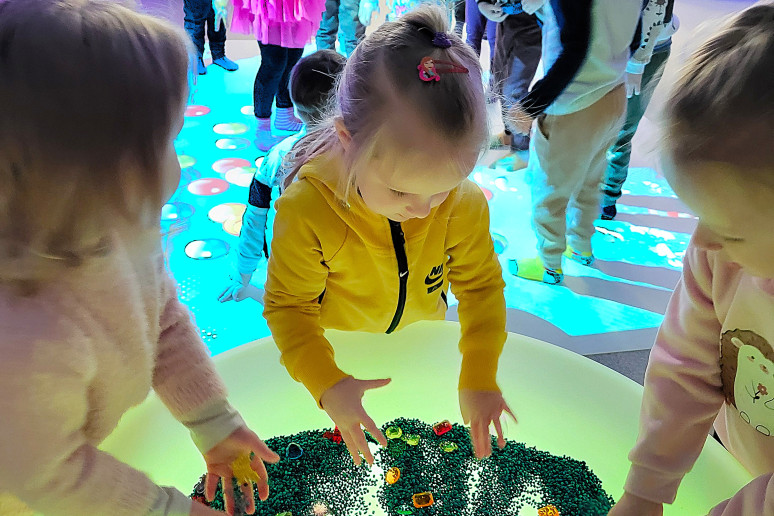 Vėliau atradome Sensorinio kambario magiją ir susipažinome su įrankiu „Musical Canvas“: kiekvienas prisilietimas prie ekrano atskleidė naujas spalvų kombinacijas, o kiekviena sukuriama melodija tapo nepakartojama emocijų simfonija. Vaikų rankų sukurtos linijos ir garsai susijungė į nuostabų meno paveikslą, kuriame išsiliejo jų svajonės, jausmai ir kūrybinė energija.