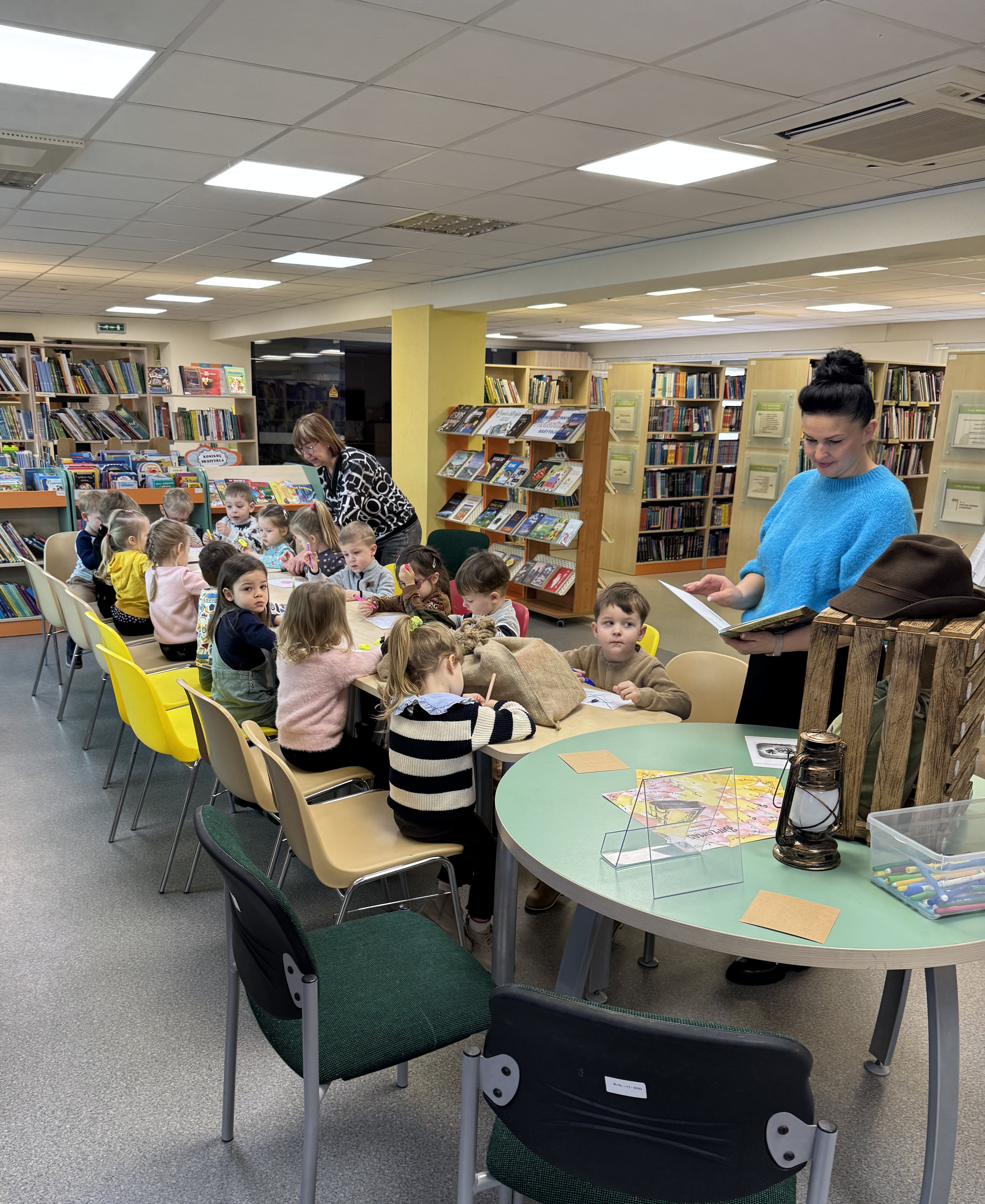 Bet tai buvo tik pradžia! Vaikai ieškojo paslėptų kortelių su lietuviškomis raidėmis. Radę jas, dėjo į maišą ir ruošėsi svarbiausiam žaidimo etapui. Pasidalijo į grupes: vieni dirbo drąsiais knygnešiais, kiti laukė slėptuvėje, o mokytojos tapo griežtomis sargybinėmis. Vos tik jos atsisukdavo, visi turėjo sustingti, kad nebūtų pastebėti! Įtampa, džiaugsmas, slaptas bendradarbiavimas – taip spauda sėkmingai keliavo iš rankų į rankas, kol pasiekė slėptuvę. Ši smagi veikla ne tik suteikė daug juoko, bet ir leido vaikams pajusti knygnešių drąsą, sumanumą, įvertinti lietuviškos spaudos misijos svarbą. Vaikai pažadėjo saugoti knygas ir jas skaityti. Įveikę iššūkius mažieji lankytojai pelnė po mažojo knygnešio diplomą.