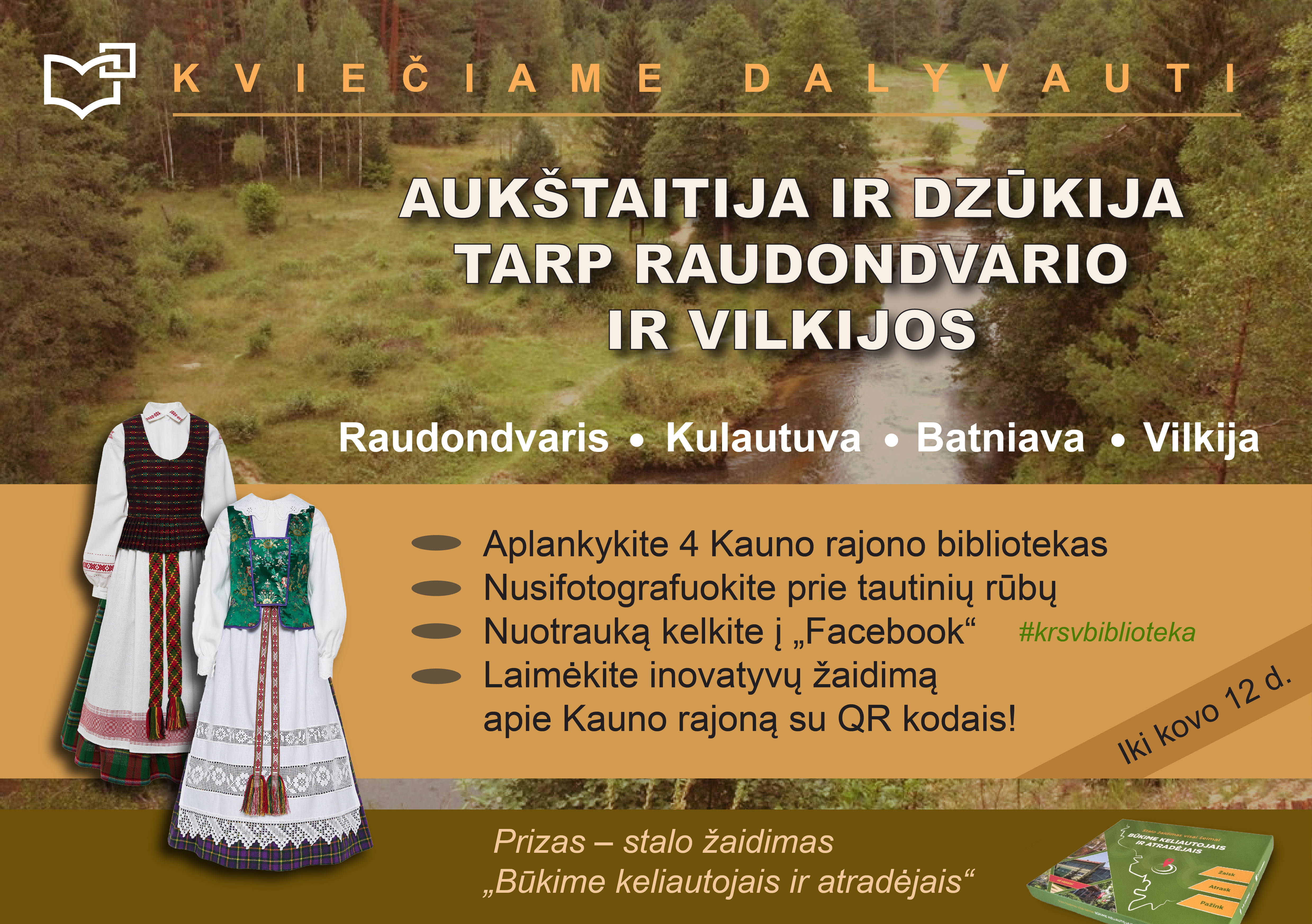 • Aplankykite 4 Kauno rajono bibliotekas, kuriose eksponuojami tautiniai dzūkų bei aukštaičių kostiumai, ir surinkite 4 Lietuvos vėliavos juosteles.