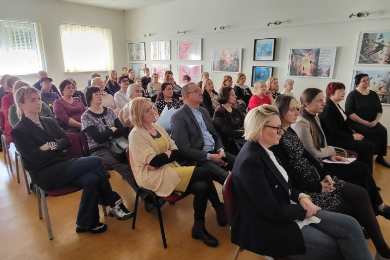 Susirinkusiesiems širdis suvirpino R. Malinauskaitės atliekamos tremtinių dainos. Biblioteka dėkoja abiem viešnioms už prasmingus pasakojimus ir dovanas: R. Pauliukaitienė padovanojo bibliotekai knygą „Kazimieras Pyplys-Mažytis. Lietuvos partizanų pasiuntinys į Vakarus“, o R. Malinauskaitė – „Didžiosios tremtys. Altajus ir Jakutija. 1941 m.“
