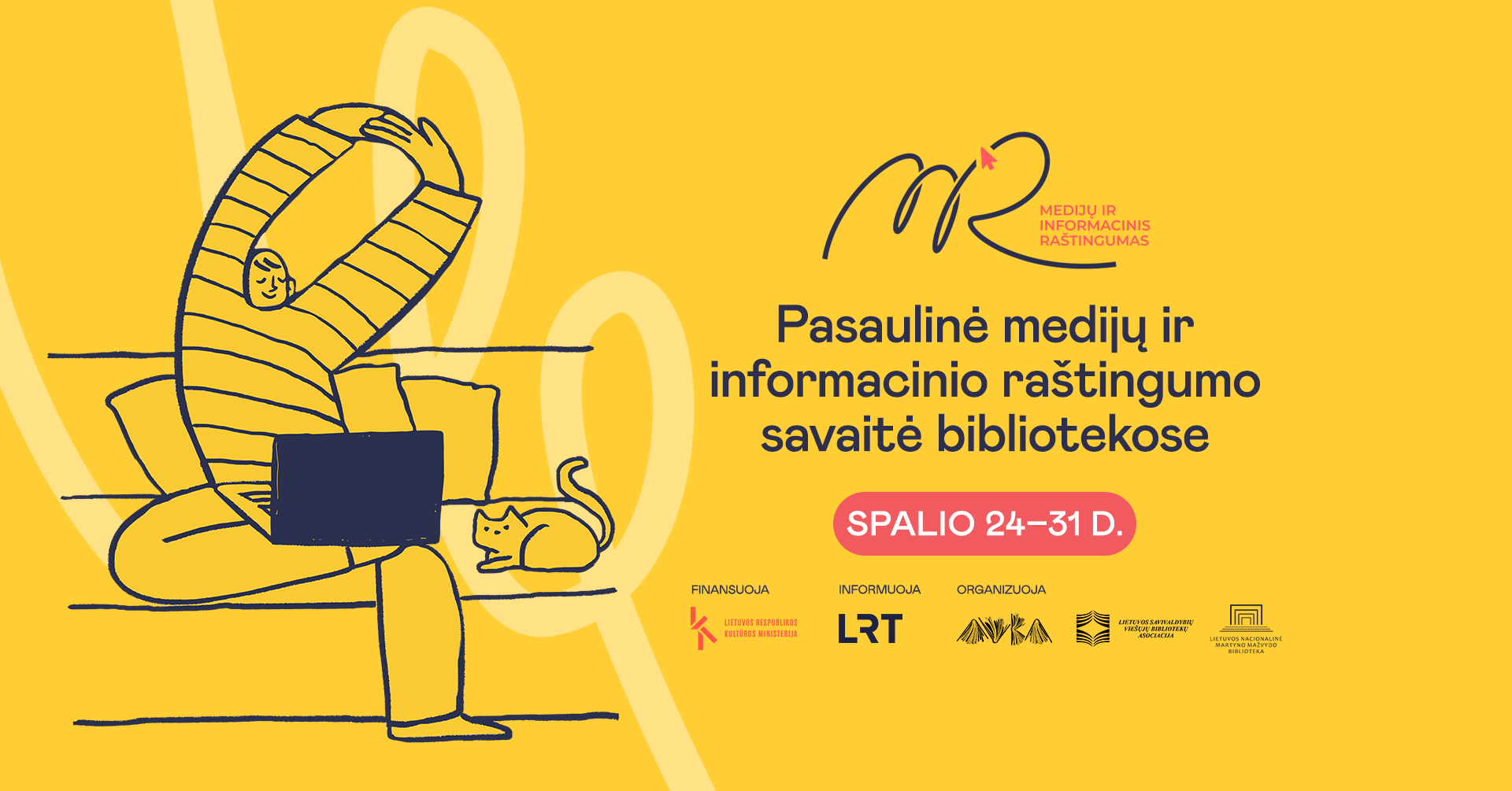 Paskutinė spalio savaitė visame pasaulyje žinoma kaip Medijų ir informacinio raštingumo savaitė (MIRKT), skirta skatinti kritinį mąstymą, atsakingą informacijos vartojimą bei aktyvų pilietiškumą. Lietuvoje šią savaitę jau trečią kartą organizuoja viešosios bibliotekos, kviesdamos visuomenę prisijungti prie įvairiausių renginių, skirtų kiekvienam. Nuo spalio 24 iki 31 dienos kviečiame į paskaitas, diskusijas, orientavimosi žygį, protmūšius, žaidimus, virtualų pabėgimo kambarį ir konkursus, padedančius gilinti medijų ir informacinio raštingumo įgūdžius. Medijų ir informacinio raštingumo šūkis „Žinanti, laiminga ir sumani visuomenė“ kviečia visus būti aktyviais šios iniciatyvos dalyviais.